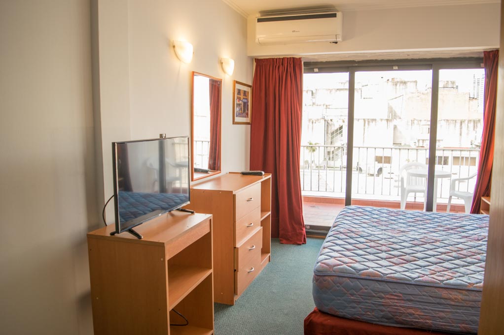 Departamento amoblado de un ambiente (studio) ubicado a 1 minuto caminando de la parada de autobús y a 5 minutos caminando de la Estación de Metro Uruguay.El departamento tiene 1 baño y balcón. La habitación 1 tiene cama matrimonial, cama individual, cómoda, 2 mesas de noche y televisor; El lugar mide 30m² + 7m² de terraza aproximadamente. Los gastos de servicios de gastos comunes, agua caliente, agua fría, electricidad, internet, TV cable y calefacción se pagan por adelantado junto a la renta mensual, con un límite de consumo de $ 3USD. Se debe pagar garantía (depósito) la que será devuelta al finalizar el período de arriendo. Cerca del alojamiento se encuentra el Congreso de la Nación Argentina, junto a la Plaza del Congreso, que cuenta con múltiples espacios verdes para pasear y conocer la historia del país. Esta zona es muy transitada y posee fácil acceso a medios de transporte público. Se pueden encontrar varios restaurantes, cines, bancos, bares y comercios.