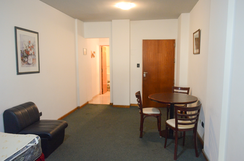 Departamento amoblado de 1 habitación ubicado a 5 minutos caminando de la parada de autobús y a 5 minutos caminando de la Estación de Metro Uruguay.El departamento tiene living, comedor, cocina (cerrada) y 1 baño. La habitación 1 tiene cama matrimonial, cama individual, cama nido, clóset, cómoda, mesa de noche, sofá, televisor y baño en suite; El lugar mide 32m² aproximadamente. Los gastos de servicios de gastos comunes, agua caliente, agua fría, electricidad, internet, TV cable y calefacción se pagan por adelantado junto a la renta mensual, con un límite de consumo de $ 3USD. Se debe pagar garantía (depósito) la que será devuelta al finalizar el período de arriendo. Cerca del alojamiento se encuentra el Obelisco, uno de los íconos de Buenos Aires. Esta zona está cerca de la Avenida 9 de Julio, considerada la más ancha del mundo. En la Avenida Corrientes se encuentra la zona con mayor concentración de teatros de la ciudad, por lo que es muy transitada y cuenta con una gran variedad de restaurantes, cafés, bares, comercios de regalos y recuerdos, además de una activa vida nocturna. Tiene buen acceso a distintos medios de transporte público.