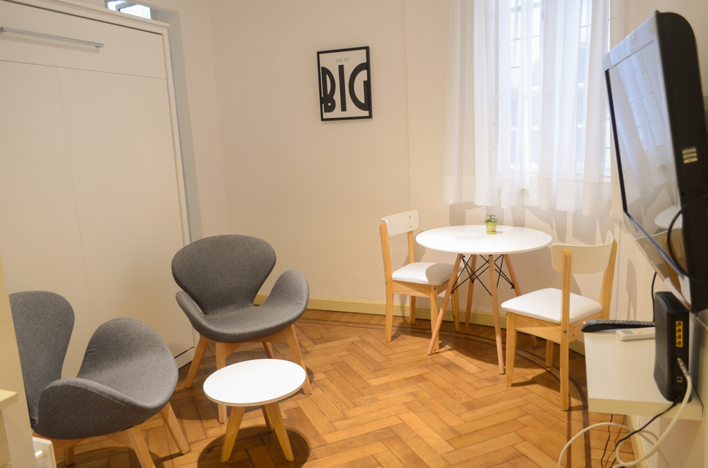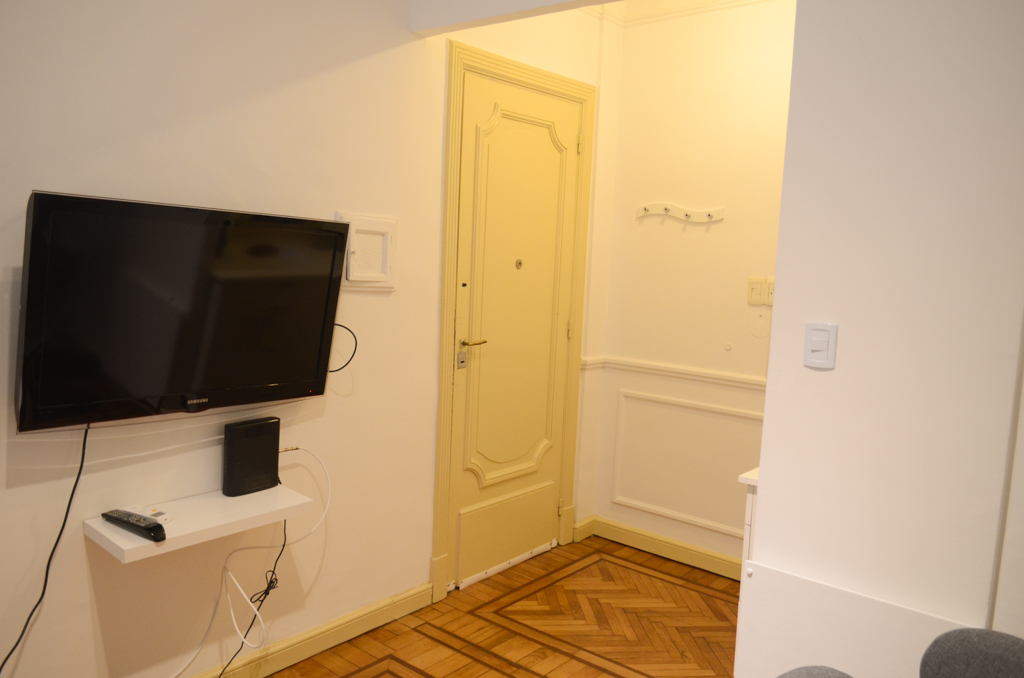 Departamento amoblado de un ambiente (studio) ubicado a 3 minutos caminando de la parada de autobús y a 3 minutos caminando de la Estación de Metro San Martín.El departamento tiene cocina (cerrada) y 1 baño. La habitación 1 tiene cama matrimonial, armario, mesa de noche, televisor y escritorio; El lugar mide 18m² aproximadamente. Se debe considerar el pago de gastos de servicios de expensas, electricidad, internet e impuesto que suman $ 4USD aproximadamente. El alojamiento tiene lavandería compartida (lavado o secado). Se debe pagar garantía (depósito) la que será devuelta al finalizar el período de arriendo; además, se debe pagar $ 0USD al momento de devolver el alojamiento para realizar la limpieza del lugar. Cerca del alojamiento se encuentra la Plaza San Martín, una de las plazas más antiguas de la ciudad, donde se pueden realizar actividades al aire libre y contemplar diversos monumentos y esculturas. Esta zona residencial es muy transitada, ya que está rodeada por dos de las avenidas más populares de Buenos Aires: la Avenida del Libertador y la Avenida 9 de Julio. Este sector cuenta con una gran conectividad a distintos medios de transporte público.
