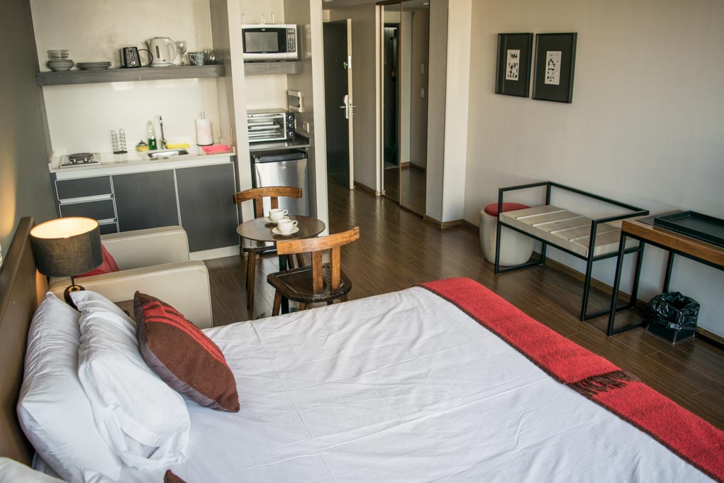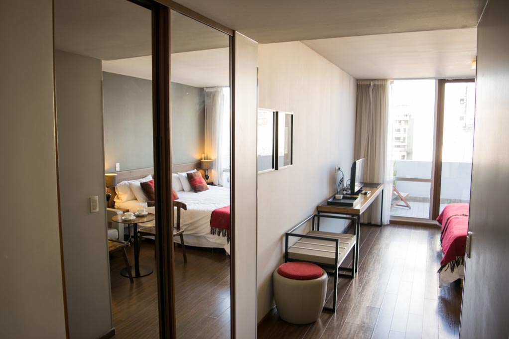 Departamento amoblado de un ambiente (studio) ubicado a 1 minuto caminando de la parada de autobús y a 4 minutos caminando de la Estación de Metro Plaza Italia.El departamento tiene comedor, cocina (kitchinette), 1 baño y balcón. La habitación 1 tiene cama matrimonial, clóset, 2 mesas de noche, sofá, televisor, escritorio, 2 sillas y baño en suite; El lugar mide 30m² + 1m² de terraza aproximadamente. Los gastos de servicios de gastos comunes, agua caliente, agua fría, electricidad, gas, internet, TV cable y calefacción se pagan por adelantado junto a la renta mensual, con un límite de consumo de $ 170USD. El alojamiento tiene lavandería compartida cuyo valor es $ 1USD aproximadamente por carga de ropa (lavado o secado). Se debe pagar garantía (depósito) la que será devuelta al finalizar el período de arriendo; además, se debe pagar $ 30USD al momento de devolver el alojamiento para realizar la limpieza del lugar. Cerca del alojamiento se encuentra el complejo de eventos La Rural y el Jardín Botánico de la ciudad, además de diversos parques para practicar deportes y disfrutar de una caminata al aire libre. Al ubicarse en el corazón de Palermo, esta zona se caracteriza por tener una gran variedad de comercios, supermercados, bancos junto a bares y restaurantes para degustar de la gastronomía local. Además, cuenta con diversos medios de transporte público a distintas zonas de la ciudad.