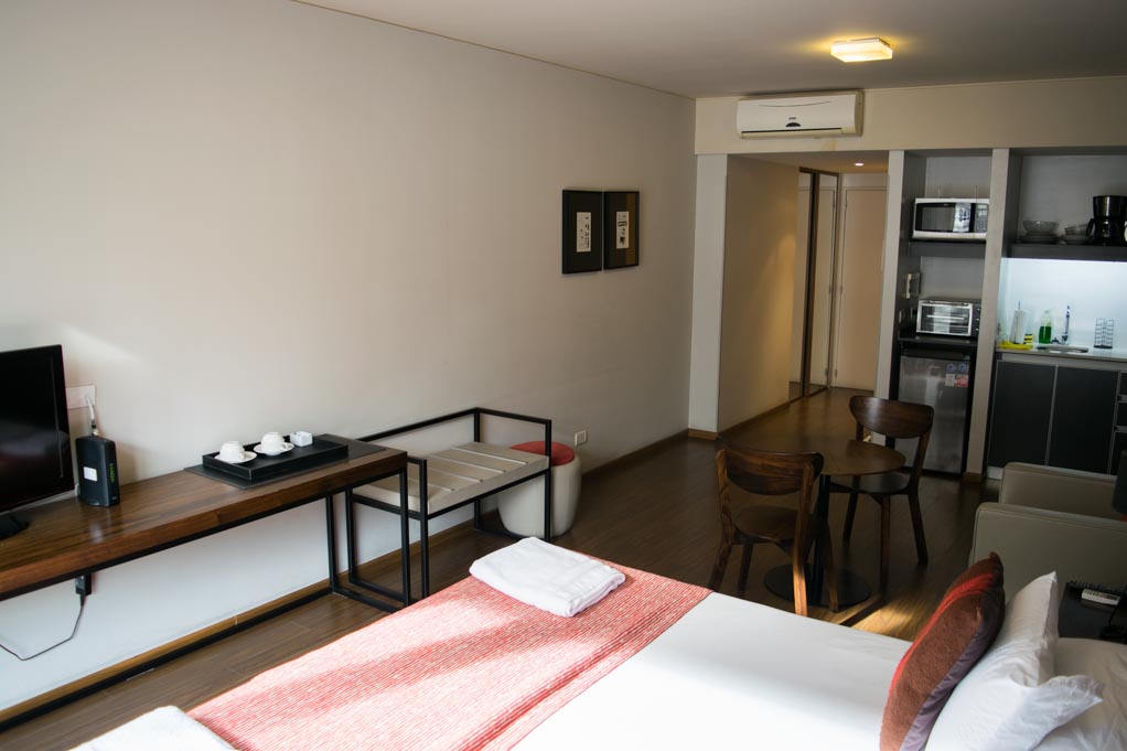 Departamento amoblado de un ambiente (studio) ubicado a 1 minuto caminando de la parada de autobús y a 4 minutos caminando de la Estación de Metro Plaza Italia.El departamento tiene comedor, cocina (kitchinette), 1 baño y balcón. La habitación 1 tiene cama matrimonial, clóset, 2 mesas de noche, sofá, televisor, escritorio, 2 sillas y baño en suite; El lugar mide 30m² + 1m² de terraza aproximadamente. Los gastos de servicios de gastos comunes, agua caliente, agua fría, electricidad, gas, internet, TV cable y calefacción se pagan por adelantado junto a la renta mensual, con un límite de consumo de $ 170USD. El alojamiento tiene lavandería compartida cuyo valor es $ 1USD aproximadamente por carga de ropa (lavado o secado). Se debe pagar garantía (depósito) la que será devuelta al finalizar el período de arriendo; además, se debe pagar $ 30USD al momento de devolver el alojamiento para realizar la limpieza del lugar. Cerca del alojamiento se encuentra el complejo de eventos La Rural y el Jardín Botánico de la ciudad, además de diversos parques para practicar deportes y disfrutar de una caminata al aire libre. Al ubicarse en el corazón de Palermo, esta zona se caracteriza por tener una gran variedad de comercios, supermercados, bancos junto a bares y restaurantes para degustar de la gastronomía local. Además, cuenta con diversos medios de transporte público a distintas zonas de la ciudad.