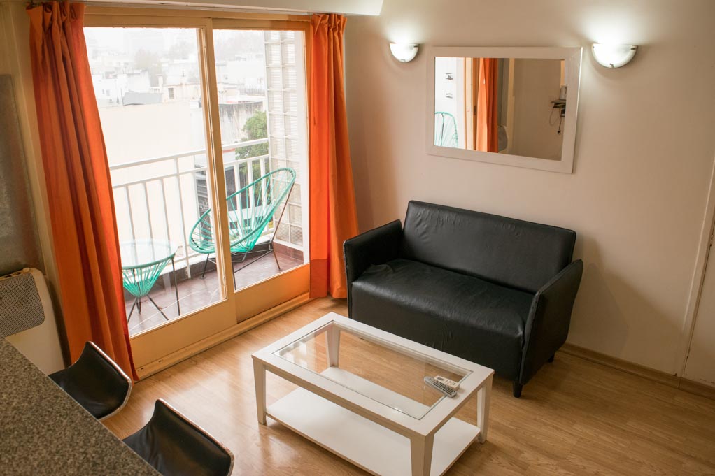 Departamento amoblado de un ambiente (studio) ubicado a 2 minutos caminando de la parada de autobús y a 15 minutos caminando de la Estación de Metro Plaza Italia.El departamento tiene living, cocina (abierta), 1 baño y balcón. La habitación 1 tiene cama matrimonial, armario y televisor; El lugar mide 32m² + 2m² de terraza aproximadamente. Los gastos de servicios de gastos comunes, agua caliente, agua fría, internet, TV cable y calefacción se pagan por adelantado junto a la renta mensual, con un límite de consumo de $ 158USD. Además, se debe considerar el pago de gastos de servicios de electricidad y gas que suman $ 46USD aproximadamente. Se debe pagar garantía (depósito) la que será devuelta al finalizar el período de arriendo; además, se debe pagar $ 30USD al momento de devolver el alojamiento para realizar la limpieza del lugar. Cerca del alojamiento se encuentra el complejo de eventos La Rural y el Jardín Botánico de la ciudad, además de diversos parques para practicar deportes y disfrutar de una caminata al aire libre. También se puede apreciar el Centro Cultural Islámico Rey Fahd. Esta zona, ubicada en el corazón de Palermo, cuenta con una gran variedad de comercios, supermercados, bancos, bares y restaurantes para degustar de la gastronomía local. Tiene fácil y cómodo acceso al transporte público.