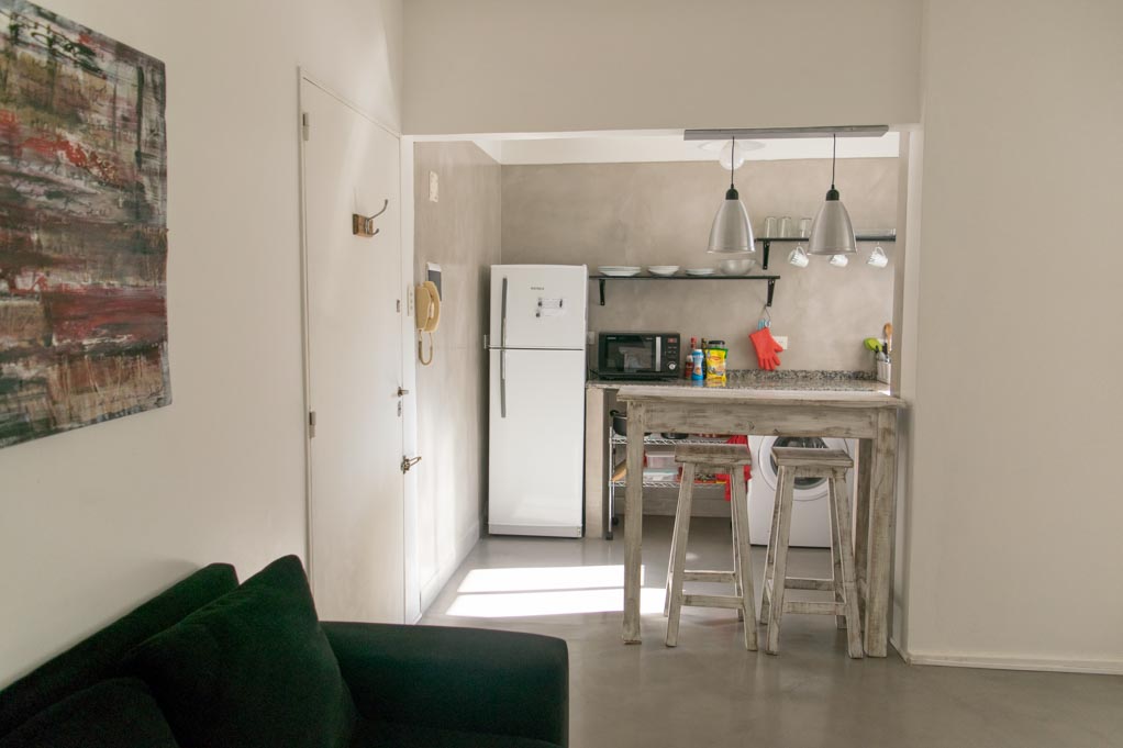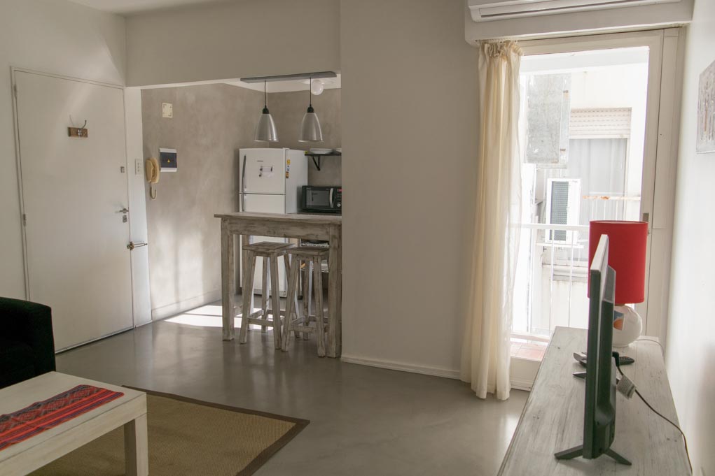 Departamento amoblado de 1 habitación ubicado a 1 minuto caminando de la parada de autobús y a 10 minutos caminando de la Estación de Metro Palermo.El departamento tiene living, comedor, cocina (abierta), 1 baño y balcón. La habitación 1 tiene cama matrimonial, armario, 2 mesas de noche y sofá; El lugar mide 35m² + 1m² de terraza aproximadamente. Los gastos de servicios de gastos comunes, agua caliente, agua fría, electricidad, gas e internet se pagan por adelantado junto a la renta mensual, con un límite de consumo de $ 140USD. Se debe pagar garantía (depósito) la que será devuelta al finalizar el período de arriendo. Cerca del alojamiento se encuentra una serie de comercios, bancos y supermercados en la avenida Santa Fe. En esta zona se ubica el centro comercial Distrito Arcos, ideal para disfrutar de un día de compras; a pocos pasos hay distintos parques donde es posible practicar deportes o disfrutar de actividades al aire libre. Además, la estación de metro Palermo se comunica con el Tren San Martín que da fácil acceso a otros lugares de la ciudad.