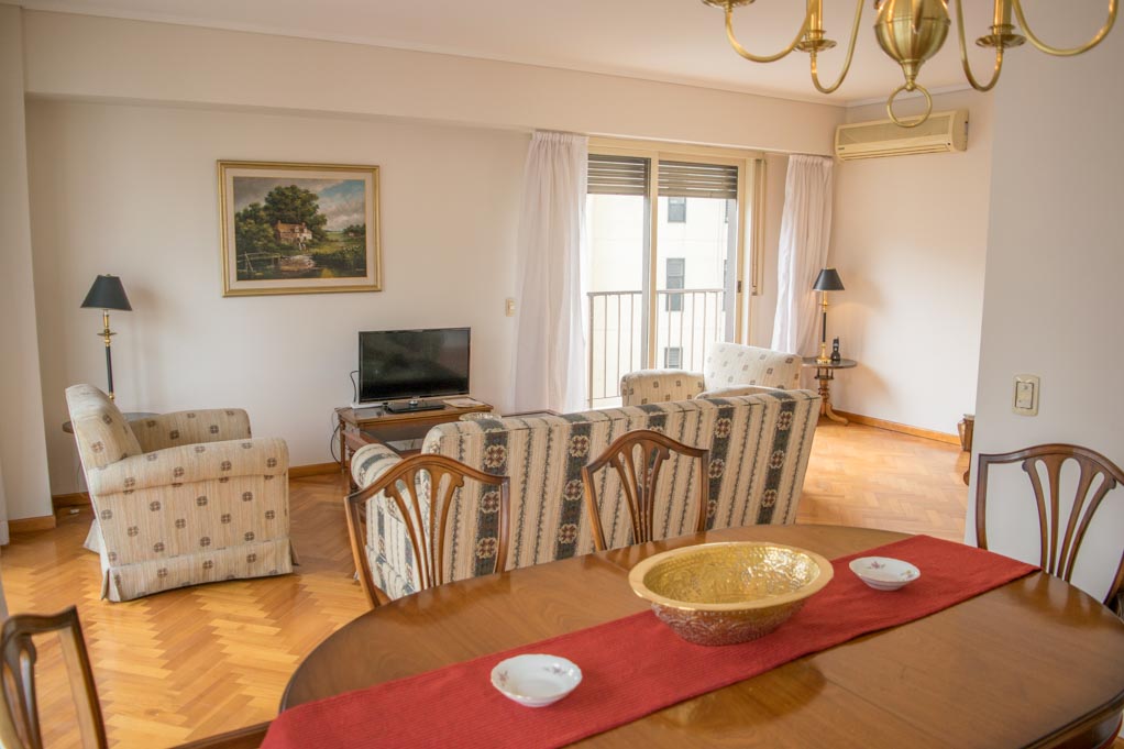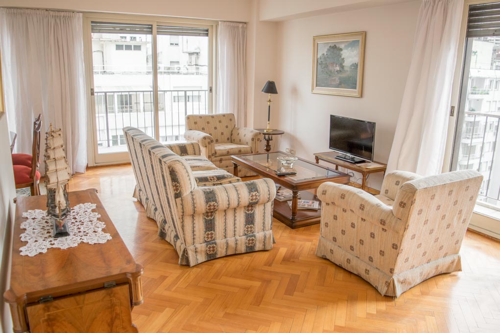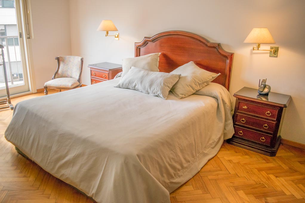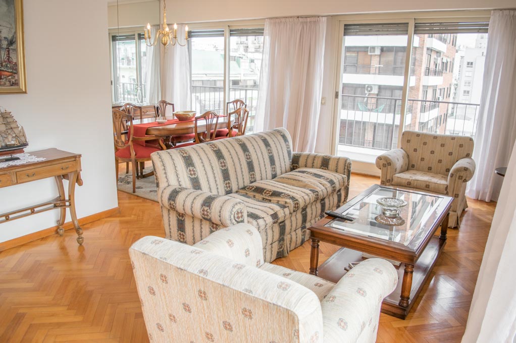 Departamento amoblado de 3 habitaciones ubicado a 1 minuto caminando de la parada de autobús y a 14 minutos caminando de la Estación de Metro Bulnes.El departamento tiene living, comedor, cocina (cerrada), 3 baños, balcón y sala de estudio. La habitación 1 tiene cama matrimonial, armario, cómoda, 2 mesas de noche, sofá y baño en suite; La habitación 2 tiene cama individual, armario, mesa de noche y baño en suite; La habitación 3 tiene cama individual, armario y baño en suite; El lugar mide 140m² + 10m² de terraza aproximadamente. Se debe considerar el pago de gastos de servicios de gastos comunes, agua caliente, agua fría, electricidad, gas, internet, TV cable y teléfono que suman $ 640USD aproximadamente. Se debe pagar garantía (depósito) la que será devuelta al finalizar el período de arriendo.