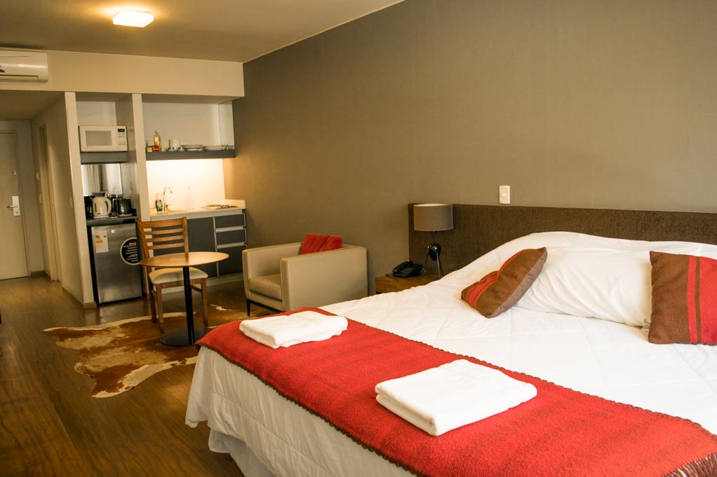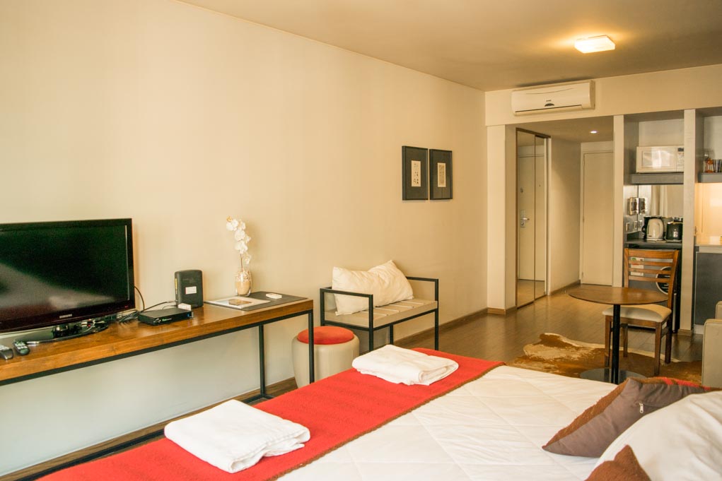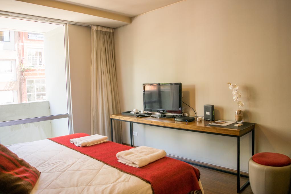 Departamento amoblado de un ambiente (studio) ubicado a 1 minuto caminando de la parada de autobús y a 4 minutos caminando de la Estación de Metro Plaza Italia.El departamento tiene living, comedor, cocina (kitchinette), 1 baño y balcón. La habitación 1 tiene cama matrimonial, clóset, 2 mesas de noche, sofá, televisor y 2 sillas; El lugar mide 30m² + 1m² de terraza aproximadamente. Los gastos de servicios de gastos comunes, agua caliente, agua fría, electricidad, internet, TV cable y calefacción se pagan por adelantado junto a la renta mensual, con un límite de consumo de $ 170USD. El alojamiento tiene lavandería compartida cuyo valor es $ 1USD aproximadamente por carga de ropa (lavado o secado). Se debe pagar garantía (depósito) la que será devuelta al finalizar el período de arriendo; además, se debe pagar $ 30USD al momento de devolver el alojamiento para realizar la limpieza del lugar. Cerca del alojamiento se encuentra el complejo de eventos La Rural y el Jardín Botánico de la ciudad, además de diversos parques para practicar deportes y disfrutar de una caminata al aire libre. También se puede apreciar el Centro Cultural Islámico Rey Fahd. Esta zona, ubicada en el corazón de Palermo, cuenta con una gran variedad de comercios, supermercados, bancos, bares y restaurantes para degustar de la gastronomía local. Tiene fácil y cómodo acceso al transporte público.