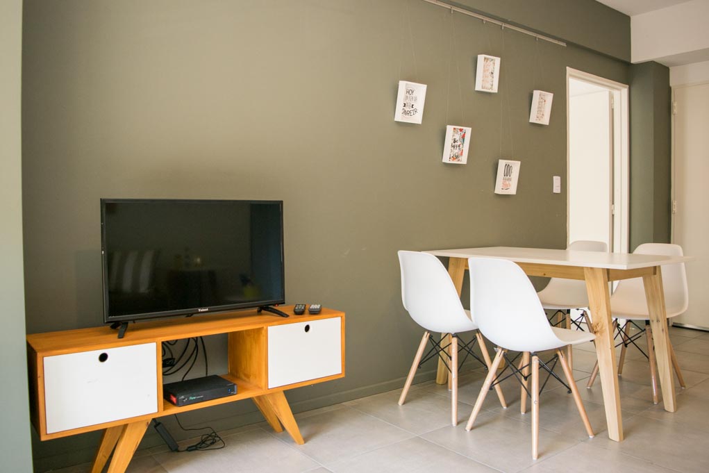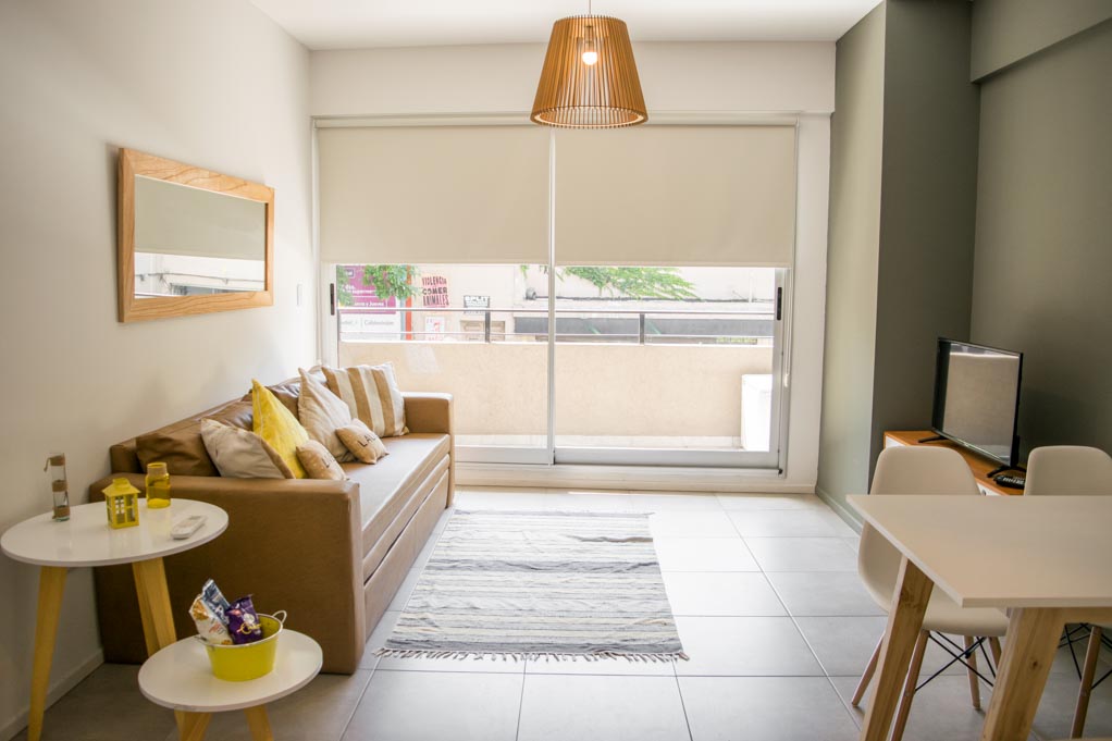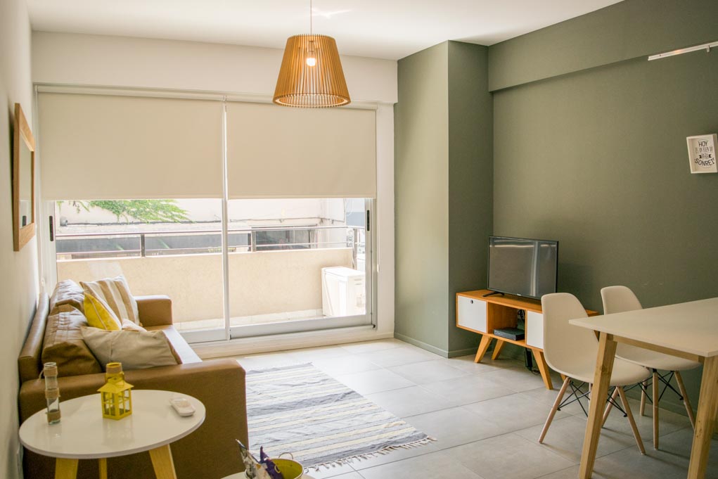 Departamento amoblado de 1 habitación ubicado a 1 minuto caminando de la parada de autobús y a 26 minutos caminando de la Estación de Metro Malabia - O. Pugliese.El departamento tiene living, comedor, cocina (cerrada), 1 baño, 1 ½ baño, balcón y patio. La habitación 1 tiene cama matrimonial, armario, cómoda, 2 mesas de noche y baño en suite; El lugar mide 50m² + 20m² de terraza aproximadamente. Los gastos de servicios de gastos comunes, agua caliente, agua fría, electricidad, gas, internet, TV cable, limpieza quincenal y calefacción se pagan por adelantado junto a la renta mensual, con un límite de consumo de $ 215USD. Se debe pagar garantía (depósito) la que será devuelta al finalizar el período de arriendo; además, se debe pagar $ 16USD al momento de devolver el alojamiento para realizar la limpieza del lugar.