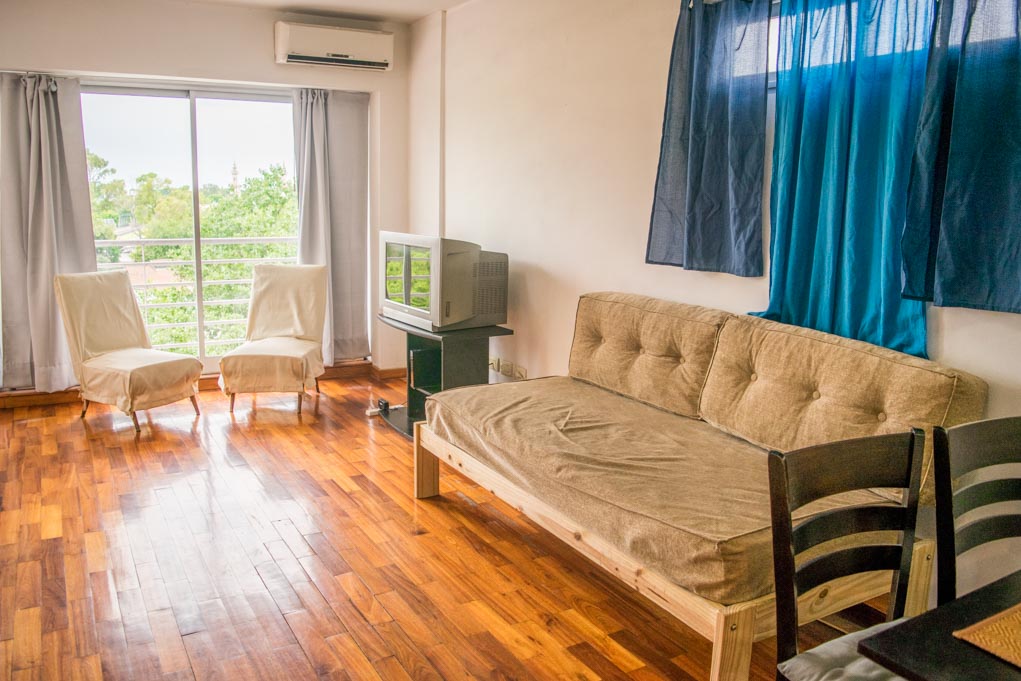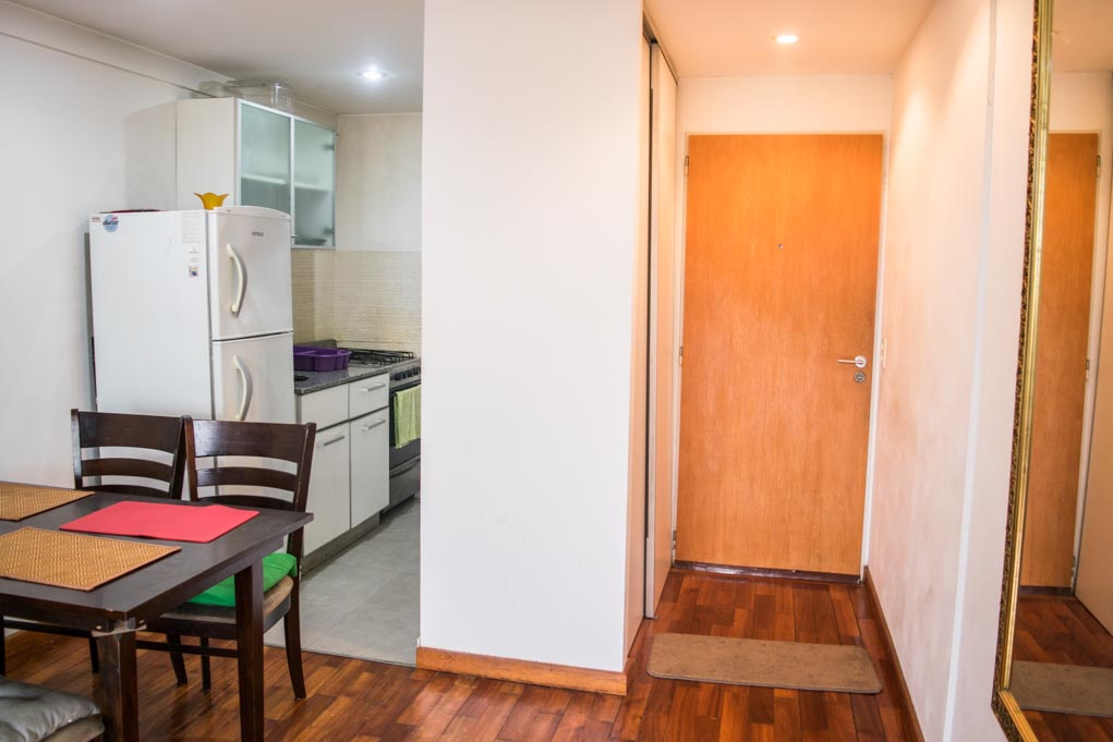 Departamento amoblado de un ambiente (studio) ubicado a 1 minuto caminando de la parada de autobús y a 5 minutos caminando de la Estación de Metro Ministro Carranza.El departamento tiene living, comedor, cocina (abierta), 1 baño y balcón. La habitación 1 tiene cama matrimonial, armario, 2 mesas de noche y televisor; El lugar mide 36m² + 6m² de terraza aproximadamente. Los gastos de servicios de gastos comunes, agua caliente, agua fría, internet, TV cable y calefacción se pagan por adelantado junto a la renta mensual, con un límite de consumo de $ 4USD. Además, se debe considerar el pago de gastos de servicios de electricidad y gas que suman $ 1USD aproximadamente. Se debe pagar garantía (depósito) la que será devuelta al finalizar el período de arriendo. Cerca del alojamiento se encuentra la zona conocida como Las Cañitas, caracterizada por su gran variedad de bares y restaurantes, donde se puede degustar de diversos estilos de platos y tragos. La zona tiene fácil acceso a distintos parques donde es posible practicar deportes o disfrutar de actividades al aire libre. También se puede visitar el Hipódromo, el Club de Polo y el Campo de Golf. Además, en la avenida principal, hay una gran variedad de comercios, bancos y supermercados, junto a distintos medios de transporte público.