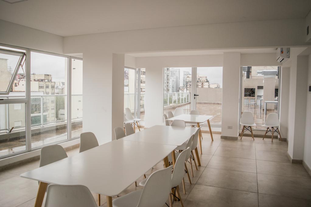 Departamento amoblado de 1 habitación ubicado a 1 minuto caminando de la parada de autobús y a 9 minutos caminando de la Estación de Metro Medrano.El departamento tiene living, comedor, cocina (abierta), 1 baño, balcón y 1 estacionamiento (opcional por un valor de $ 80USD adicional). La habitación 1 tiene cama matrimonial, walk-in clóset y 2 mesas de noche; El lugar mide 55m² + 5m² de terraza aproximadamente. Los gastos de servicios de gastos comunes, agua caliente, agua fría, electricidad, internet y TV cable se pagan por adelantado junto a la renta mensual, con un límite de consumo de $ 185USD. Además, se debe considerar el pago de gastos de servicios de calefacción que suman $ 0USD aproximadamente. El alojamiento tiene lavandería compartida cuyo valor es $ 1USD aproximadamente por carga de ropa (lavado o secado). Se debe pagar garantía (depósito) la que será devuelta al finalizar el período de arriendo.