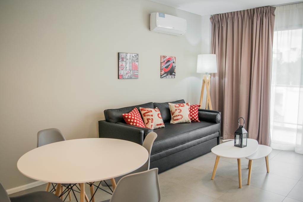 Departamento amoblado de 1 habitación ubicado a 1 minuto caminando de la parada de autobús y a 8 minutos caminando de la Estación de Metro Medrano.El departamento tiene living, comedor, cocina (abierta), 1 baño, balcón y 1 estacionamiento (opcional por un valor de $ 75USD adicional). La habitación 1 tiene cama matrimonial, clóset y 2 mesas de noche; El lugar mide 55m² + 5m² de terraza aproximadamente. Los gastos de servicios de gastos comunes, agua caliente, agua fría, electricidad, gas, internet, TV cable y calefacción se pagan por adelantado junto a la renta mensual, con un límite de consumo de $ 185USD. El alojamiento tiene lavandería compartida cuyo valor es $ 1USD aproximadamente por carga de ropa (lavado o secado). Se debe pagar garantía (depósito) la que será devuelta al finalizar el período de arriendo.