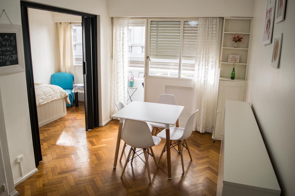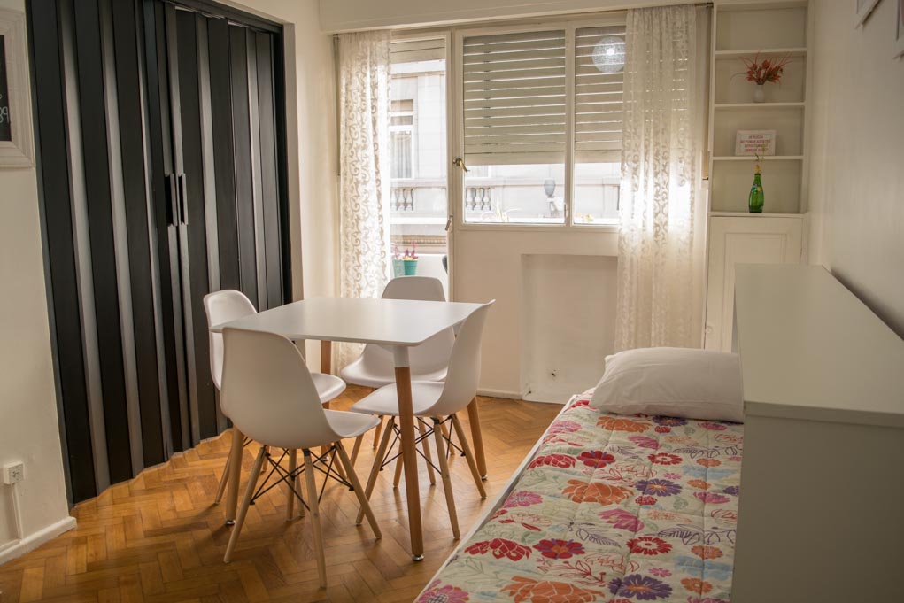 Departamento amoblado de 1 habitación ubicado a 1 minuto caminando de la parada de autobús y a 15 minutos caminando de la Estación de Metro Las Heras.El departamento tiene comedor, cocina (kitchinette), 1 baño y balcón. La habitación 1 tiene cama matrimonial, armario, sofá, televisor y baño en suite; El lugar mide 40m² + 2m² de terraza aproximadamente. Los gastos de servicios de gastos comunes, agua caliente, agua fría, electricidad, gas, internet, TV cable y calefacción se pagan por adelantado junto a la renta mensual, con un límite de consumo de $ 6USD. Se debe pagar garantía (depósito) la que será devuelta al finalizar el período de arriendo; además, se debe pagar $ 0USD al momento de devolver el alojamiento para realizar la limpieza del lugar. Cerca del alojamiento se encuentra la Facultad de Derecho de la Universidad de Buenos Aires, la Plaza de las Naciones Unidas, donde se puede apreciar la Floralis Genérica, obra de arte de Eduardo Catalano, Plaza Francia, conocida por tener numerosas atracciones, como puestos de artesanos, bares y sitios de diseño, además del Centro Cultural Recoleta, el Cementerio de la Recoleta, el Museo de Prohibido No Tocar. Allí también se encuentran el Palace de Grace y el Museo de Bellas Artes.