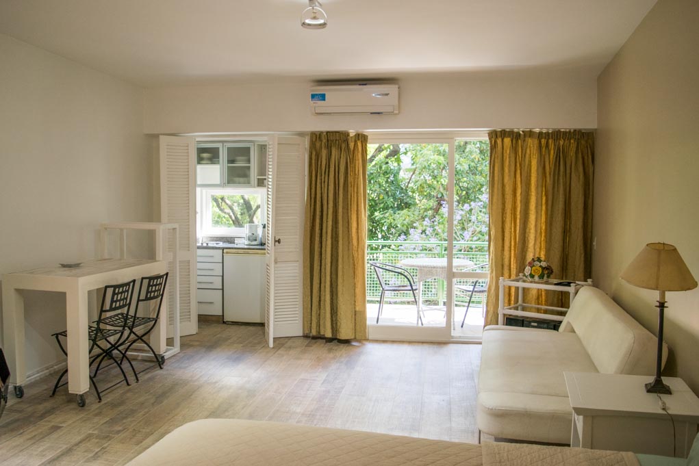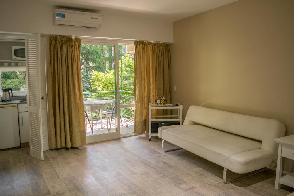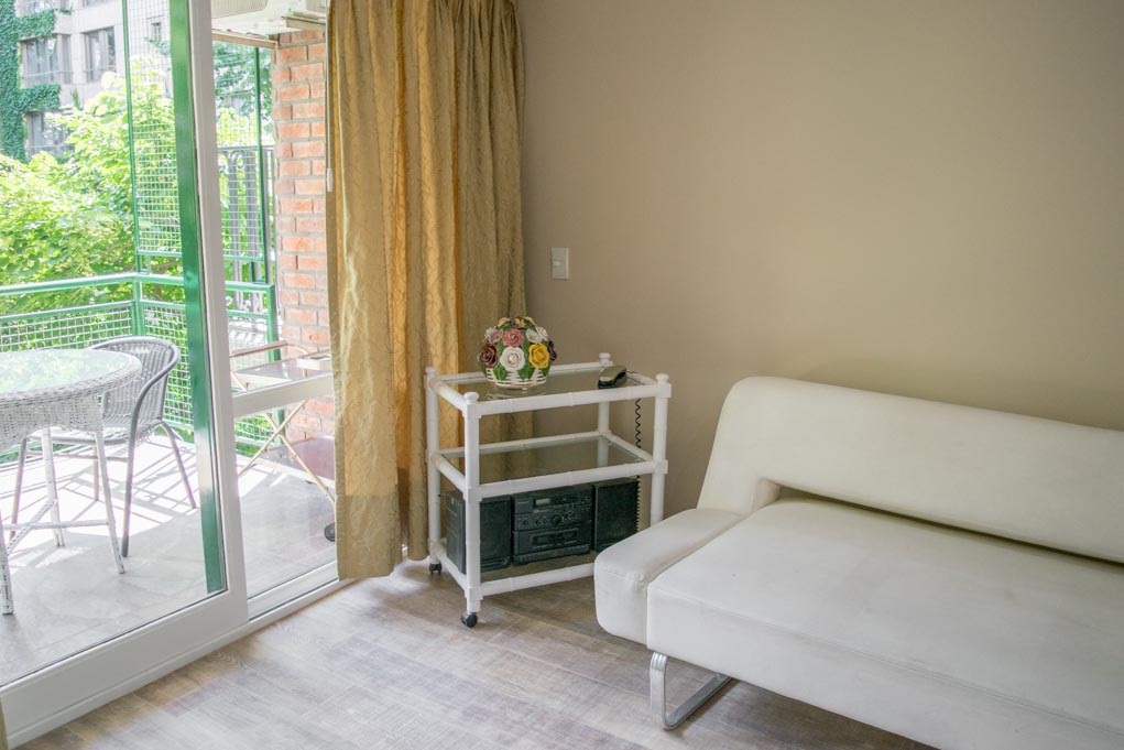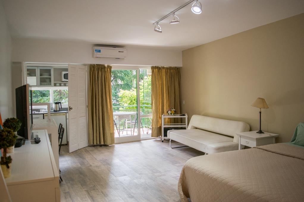 Departamento amoblado de un ambiente (studio) ubicado a 1 minuto caminando de la parada de autobús y a 16 minutos caminando de la Estación de Metro San Martín.El departamento tiene living, comedor, cocina (kitchinette), 1 baño y balcón. La habitación 1 tiene cama individual, armario, 2 mesas de noche y televisor; El lugar mide 32m² + 3m² de terraza aproximadamente. Los gastos de servicios de gastos comunes, agua caliente, agua fría, electricidad, gas, internet, TV cable, limpieza semanal y calefacción se pagan por adelantado junto a la renta mensual, con un límite de consumo de $ 234USD. Se debe pagar garantía (depósito) la que será devuelta al finalizar el período de arriendo.