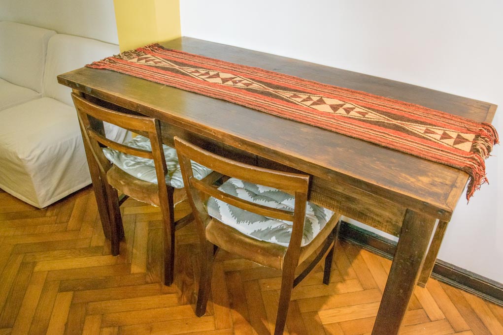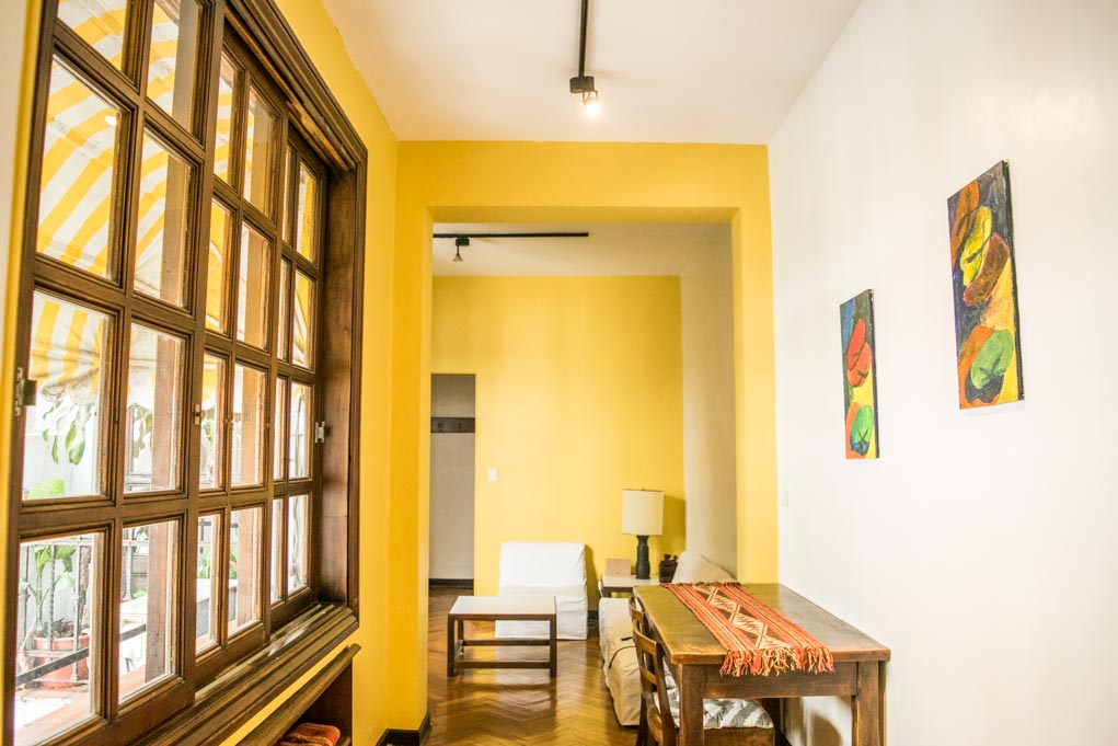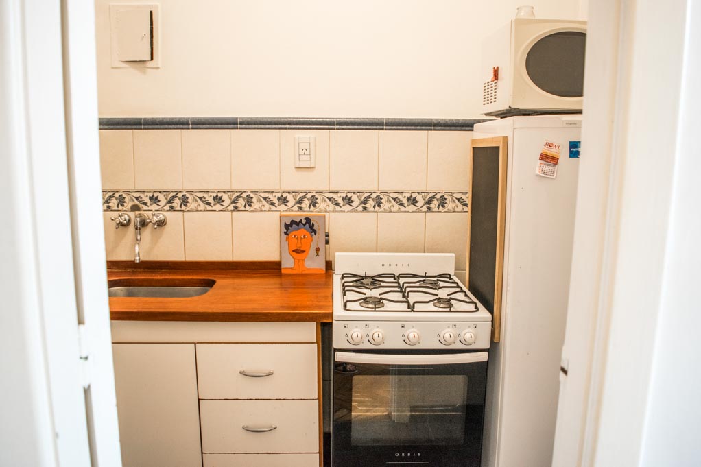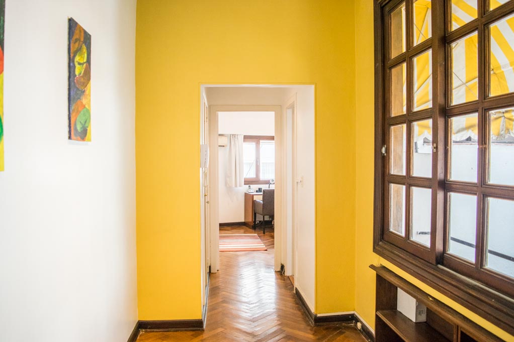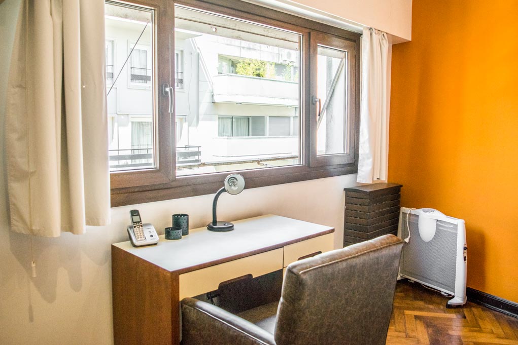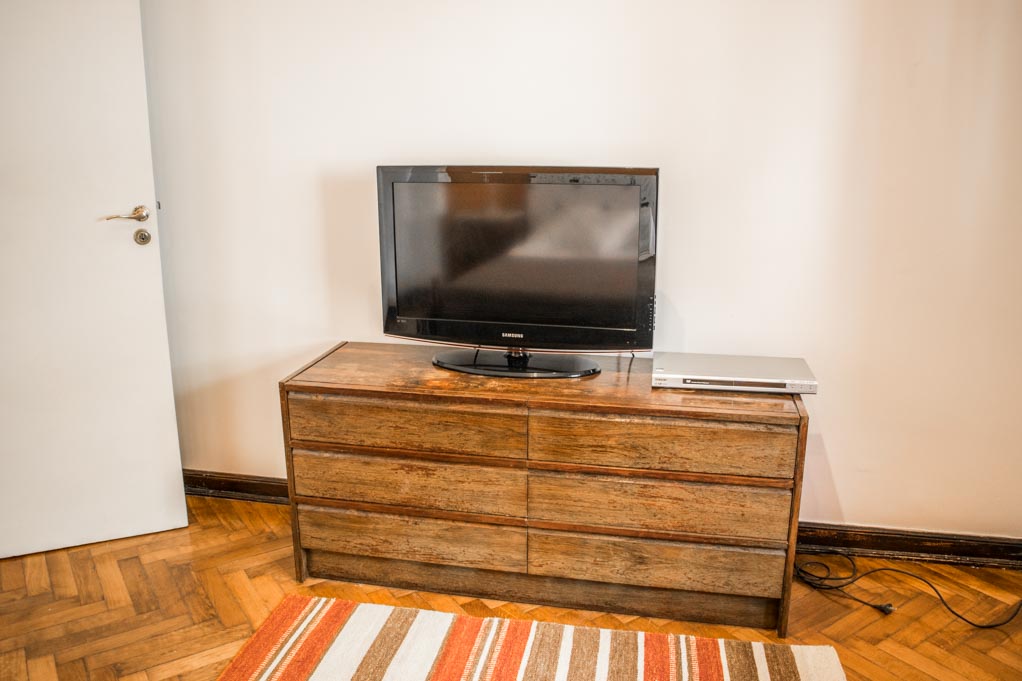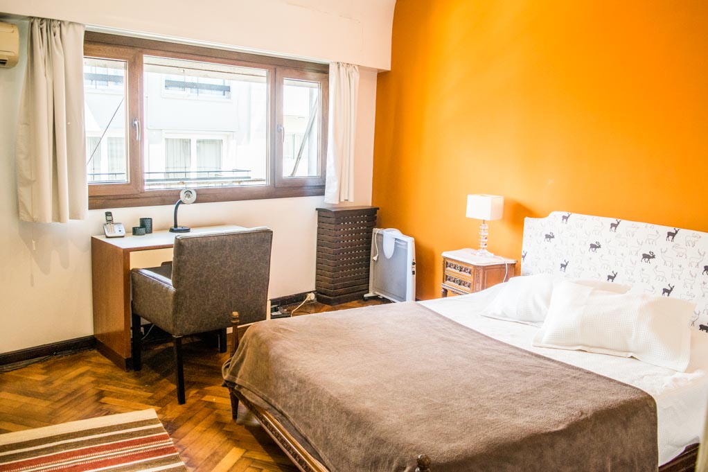 Departamento amoblado de 1 habitación ubicado a 1 minuto caminando de la parada de autobús y a 10 minutos caminando de la Estación de Metro Callao (D).El departamento tiene living, comedor, cocina (cerrada) y 1 baño. La habitación 1 tiene cama matrimonial, armario, cómoda, 2 mesas de noche y televisor; El lugar mide 45m² aproximadamente. Los gastos de servicios de gastos comunes, agua caliente, agua fría, electricidad, gas, internet, TV cable, teléfono, limpieza quincenal y calefacción se pagan por adelantado junto a la renta mensual, con un límite de consumo de $ 165USD. Se debe pagar garantía (depósito) la que será devuelta al finalizar el período de arriendo. Cerca del alojamiento se encuentra el Ateneo Grand Splendid, librería conocida a nivel mundial, donde también se realizan presentaciones de libros y musicales en vivo que se pueden apreciar desde su cafetería. A pocos pasos, se encuentra una gran variedad de teatros, entre ellos el famoso Teatro Colón. Posee edificios y estatuas de gran valor histórico y arquitectónico. Esta localidad se conecta con diversos medios de transporte público.