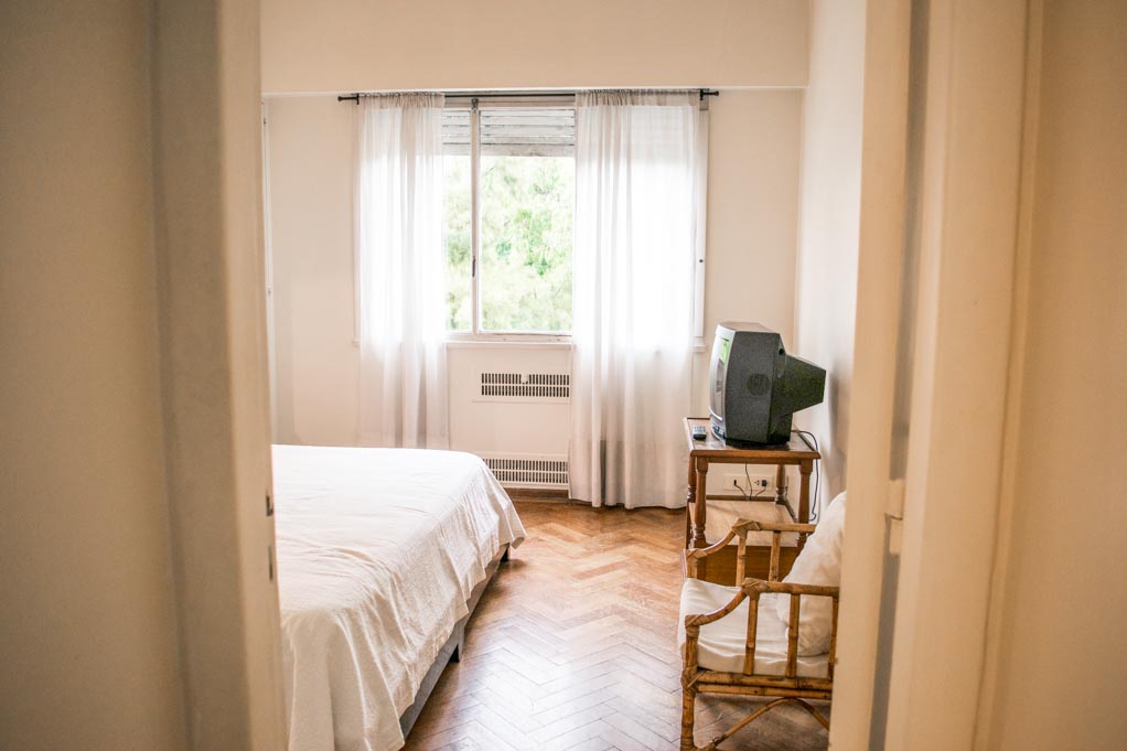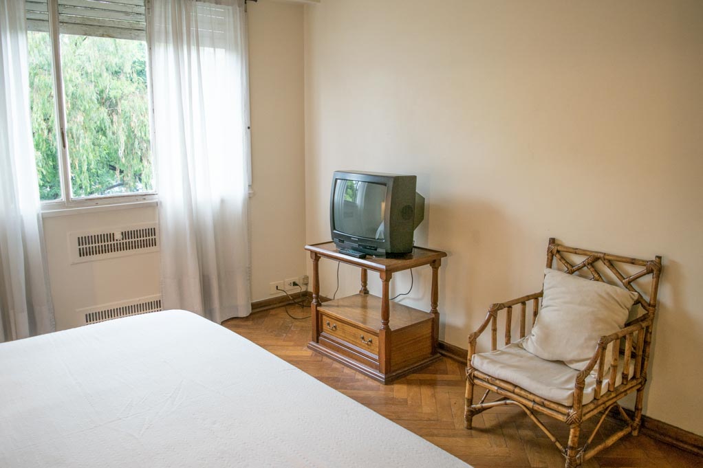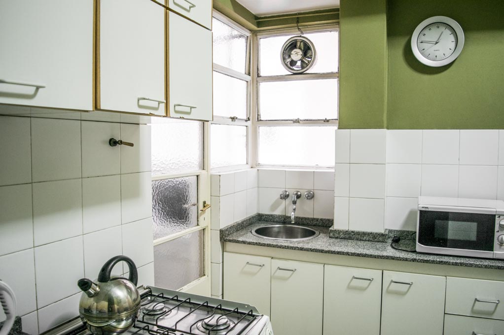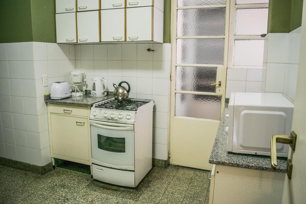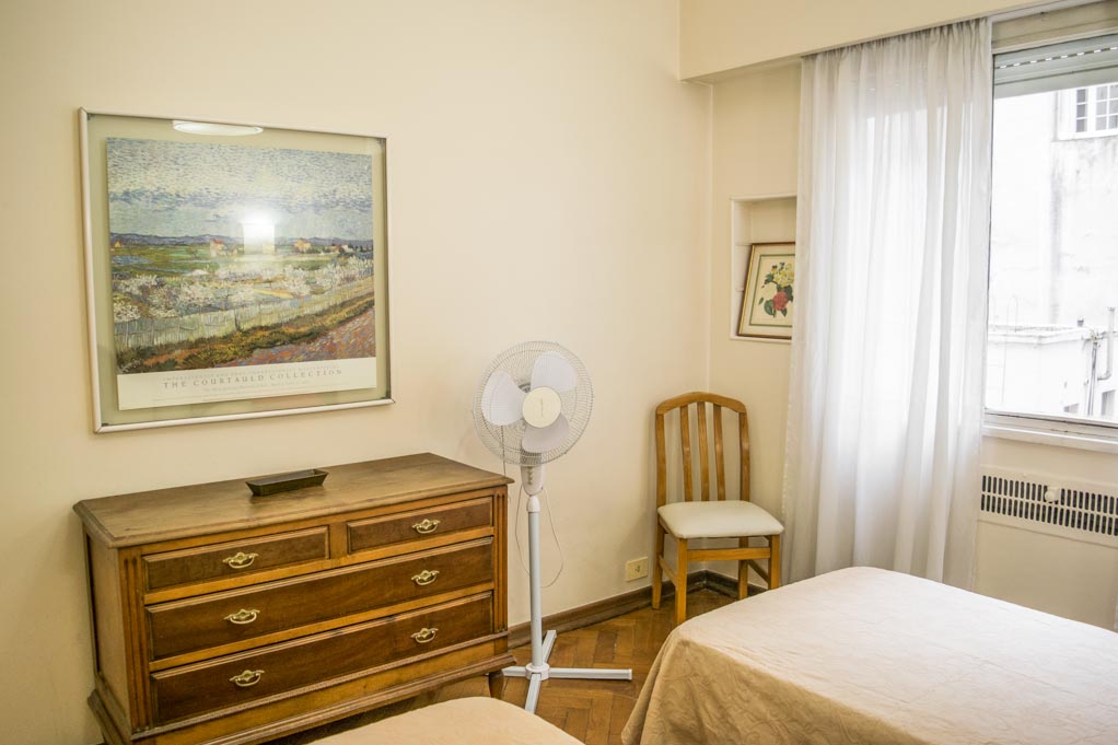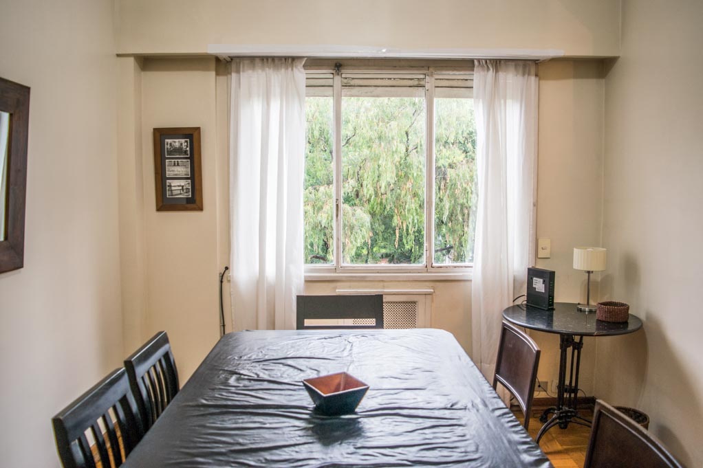 Departamento amoblado de 3 habitaciones ubicado a 2 minutos caminando de la parada de autobús y a 4 minutos caminando de la Estación de Metro Callao (D).El departamento tiene living, comedor, cocina (cerrada), 1 baño y balcón. La habitación 1 tiene cama matrimonial, armario, sofá y televisor; La habitación 2 tiene 2 camas individuales, armario, cómoda y mesa de noche; La habitación 3 tiene cama individual, armario, mesa de noche y sofá; El lugar mide 110m² + 3m² de terraza aproximadamente. Los gastos de servicios de gastos comunes, agua caliente, agua fría, electricidad, gas, internet, TV cable y limpieza semanal se pagan por adelantado junto a la renta mensual, con un límite de consumo de $ 360USD. Se debe pagar garantía (depósito) la que será devuelta al finalizar el período de arriendo. Cerca del alojamiento se encuentra el Ateneo Grand Splendid, librería conocida a nivel mundial, donde también se realizan presentaciones de libros y musicales en vivo que se pueden apreciar desde su cafetería. A pocos pasos, se encuentra una gran variedad de teatros, entre ellos el famoso Teatro Colón. Posee edificios y estatuas de gran valor histórico y arquitectónico. Esta localidad se conecta con diversos medios de transporte público.