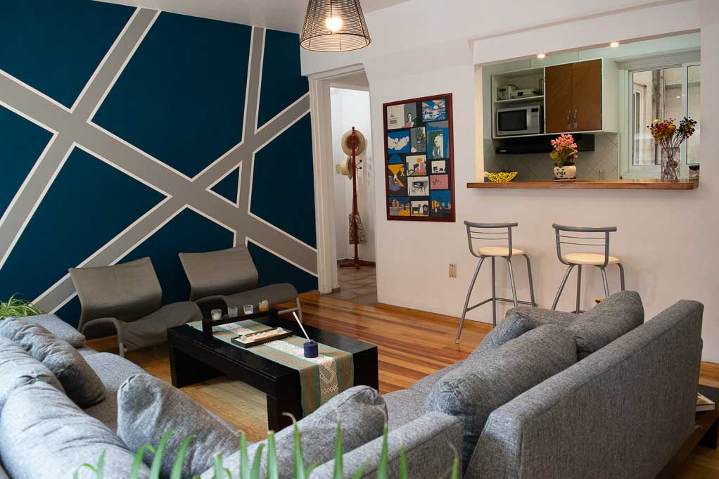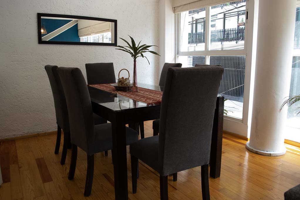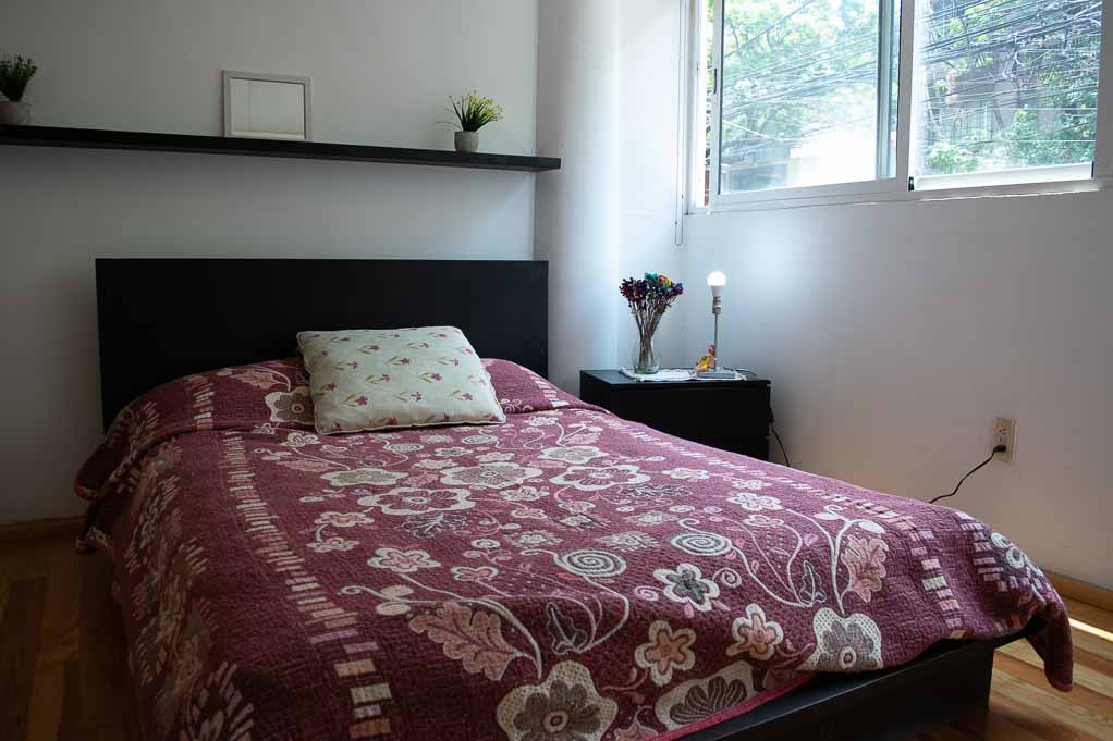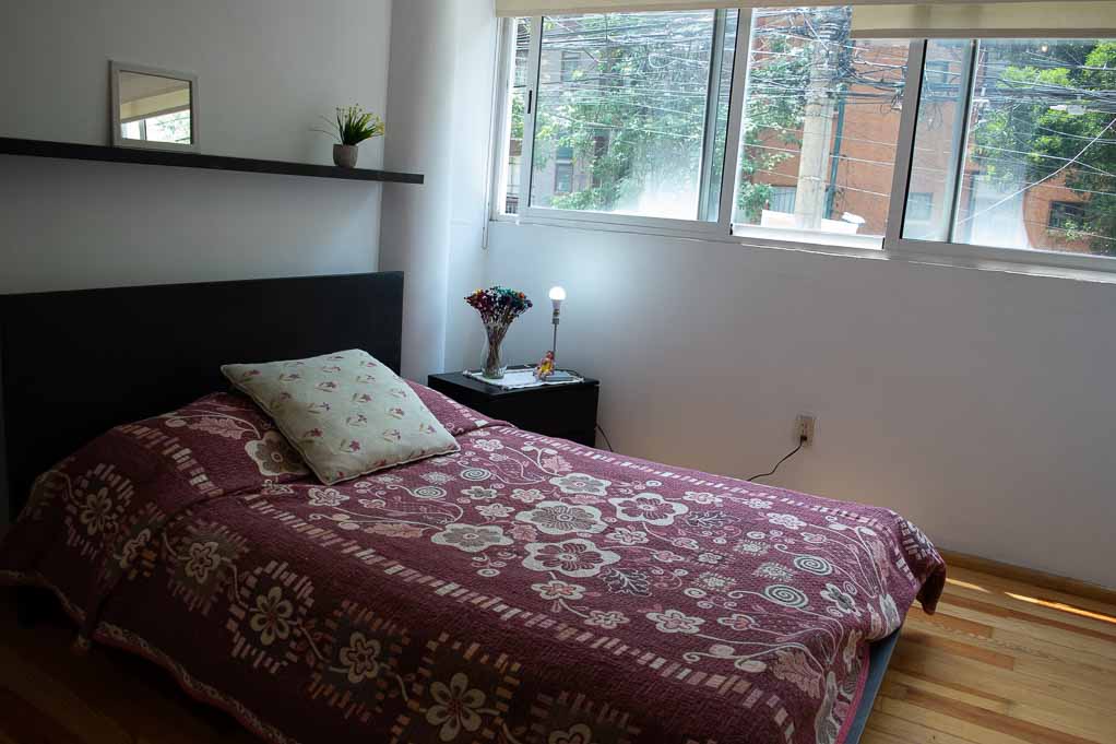 Departamento amoblado de 2 habitaciones ubicado a 3 minutos caminando de la parada de autobús y a 13 minutos caminando de la Estación de Metro Juanacatlán.El departamento tiene living, comedor, cocina (abierta) y 2 baños. La habitación 1 tiene cama matrimonial, clóset, mesa de noche y baño en suite; La habitación 2 tiene cama matrimonial, clóset y mesa de noche; El lugar mide 90m² aproximadamente. Los gastos de servicios de agua fría, electricidad, gas, internet y limpieza quincenal se pagan por adelantado junto a la renta mensual, con un límite de consumo de $ 137USD. Se debe pagar garantía (depósito) la que será devuelta al finalizar el período de arriendo. Cerca del alojamiento se encuentra el Parque España, un a área verde donde las personas acostumbran correr, pasear mascotas o leer, alrededor se encuentran varios cafés y restaurantes. La zona se caracteriza por sus calles arboladas y vanguardistas departamentos. Hay diversos medios de transporte público a distintos puntos de la ciudad.