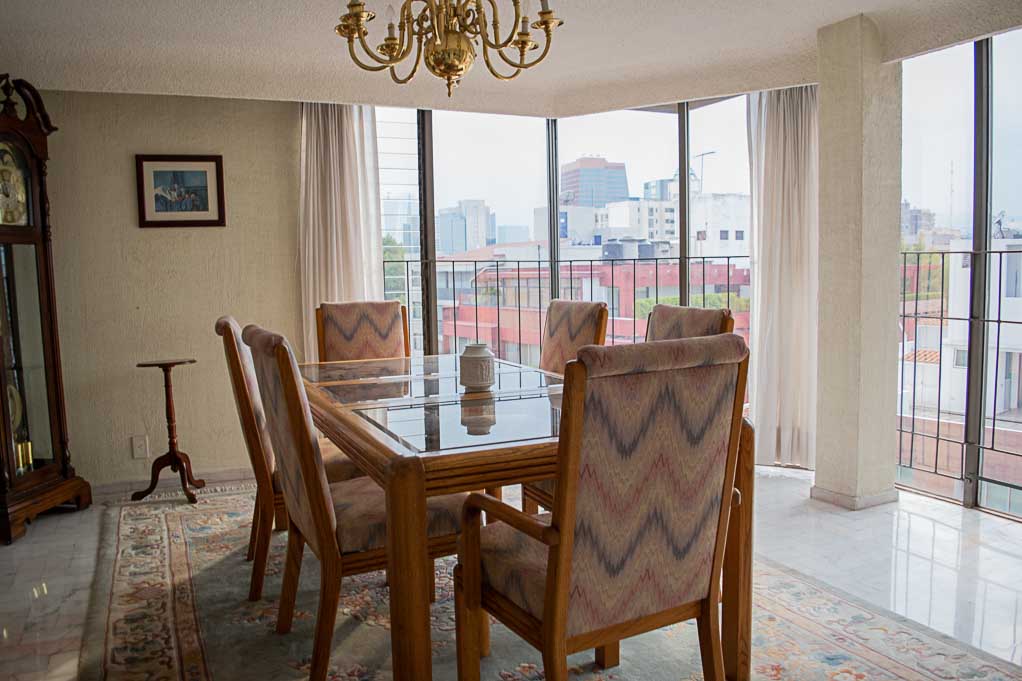 Departamento amoblado de 3 habitaciones ubicado a 4 minutos caminando de la parada de autobús y a 11 minutos caminando de la Estación de Metro Insurgentes Sur.El departamento tiene living, comedor, cocina (cerrada), 3 baños, balcón, sala de TV y 2 estacionamientos. La habitación 1 tiene cama matrimonial, walk-in clóset, cómoda, 2 mesas de noche, sofá, televisor y baño en suite; La habitación 2 tiene cama matrimonial, clóset, cómoda y mesa de noche; La habitación 3 tiene cama individual, armario, mesa de noche, silla y baño en suite; El lugar mide 220m² + 4m² de terraza aproximadamente. Los gastos de servicios de mantenimiento se pagan por adelantado junto a la renta mensual, con un límite de consumo de $ 186USD. Además, se debe considerar el pago de gastos de servicios de agua caliente, agua fría, electricidad, gas, internet, TV cable y teléfono que suman $ 94USD aproximadamente. Se debe pagar garantía (depósito) la que será devuelta al finalizar el período de arriendo; además, se debe pagar $ 20USD al momento de devolver el alojamiento para realizar la limpieza del lugar.