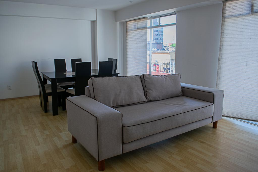 Departamento amoblado de 1 habitación ubicado a 3 minutos caminando de la parada de autobús y a 14 minutos caminando de la Estación de Metro Insurgentes Sur.El departamento tiene living, comedor, cocina (abierta), 1 baño, 1 ½ baño y 2 estacionamientos. La habitación 1 tiene cama matrimonial, walk-in clóset y baño en suite; El lugar mide 75m² aproximadamente. Los gastos de servicios de mantenimiento se pagan por adelantado junto a la renta mensual, con un límite de consumo de $ 101USD. Además, se debe considerar el pago de gastos de servicios de agua fría, electricidad, gas, internet, TV cable y teléfono que suman $ 61USD aproximadamente. Se debe pagar garantía (depósito) la que será devuelta al finalizar el período de arriendo; además, se debe pagar $ 58USD al momento de devolver el alojamiento para realizar la limpieza del lugar.