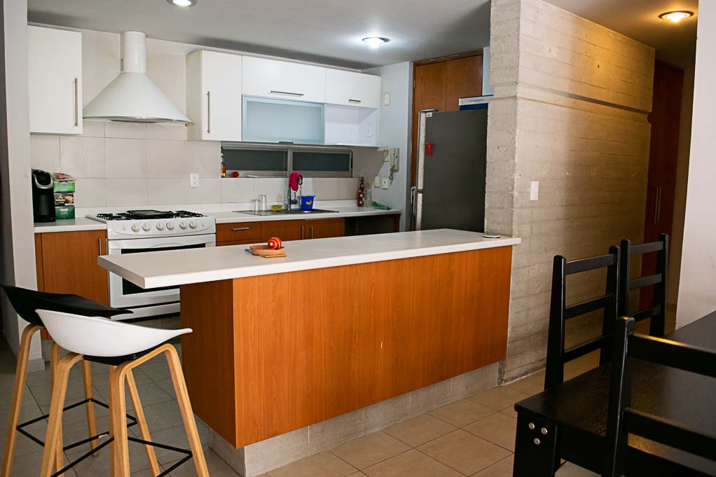 Departamento amoblado de 3 habitaciones ubicado a 5 minutos caminando de la parada de autobús y a 13 minutos caminando de la Estación de Metro Eugenia.El departamento tiene living, comedor, cocina (abierta), 2 baños, terraza y 1 estacionamiento. La habitación 1 tiene cama matrimonial, walk-in clóset, 2 mesas de noche y baño en suite; La habitación 2 tiene cama matrimonial y clóset; La habitación 3 tiene cama matrimonial y clóset; El lugar mide 117m² + 20m² de terraza aproximadamente. Los gastos de servicios de mantenimiento se pagan por adelantado junto a la renta mensual, con un límite de consumo de $ 83USD. Además, se debe considerar el pago de gastos de servicios de agua fría, electricidad, gas, internet, TV cable y teléfono que suman $ 69USD aproximadamente. Se debe pagar garantía (depósito) la que será devuelta al finalizar el período de arriendo; además, se debe pagar $ 19USD al momento de devolver el alojamiento para realizar la limpieza del lugar. Cerca del alojamiento se encuentra la Avenida de los Insurgentes, una de las principales vialidades y atraviesa la mayoría de la Ciudad de México. La zona se caracteriza por ser en su mayoría residencial tener circuitos educacionales y gastronómicos con diversos restaurantes y cafeterías. Hay múltiples medios de transporte público a distintos puntos de la ciudad.