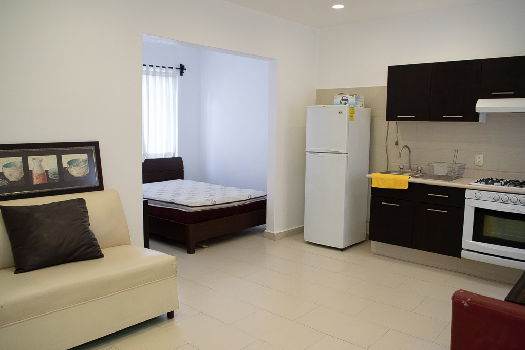 Departamento amoblado de 1 habitación ubicado a 4 minutos caminando de la parada de autobús y a 10 minutos caminando de la Estación de Metro Chilpancingo.El departamento tiene living, comedor, cocina (abierta) y 1 baño. La habitación 1 tiene cama matrimonial, cómoda y mesa de noche; El lugar mide 46m² aproximadamente. Se debe considerar el pago de gastos de servicios de agua fría, electricidad, gas, internet, TV cable y teléfono que suman $ 56USD aproximadamente. Se debe pagar garantía (depósito) la que será devuelta al finalizar el período de arriendo; además, se debe pagar $ 17USD al momento de devolver el alojamiento para realizar la limpieza del lugar.