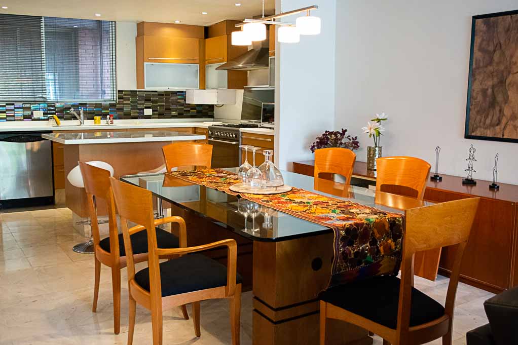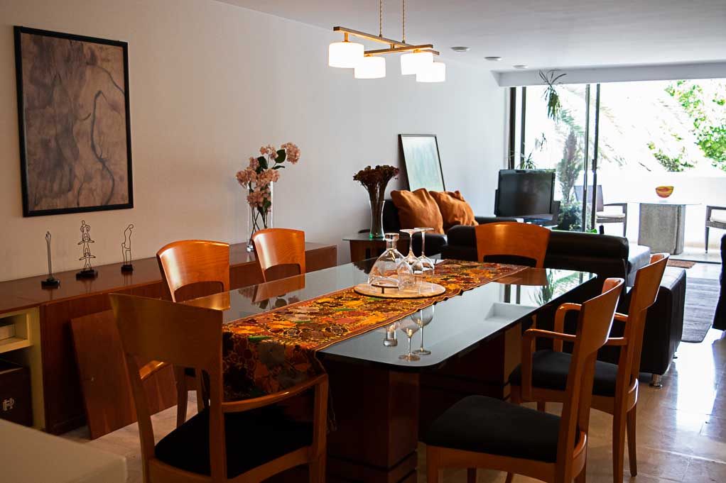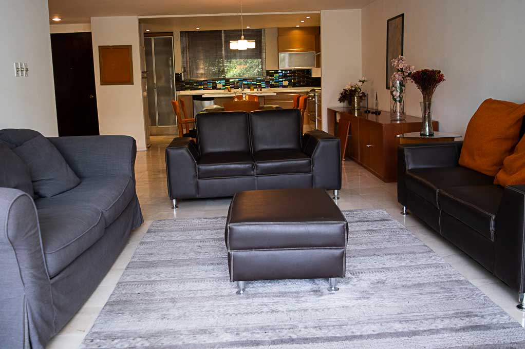 Departamento amoblado de 2 habitaciones ubicado a 4 minutos caminando de la parada de autobús y a 4 minutos caminando de la Estación de Metro Polanco.El departamento tiene living, comedor, cocina (abierta), 2 baños, terraza y 1 estacionamiento. La habitación 1 tiene cama matrimonial, armario, walk-in clóset, 2 mesas de noche, sofá y baño en suite; La habitación 2 tiene cama matrimonial, armario, clóset, 2 mesas de noche y 2 sofás; El lugar mide 140m² + 8m² de terraza aproximadamente. Los gastos de servicios de mantenimiento se pagan por adelantado junto a la renta mensual, con un límite de consumo de $ 157USD. Además, se debe considerar el pago de gastos de servicios de agua fría, electricidad, gas, internet, TV cable y teléfono que suman $ 76USD aproximadamente. El alojamiento tiene lavandería compartida (lavado o secado). Se debe pagar garantía (depósito) la que será devuelta al finalizar el período de arriendo; además, se debe pagar $ 26USD al momento de devolver el alojamiento para realizar la limpieza del lugar. Cerca del alojamiento se encuentra una zona de negocios corporativos, centros de salud y diversos circuitos gastronómicos y culturales como el Mercado Masaryk. Además, existen múltiples opciones de transporte público a distintos puntos de la ciudad.