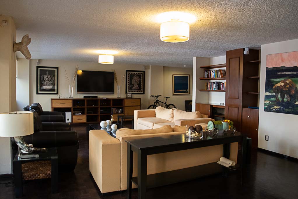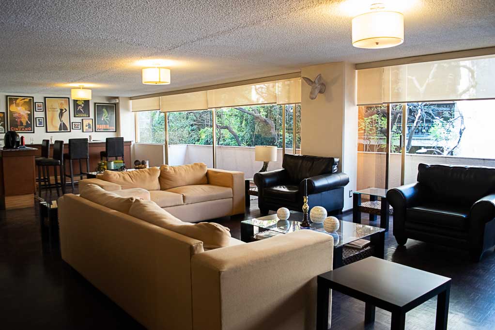 Departamento amoblado de 4 habitaciones ubicado a 5 minutos caminando de la parada de autobús y a 7 minutos caminando de la Estación de Metro Polanco.El departamento tiene living, comedor, cocina (cerrada), 3 baños, 1 ½ baño, balcón y 2 estacionamientos. La habitación 1 tiene cama matrimonial, walk-in clóset, cómoda, 2 mesas de noche, sofá, televisor, escritorio y baño en suite; La habitación 2 tiene cama matrimonial, clóset, cómoda, 2 mesas de noche, televisor, escritorio y silla; La habitación 3 tiene clóset; La habitación 4 tiene clóset y baño en suite; El lugar mide 310m² + 10m² de terraza aproximadamente. Se debe considerar el pago de gastos de servicios de agua fría, electricidad, gas, internet y TV cable que suman $ 79USD aproximadamente. Se debe pagar garantía (depósito) la que será devuelta al finalizar el período de arriendo; además, se debe pagar $ 26USD al momento de devolver el alojamiento para realizar la limpieza del lugar. Cerca del alojamiento se encuentra una zona de negocios corporativos, centros de salud y diversos circuitos gastronómicos y culturales como el Mercado Masaryk. Además, existen múltiples opciones de transporte público a distintos puntos de la ciudad.