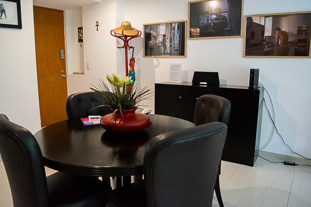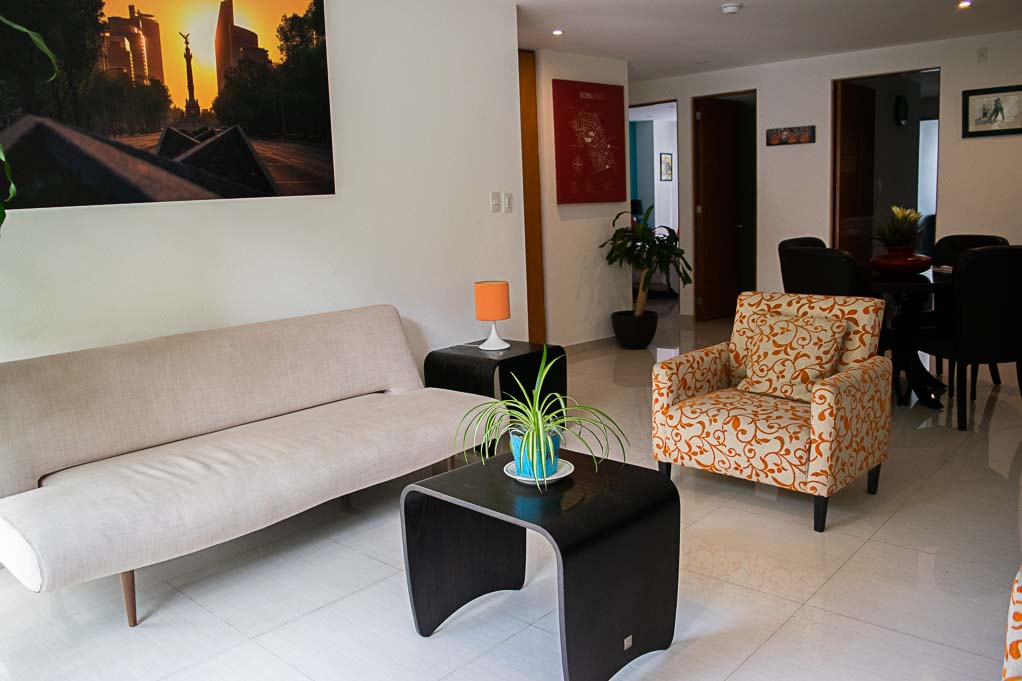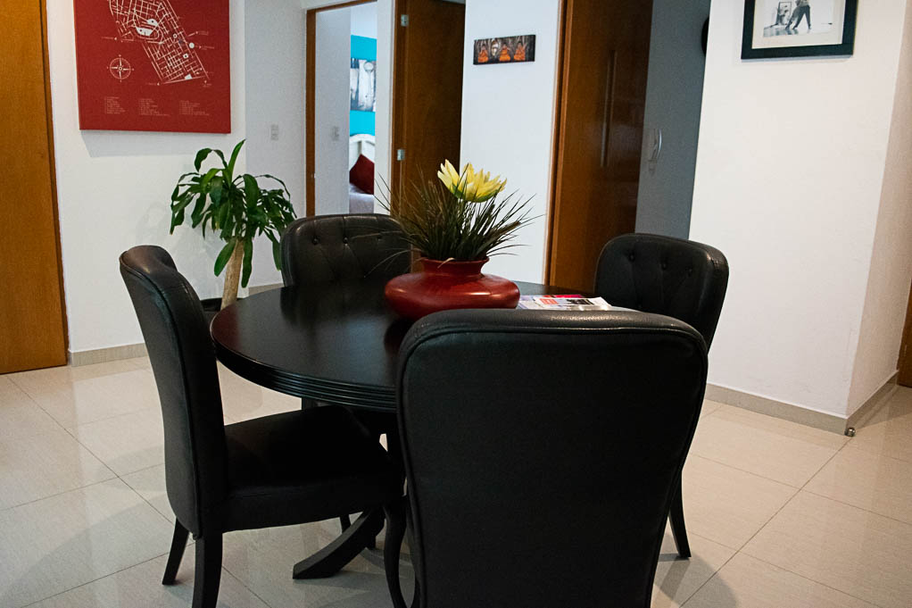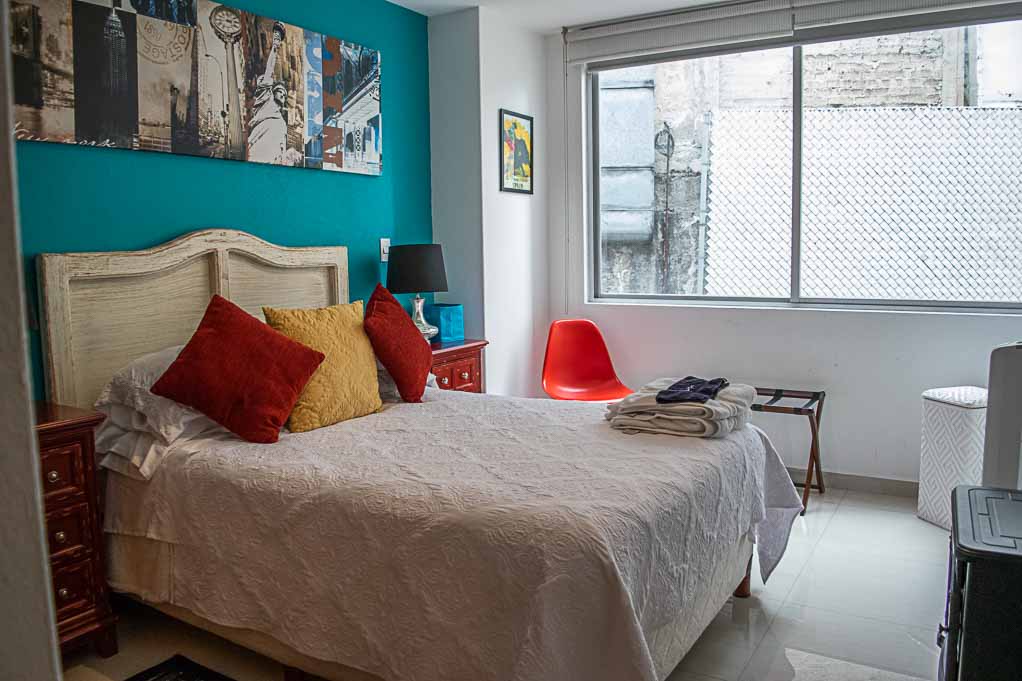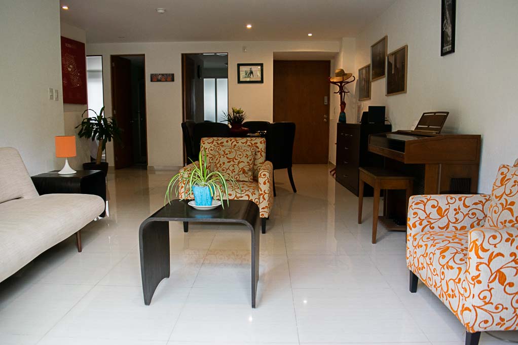 Departamento amoblado de 2 habitaciones ubicado a 5 minutos caminando de la parada de autobús y a 10 minutos caminando de la Estación de Metro Sevilla.El departamento tiene living, comedor, cocina (cerrada), 2 baños, balcón y 2 estacionamientos. La habitación 1 tiene cama matrimonial, walk-in clóset, 2 mesas de noche, televisor, silla y baño en suite; La habitación 2 tiene cama matrimonial, clóset, 2 mesas de noche, televisor y silla; El lugar mide 103m² + 2m² de terraza aproximadamente. Los gastos de servicios de mantenimiento se pagan por adelantado junto a la renta mensual, con un límite de consumo de $ 141USD. Además, se debe considerar el pago de gastos de servicios de agua caliente, agua fría, electricidad, gas, internet, TV cable y teléfono que suman $ 100USD aproximadamente. Se debe pagar garantía (depósito) la que será devuelta al finalizar el período de arriendo; además, se debe pagar $ 18USD al momento de devolver el alojamiento para realizar la limpieza del lugar.