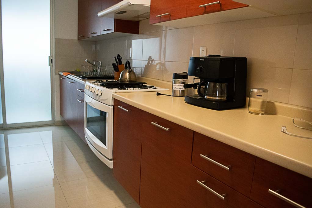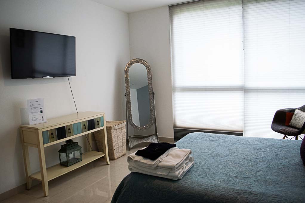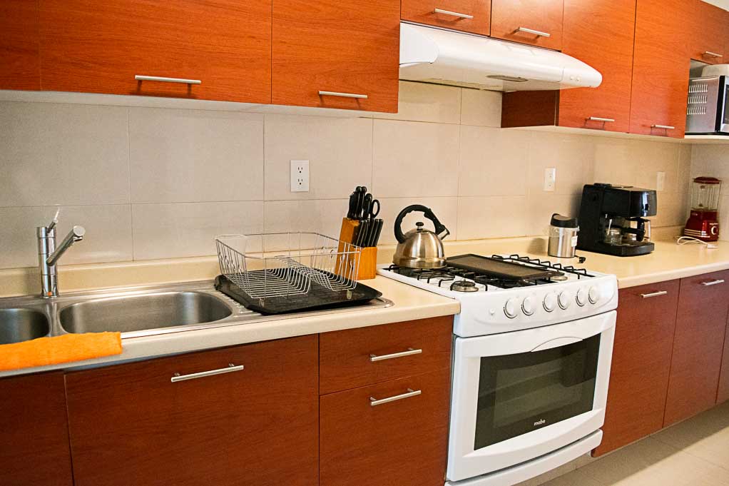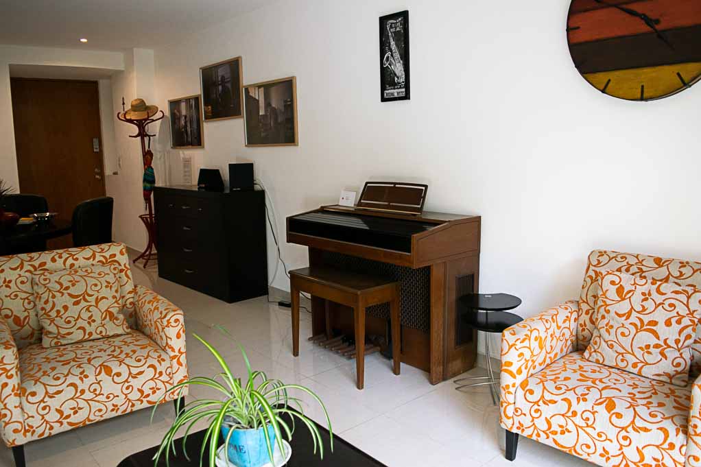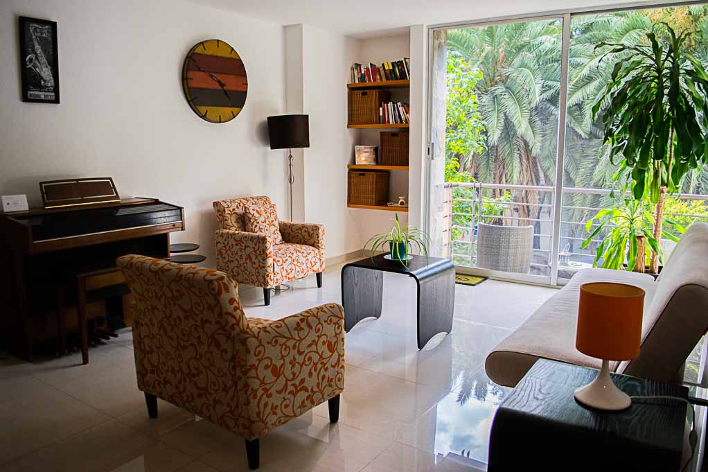 Departamento amoblado de 2 habitaciones ubicado a 5 minutos caminando de la parada de autobús y a 10 minutos caminando de la Estación de Metro Sevilla.El departamento tiene living, comedor, cocina (cerrada), 2 baños, balcón y 2 estacionamientos. La habitación 1 tiene cama matrimonial, walk-in clóset, 2 mesas de noche, televisor, silla y baño en suite; La habitación 2 tiene cama matrimonial, clóset, 2 mesas de noche, televisor y silla; El lugar mide 103m² + 2m² de terraza aproximadamente. Los gastos de servicios de mantenimiento se pagan por adelantado junto a la renta mensual, con un límite de consumo de $ 141USD. Además, se debe considerar el pago de gastos de servicios de agua caliente, agua fría, electricidad, gas, internet, TV cable y teléfono que suman $ 100USD aproximadamente. Se debe pagar garantía (depósito) la que será devuelta al finalizar el período de arriendo; además, se debe pagar $ 18USD al momento de devolver el alojamiento para realizar la limpieza del lugar.