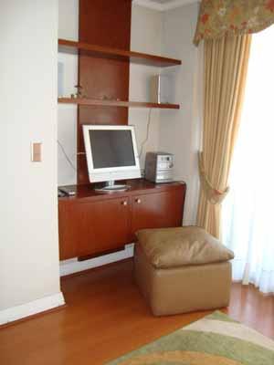 Departamento amoblado de 2 habitaciones ubicado a 1 minuto caminando de la parada de autobús y a 1 minuto caminando de la Estación de Metro Escuela Militar.El departamento tiene living, comedor, cocina (abierta), 2 baños y 1 estacionamiento. La habitación 1 tiene cama matrimonial, walk-in clóset, mesa de noche y baño en suite; La habitación 2 tiene cama individual, clóset, mesa de noche y baño en suite; El lugar mide 48m² aproximadamente. Los gastos de servicios de gastos comunes, agua caliente, agua fría, electricidad y gas se pagan por adelantado junto a la renta mensual, con un límite de consumo de $ 109USD. El alojamiento tiene lavandería compartida cuyo valor es $ 1USD aproximadamente por carga de ropa (lavado o secado). Se debe pagar garantía (depósito) la que será devuelta al finalizar el período de arriendo; además, se debe pagar $ 131USD al momento de devolver el alojamiento para realizar la limpieza del lugar. Cerca del alojamiento se encuentra la Escuela Militar del Libertador Bernardo O'Higgins, instituto encargado de formar oficiales para el Ejército de Chile, además de embajadas, institutos profesionales, colegios, bancos y supermercados; además de diversos medios de transporte público a distintos puntos de la ciudad. En la estación de metro (subsuelo) se encuentra una galería comercial.