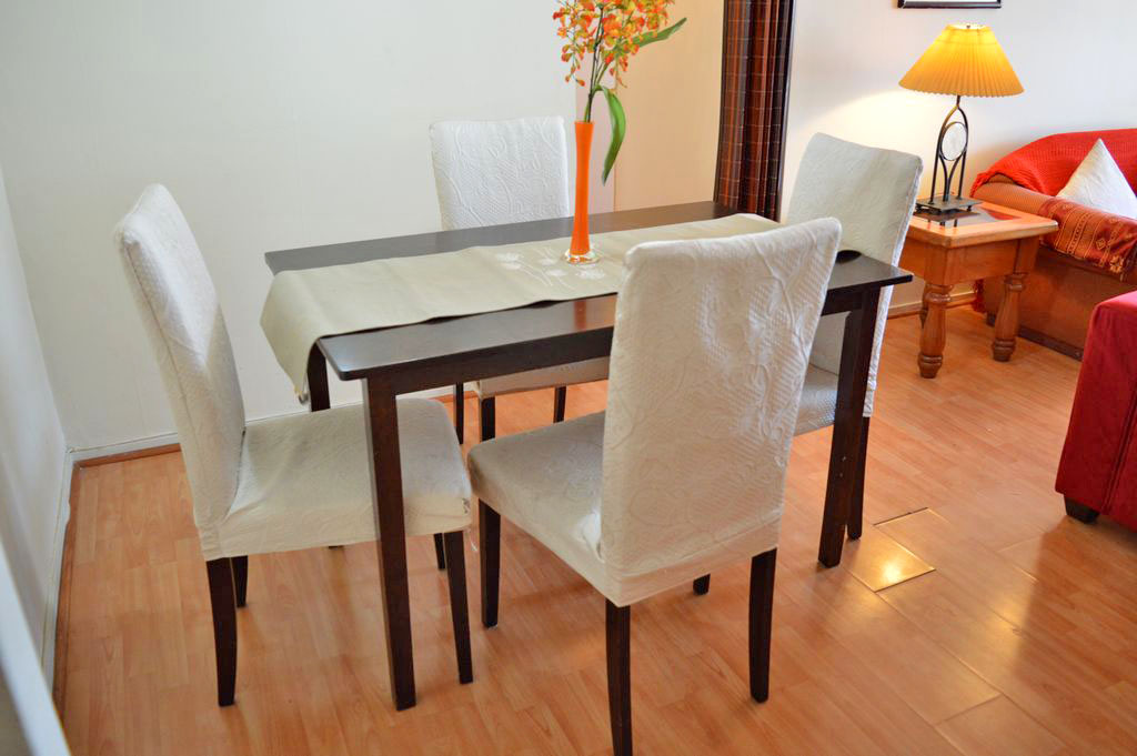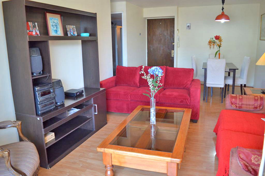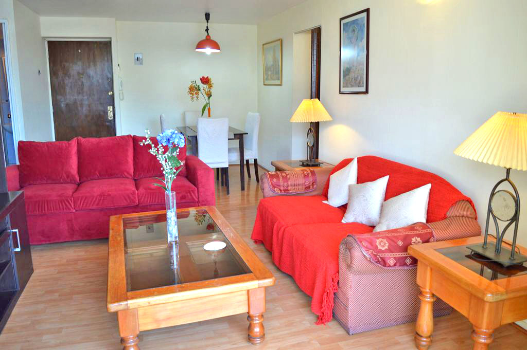 Departamento amoblado de 3 habitaciones ubicado a 1 minuto caminando de la parada de autobús y a 4 minutos caminando de la Estación de Metro Los Dominicos.El departamento tiene living, comedor, cocina (cerrada), 2 baños y balcón. La habitación 1 tiene cama matrimonial, clóset, 2 mesas de noche y televisor; La habitación 2 tiene cama individual, sofá cama y cómoda; La habitación 3 tiene escritorio y silla; El lugar mide 70m² + 6m² de terraza aproximadamente Se debe considerar el pago de gastos de servicios de gastos comunes, agua caliente, agua fría, electricidad, gas, internet y TV cable que suman $ 146USD aproximadamente. Se debe pagar garantía (depósito) la que será devuelta al finalizar el período de arriendo; además, se debe pagar $ 43USD al momento de devolver el alojamiento para realizar la limpieza del lugar. Cerca del alojamiento se encuentra el Parque los Dominicos, donde podrás encontrar la Iglesia Los Dominicos, centros culturales, comercio y el reconocido “Pueblito los Dominicos”, paseo turístico ideal para la familia, que se caracteriza por la gran cantidad de artesanías en cerámica, textil, madera, piedra, entre otros.