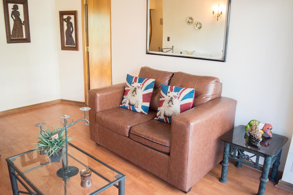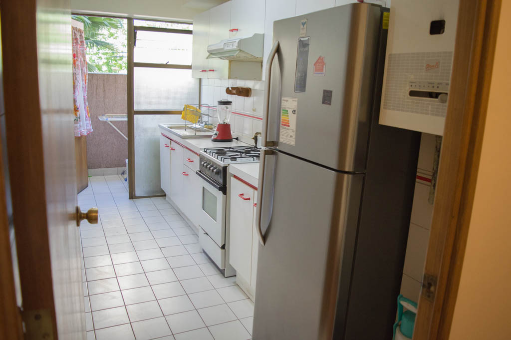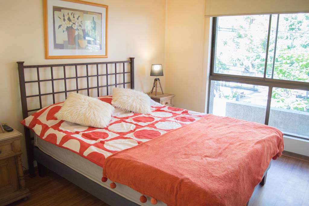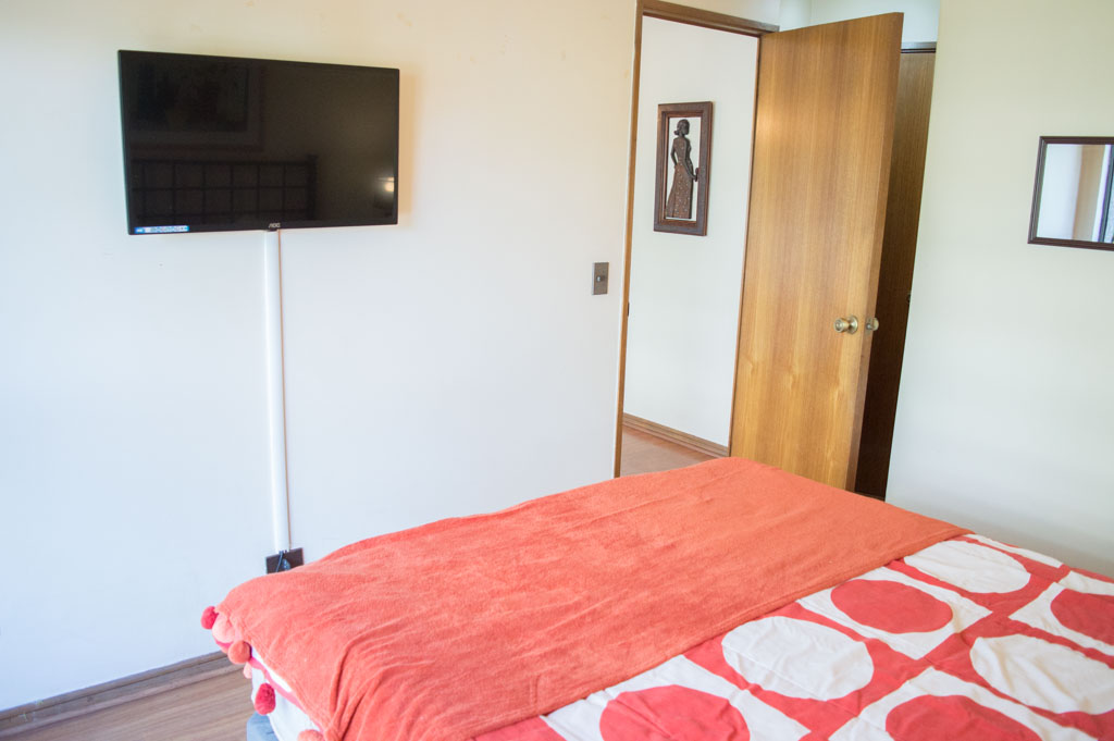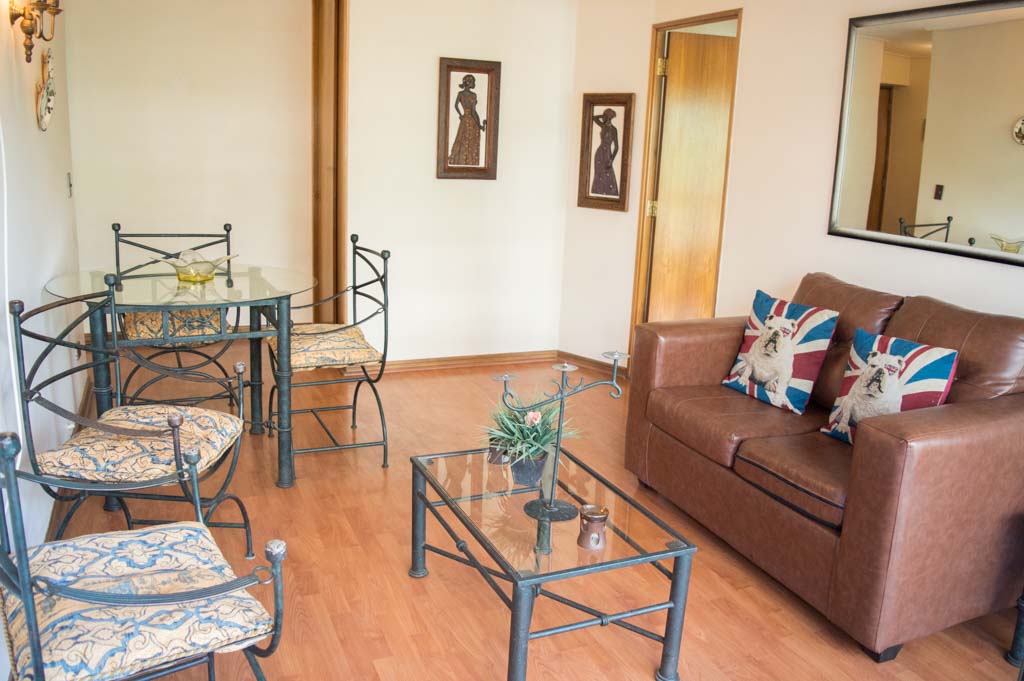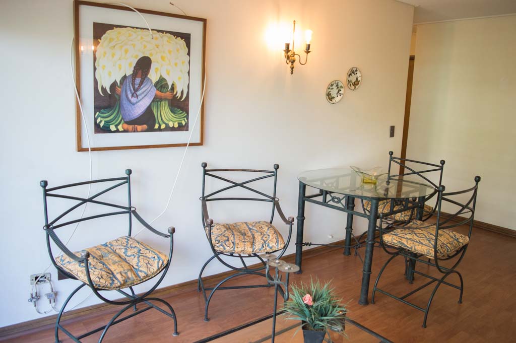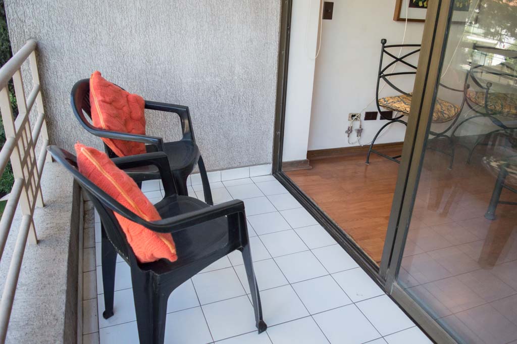 Departamento amoblado de 1 habitación ubicado a 3 minutos caminando de la parada de autobús y a 3 minutos caminando de la Estación de Metro Escuela Militar.El departamento tiene living, comedor, cocina (cerrada), 1 baño y terraza. La habitación 1 tiene cama matrimonial, walk-in clóset, 2 mesas de noche y baño en suite; El lugar mide 45m² aproximadamente. Se debe considerar el pago de gastos de servicios de gastos comunes, agua caliente, agua fría, electricidad y gas que suman $ 119USD aproximadamente. Se debe pagar garantía (depósito) la que será devuelta al finalizar el período de arriendo; además, se debe pagar $ 79USD al momento de devolver el alojamiento para realizar la limpieza del lugar. Cerca del alojamiento se encuentra la Escuela Militar del Libertador Bernardo O'Higgins, instituto encargado de formar oficiales para el Ejército de Chile, además de embajadas, institutos profesionales, colegios, bancos y supermercados; además de diversos medios de transporte público a distintos puntos de la ciudad. En la estación de metro (subsuelo) se encuentra una galería comercial.