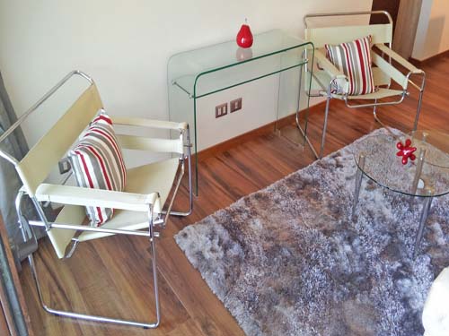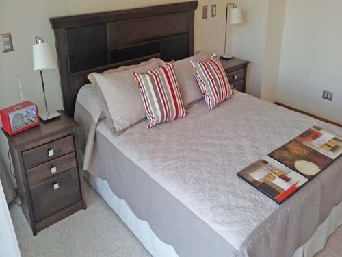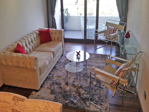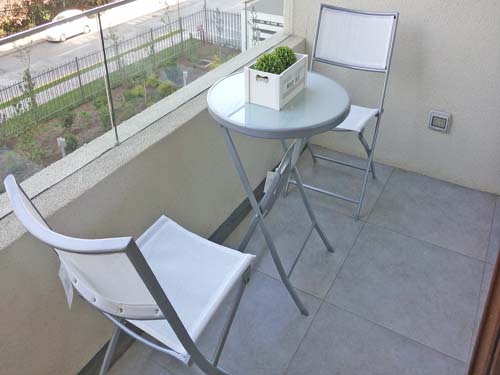 Departamento amoblado de 2 habitaciones ubicado a 5 minutos caminando de la parada de autobús y a 25 minutos caminando de la Estación de Metro Manquehue.El departamento tiene living, comedor, cocina (cerrada), 2 baños, balcón y 1 estacionamiento. La habitación 1 tiene cama matrimonial, walk-in clóset, 2 mesas de noche, televisor y baño en suite; La habitación 2 tiene cama nido, clóset y escritorio; El lugar mide 77m² + 6m² de terraza aproximadamente. Se debe considerar el pago de gastos de servicios de gastos comunes, agua caliente, agua fría, electricidad y gas que suman $ 170USD aproximadamente. El alojamiento tiene lavandería compartida cuyo valor es $ 1USD aproximadamente por carga de ropa (lavado o secado). Se debe pagar garantía (depósito) la que será devuelta al finalizar el período de arriendo; además, se debe pagar $ 55USD al momento de devolver el alojamiento para realizar la limpieza del lugar. Cerca del alojamiento se encuentra el Parque Araucano, 30 hectáreas de áreas verdes, donde es posible descansar rodeado de árboles y jardines, además de practicar una amplia variedad de deportes como correr, andar en bicicleta, patinar, nadar, entre otros. En el también podrás disfrutar de centros de eventos, librerías, restaurantes, cafés y el centro de entretenciones para niños. En el sector se encuentra uno de los primeros centros comerciales de Chile, Apumanque.