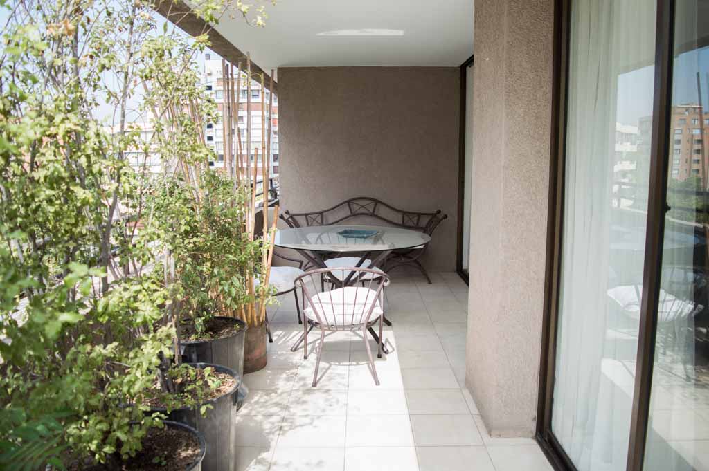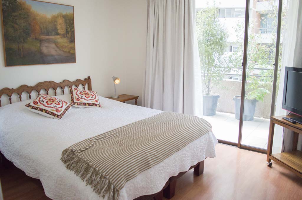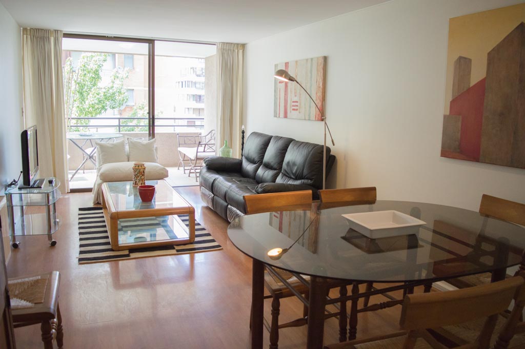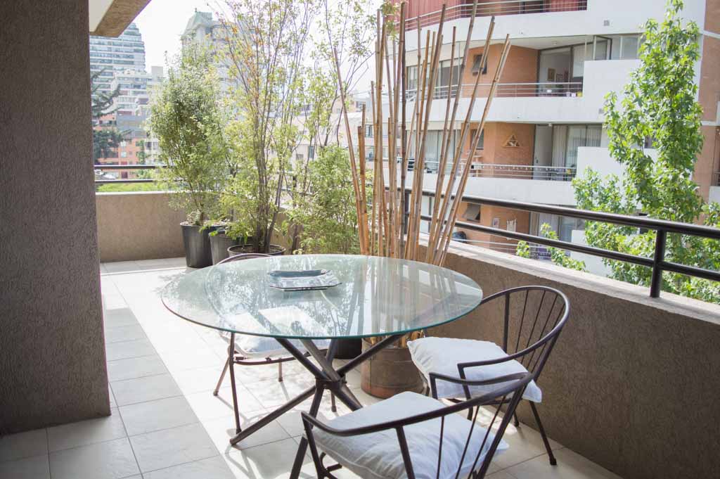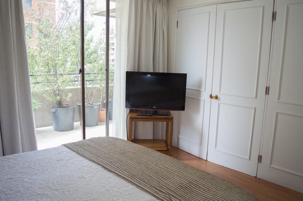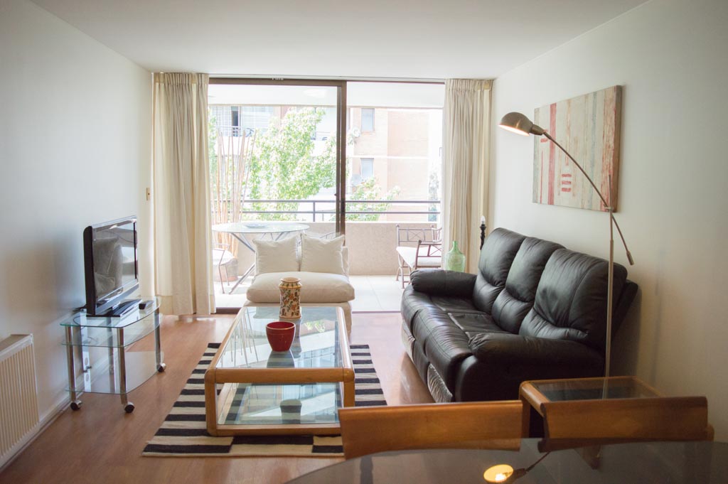 Departamento amoblado de 3 habitaciones ubicado a 2 minutos caminando de la parada de autobús y a 3 minutos caminando de la Estación de Metro El Golf.El departamento tiene living, comedor, cocina (cerrada), 2 baños, terraza y 1 estacionamiento. La habitación 1 tiene cama matrimonial, clóset, 2 mesas de noche y televisor; La habitación 2 tiene cama matrimonial, clóset y mesa de noche; La habitación 3 tiene escritorio y silla; El lugar mide 90m² + 12m² de terraza aproximadamente. Se debe considerar el pago de gastos de servicios de gastos comunes, agua caliente, agua fría, electricidad y gas que suman $ 227USD aproximadamente. El alojamiento tiene lavandería compartida cuyo valor es $ 1USD aproximadamente por carga de ropa (lavado o secado). Se debe pagar garantía (depósito) la que será devuelta al finalizar el período de arriendo; además, se debe pagar $ 54USD al momento de devolver el alojamiento para realizar la limpieza del lugar. Cerca del alojamiento se encuentra el Barrio El Golf, conocido como el corazón financiero de Santiago; con modernos edificios de grandes hoteles, empresas y oficinas. Cerca está la Avenida Apoquindo con diversos bancos, supermercados, cafeterías, transporte público y, a sólo pasos está Avenida Isidora Goyenechea con su gran variedad de restaurantes y bares.
