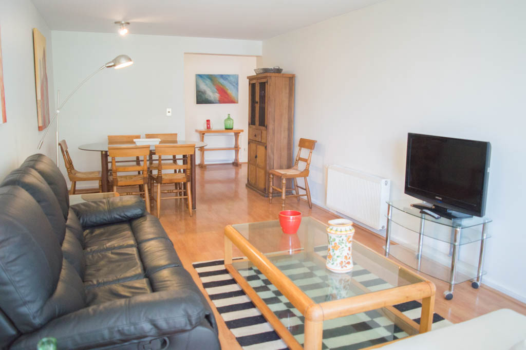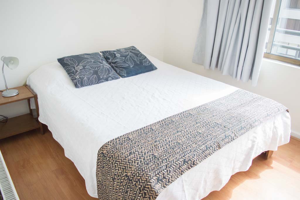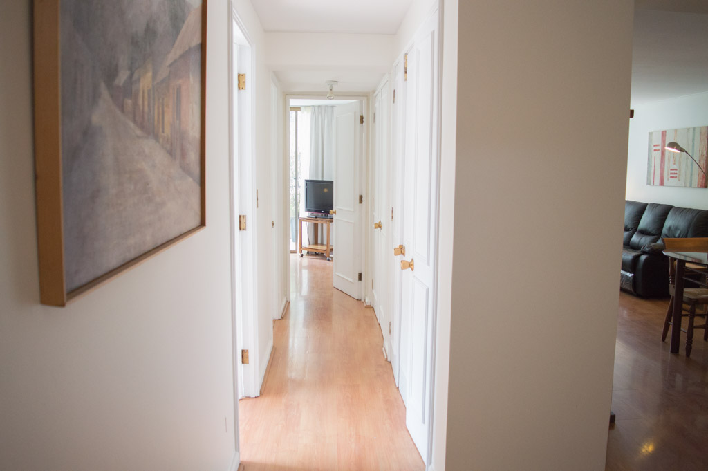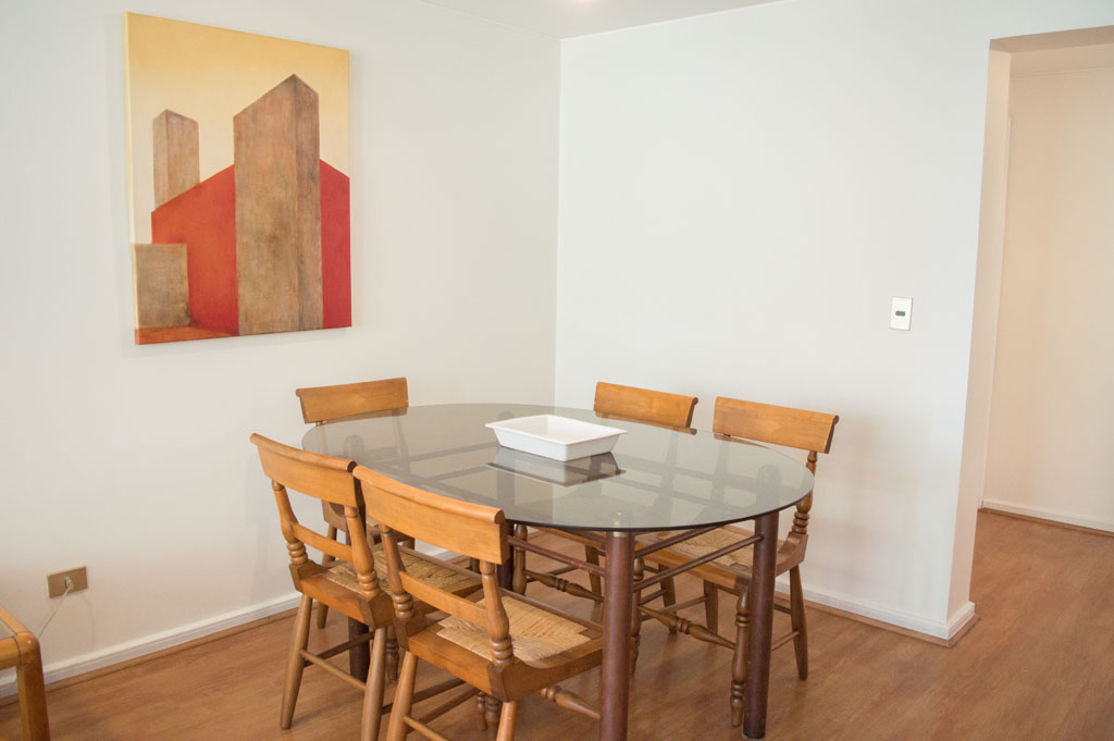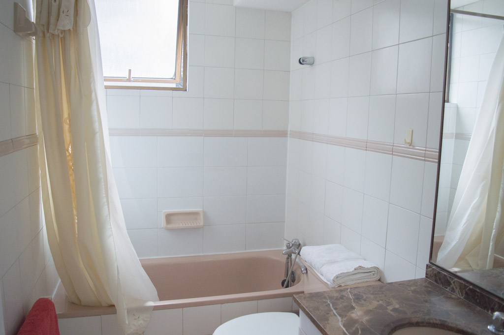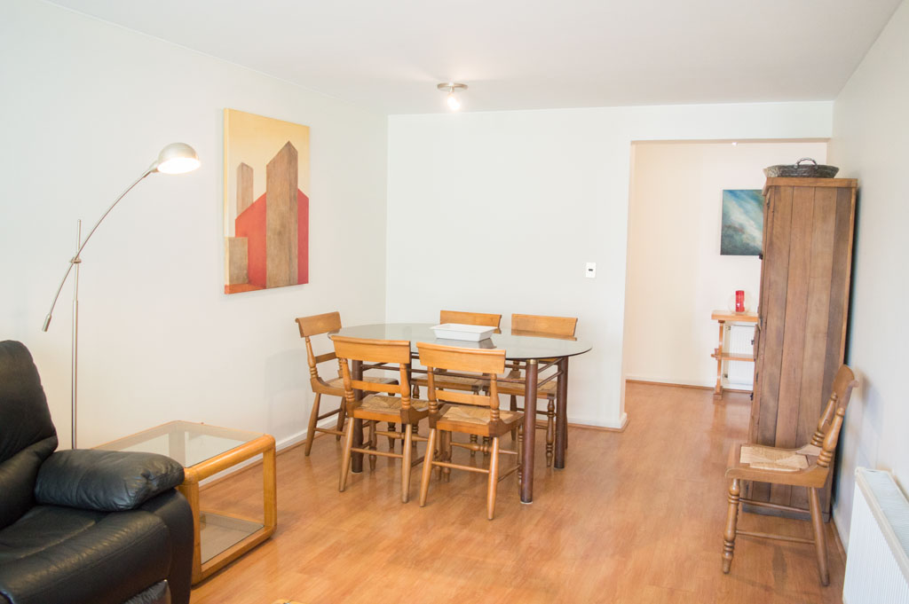 Departamento amoblado de 3 habitaciones ubicado a 2 minutos caminando de la parada de autobús y a 3 minutos caminando de la Estación de Metro El Golf.El departamento tiene living, comedor, cocina (cerrada), 2 baños, terraza y 1 estacionamiento. La habitación 1 tiene cama matrimonial, clóset, 2 mesas de noche y televisor; La habitación 2 tiene cama matrimonial, clóset y mesa de noche; La habitación 3 tiene escritorio y silla; El lugar mide 90m² + 12m² de terraza aproximadamente. Se debe considerar el pago de gastos de servicios de gastos comunes, agua caliente, agua fría, electricidad y gas que suman $ 227USD aproximadamente. El alojamiento tiene lavandería compartida cuyo valor es $ 1USD aproximadamente por carga de ropa (lavado o secado). Se debe pagar garantía (depósito) la que será devuelta al finalizar el período de arriendo; además, se debe pagar $ 54USD al momento de devolver el alojamiento para realizar la limpieza del lugar. Cerca del alojamiento se encuentra el Barrio El Golf, conocido como el corazón financiero de Santiago; con modernos edificios de grandes hoteles, empresas y oficinas. Cerca está la Avenida Apoquindo con diversos bancos, supermercados, cafeterías, transporte público y, a sólo pasos está Avenida Isidora Goyenechea con su gran variedad de restaurantes y bares.