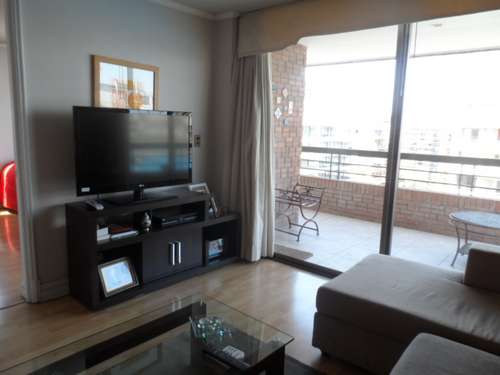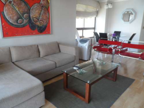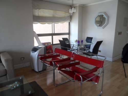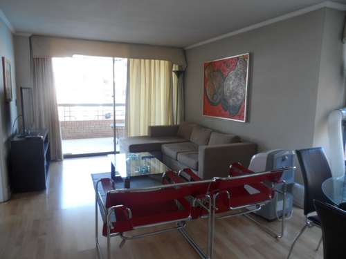 Departamento amoblado de 1 habitación ubicado a 4 minutos caminando de la parada de autobús y a 8 minutos caminando de la Estación de Metro Escuela Militar.El departamento tiene living, comedor, cocina (cerrada), 1 baño, terraza y 1 estacionamiento. La habitación 1 tiene cama matrimonial, clóset, 2 mesas de noche, televisor y baño en suite; El lugar mide 50m² + 10m² de terraza aproximadamente. Los gastos de servicios de gastos comunes, agua caliente, agua fría, electricidad y gas se pagan por adelantado junto a la renta mensual, con un límite de consumo de $ 164USD. El alojamiento tiene lavandería compartida (lavado o secado). Se debe pagar garantía (depósito) la que será devuelta al finalizar el período de arriendo; además, se debe pagar $ 55USD al momento de devolver el alojamiento para realizar la limpieza del lugar. Cerca del alojamiento se encuentra la Escuela Militar del Libertador Bernardo O'Higgins, instituto encargado de formar oficiales para el Ejército de Chile, además de embajadas, institutos profesionales, colegios, bancos y supermercados; además de diversos medios de transporte público a distintos puntos de la ciudad. En la estación de metro (subsuelo) se encuentra una galería comercial.