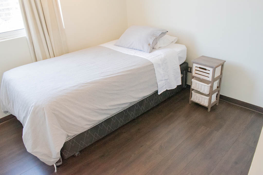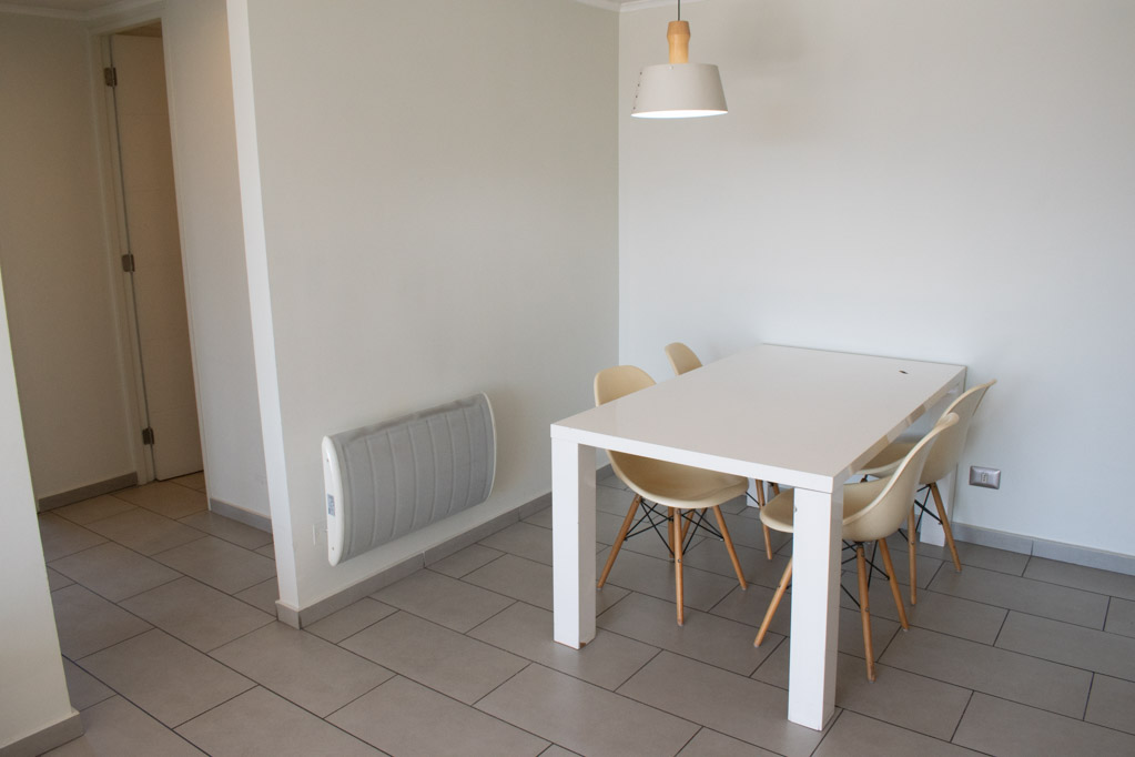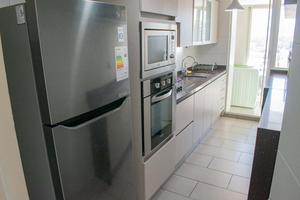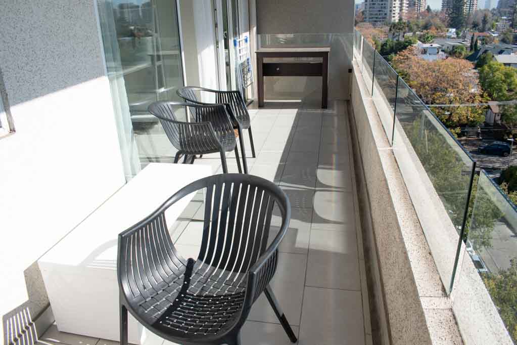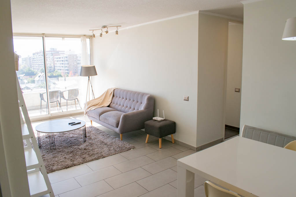 Departamento amoblado de 2 habitaciones ubicado a 2 minutos caminando de la parada de autobús y a 10 minutos caminando de la Estación de Metro Hernando de Magallanes.El departamento tiene living, comedor, cocina (cerrada), 2 baños, terraza y 1 estacionamiento (opcional por un valor de $ 57USD adicional). La habitación 1 tiene cama matrimonial, 2 clósets, 2 mesas de noche y baño en suite; La habitación 2 tiene cama nido, clóset y mesa de noche; El lugar mide 67m² + 12m² de terraza aproximadamente. Los gastos de servicios de gastos comunes, agua caliente, agua fría, electricidad e internet se pagan por adelantado junto a la renta mensual, con un límite de consumo de $ 284USD. El alojamiento tiene lavandería compartida cuyo valor es $ 2USD aproximadamente por carga de ropa (lavado o secado). Se debe pagar garantía (depósito) la que será devuelta al finalizar el período de arriendo; además, se debe pagar $ 45USD al momento de devolver el alojamiento para realizar la limpieza del lugar. Cerca del alojamiento se encuentra la Corporación Cultural de las Condes, donde podrás encontrar una biblioteca, anfiteatro y variadas exposiciones de artistas. En la Avenida las Condes, se ubican comercios, centros educacionales, cafeterías, restaurantes y diversos medios de transporte público a distintos puntos de la ciudad.