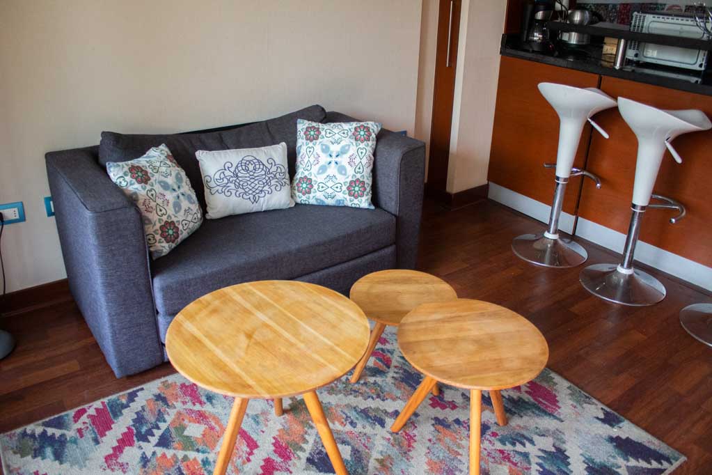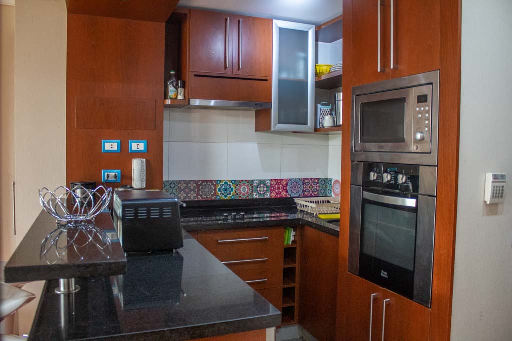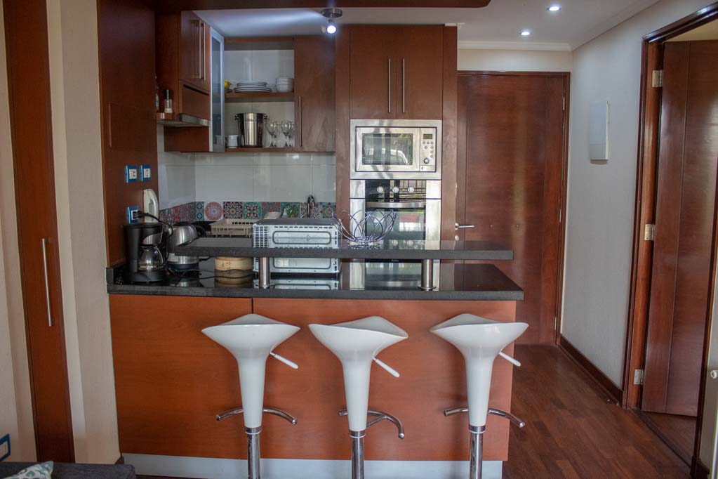 Departamento amoblado de 1 habitación ubicado a 2 minutos caminando de la parada de autobús y a 28 minutos caminando de la Estación de Metro Los Dominicos.El departamento tiene living, comedor, cocina (abierta), 1 baño, terraza y 1 estacionamiento (opcional por un valor de $ 51USD adicional). La habitación 1 tiene cama matrimonial, walk-in clóset, 2 mesas de noche, televisor y baño en suite; El lugar mide 40m² + 15m² de terraza aproximadamente. Los gastos de servicios de gastos comunes, agua caliente, agua fría, electricidad e internet se pagan por adelantado junto a la renta mensual, con un límite de consumo de $ 226USD. El alojamiento tiene lavandería compartida cuyo valor es $ 2USD aproximadamente por carga de ropa (lavado o secado). Se debe pagar garantía (depósito) la que será devuelta al finalizar el período de arriendo; además, se debe pagar $ 45USD al momento de devolver el alojamiento para realizar la limpieza del lugar. Cerca del alojamiento se encuentra el Parque los Dominicos, donde podrás encontrar la Iglesia Los Dominicos, centros culturales, comercio y el reconocido “Pueblito los Dominicos”, paseo turístico ideal para la familia, que se caracteriza por la gran cantidad de artesanías en cerámica, textil, madera, piedra, entre otros.