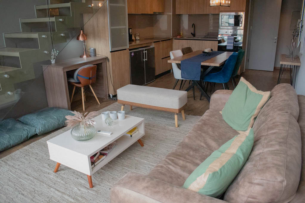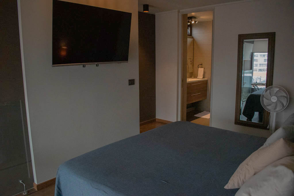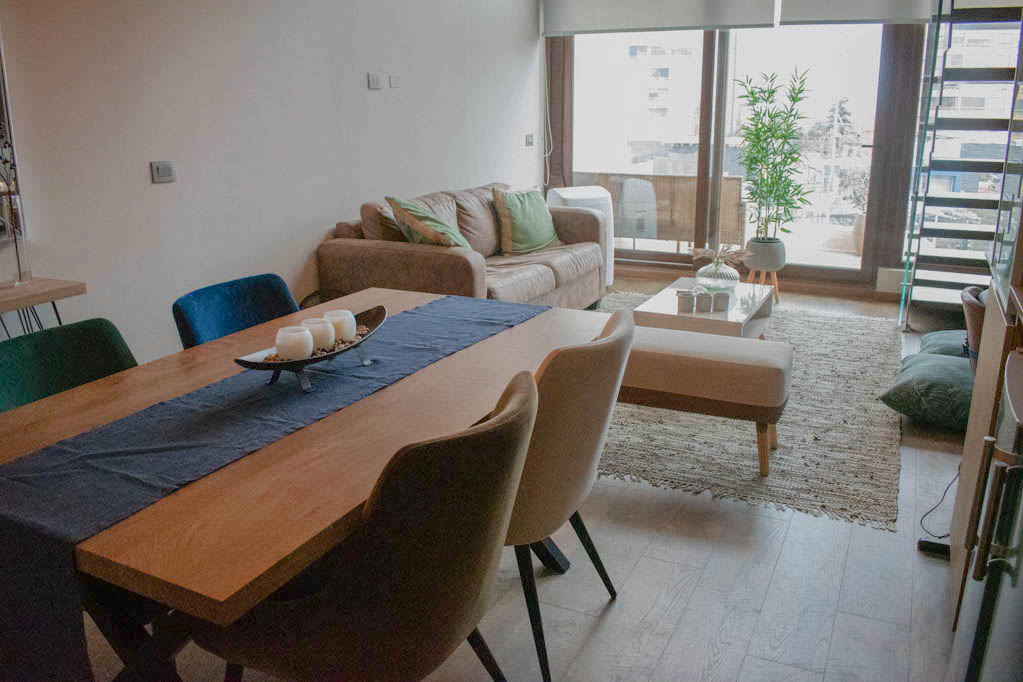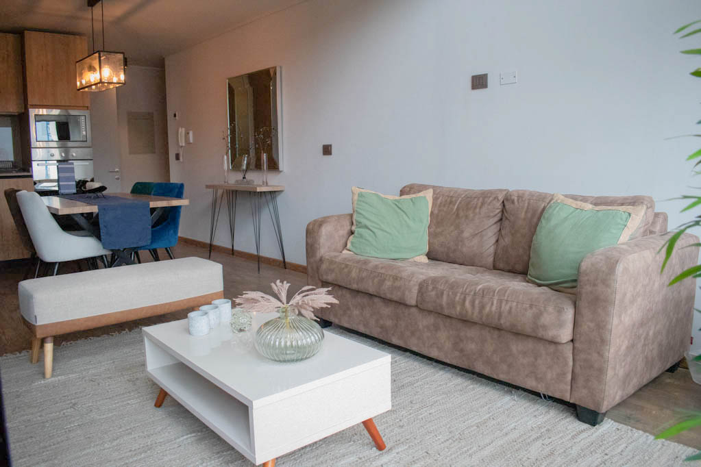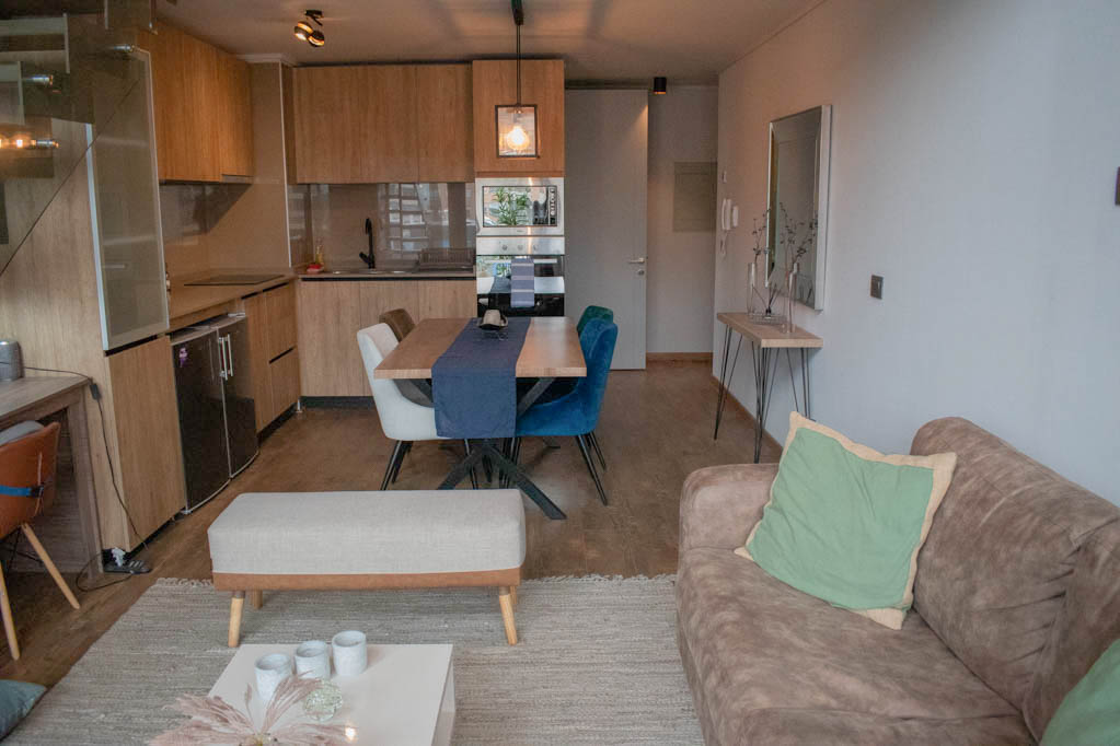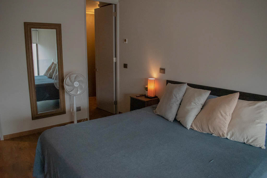 Departamento amoblado de 1 habitación ubicado a 3 minutos caminando de la parada de autobús y a 12 minutos caminando de la Estación de Metro Hernando de Magallanes.El departamento tiene living, comedor, cocina (abierta), 1 baño, 1 ½ baño, terraza y 1 estacionamiento. La habitación 1 tiene cama matrimonial, walk-in clóset, 2 mesas de noche, televisor y baño en suite; El lugar mide 62m² + 8m² de terraza aproximadamente. Los gastos de servicios de gastos comunes, agua caliente, agua fría, electricidad e internet se pagan por adelantado junto a la renta mensual, con un límite de consumo de $ 272USD. Se debe pagar garantía (depósito) la que será devuelta al finalizar el período de arriendo; además, se debe pagar $ 54USD al momento de devolver el alojamiento para realizar la limpieza del lugar. Cerca del alojamiento se encuentra la Corporación Cultural de las Condes, donde podrás encontrar una biblioteca, anfiteatro y variadas exposiciones de artistas. En la Avenida las Condes, se ubican comercios, centros educacionales, cafeterías, restaurantes y diversos medios de transporte público a distintos puntos de la ciudad.