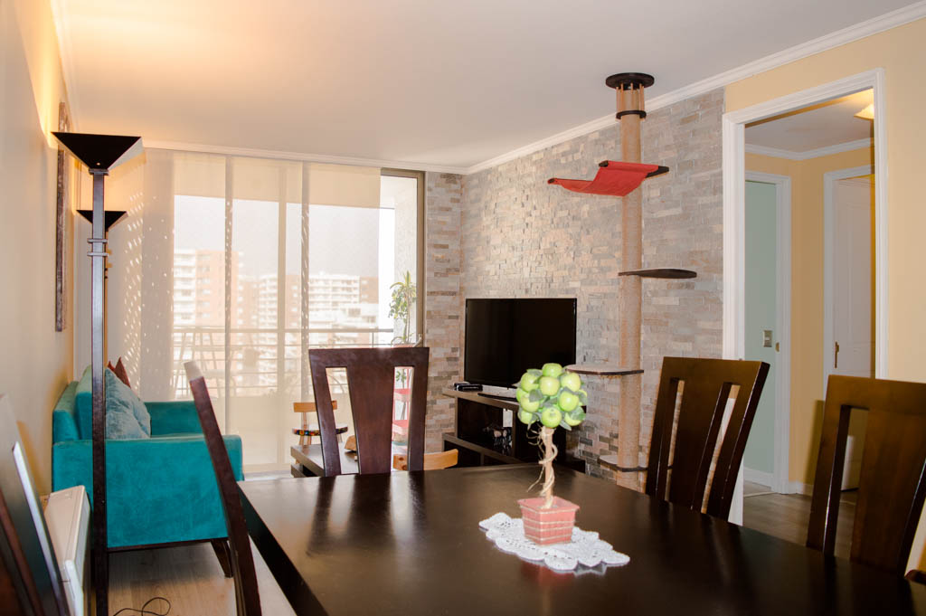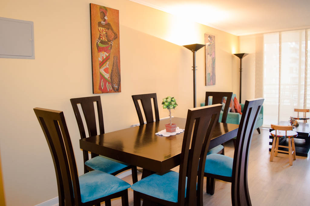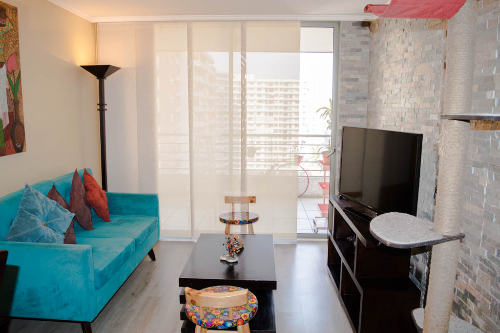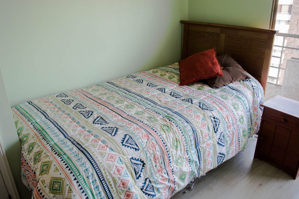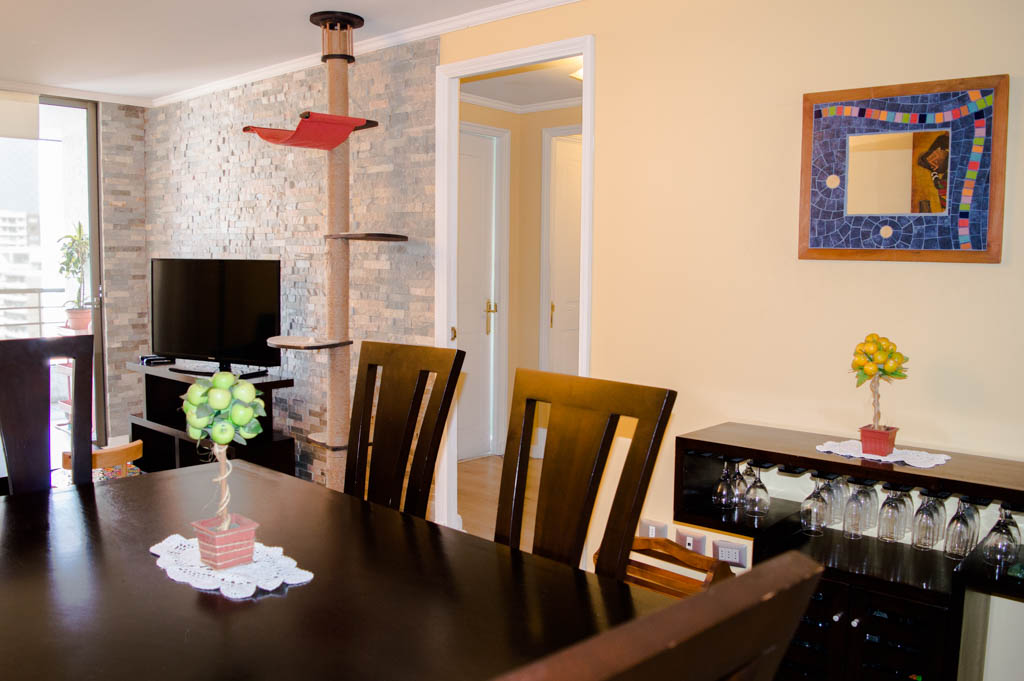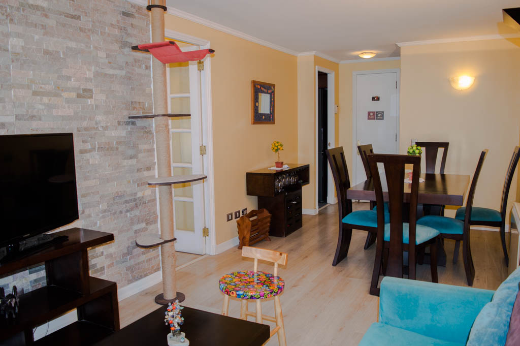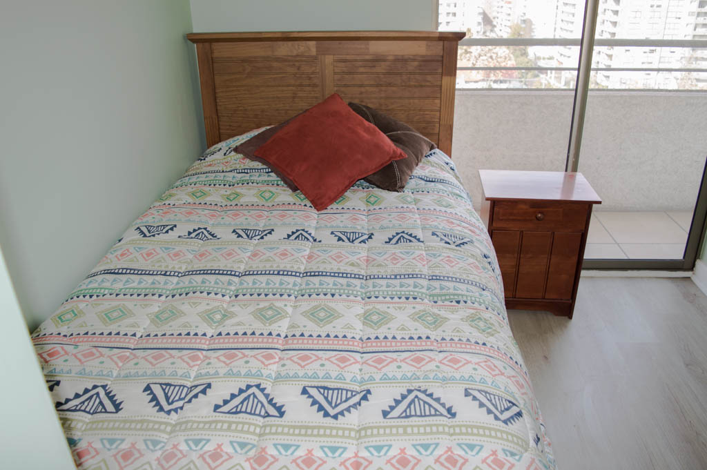 Departamento amoblado de 3 habitaciones ubicado a 3 minutos caminando de la parada de autobús y a 9 minutos caminando de la Estación de Metro Irarrázaval.El departamento tiene living, comedor, cocina (cerrada), 2 baños, terraza y 1 estacionamiento. La habitación 1 tiene cama matrimonial, 2 clósets, 2 mesas de noche, televisor y baño en suite; La habitación 2 tiene cama nido, clóset y escritorio; La habitación 3 tiene cama individual, clóset y 2 mesas de noche; El lugar mide 72m² + 11m² de terraza aproximadamente. Los gastos de servicios de gastos comunes, agua caliente, agua fría, electricidad e internet se pagan por adelantado junto a la renta mensual, con un límite de consumo de $ 275USD. Se debe pagar garantía (depósito) la que será devuelta al finalizar el período de arriendo; además, se debe pagar $ 55USD al momento de devolver el alojamiento para realizar la limpieza del lugar. Cerca del alojamiento se encuentra la Avenida Irarrázaval, una de las arterias principales de Santiago, caracterizada por sus diversos locales comerciales, supermercados, restaurantes, pubs y discotecas. Además posee variados medios de transporte público a distintos puntos de la ciudad.