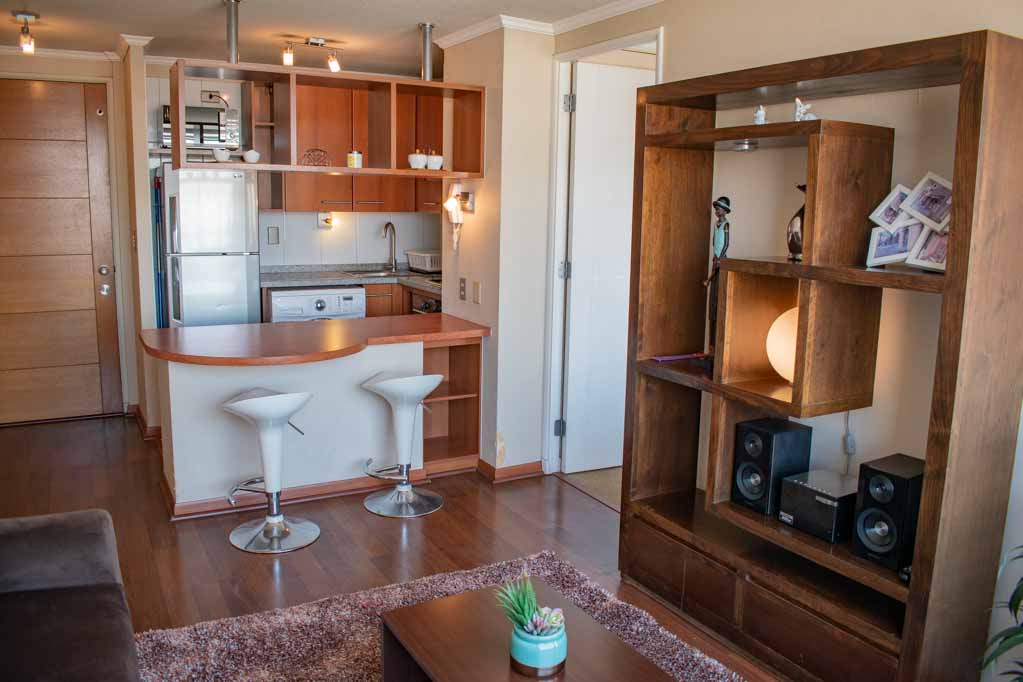 Departamento amoblado de 1 habitación ubicado a 6 minutos caminando de la parada de autobús y a 6 minutos caminando de la Estación de Metro Ñuble.El departamento tiene living, comedor, cocina (abierta), 1 baño, balcón y 1 estacionamiento (opcional por un valor de $ 65USD adicional). La habitación 1 tiene cama matrimonial, 2 clósets, 2 mesas de noche, televisor y baño en suite; El lugar mide 36m² + 4m² de terraza aproximadamente. Se debe considerar el pago de gastos de servicios de gastos comunes, agua caliente, agua fría, electricidad y gas que suman $ 103USD aproximadamente. El alojamiento tiene lavandería compartida cuyo valor es $ 2USD aproximadamente por carga de ropa (lavado o secado). Se debe pagar garantía (depósito) la que será devuelta al finalizar el período de arriendo; además, se debe pagar $ 49USD al momento de devolver el alojamiento para realizar la limpieza del lugar. Cerca del alojamiento se encuentra el Estadio Nacional, con área para practicar diversos deportes, también hay áreas verdes para pasear, la feria San Eugenio que ofrece variadas frutas y verduras. En Av. Vicuña Mackenna hay locales comerciales, como Sodimac, y medios de transporte público a distintos puntos de la ciudad. A pocos pasos está La Universidad de Talca (Campus Santiago), escuelas y supermercados.