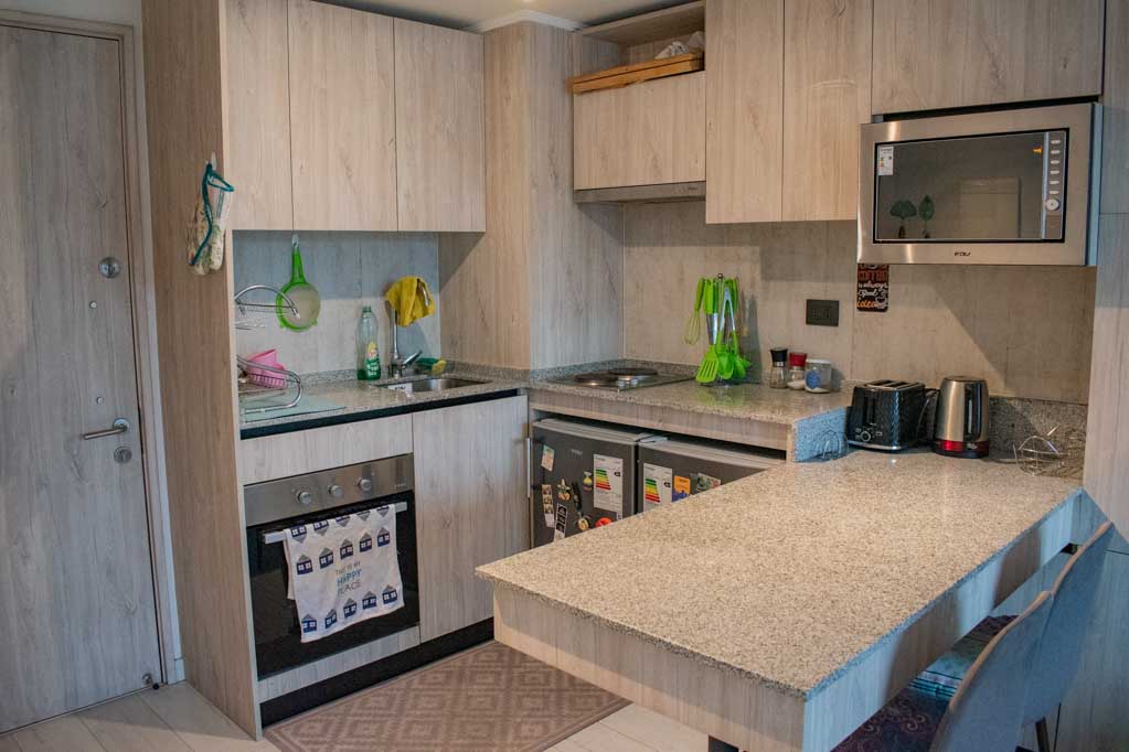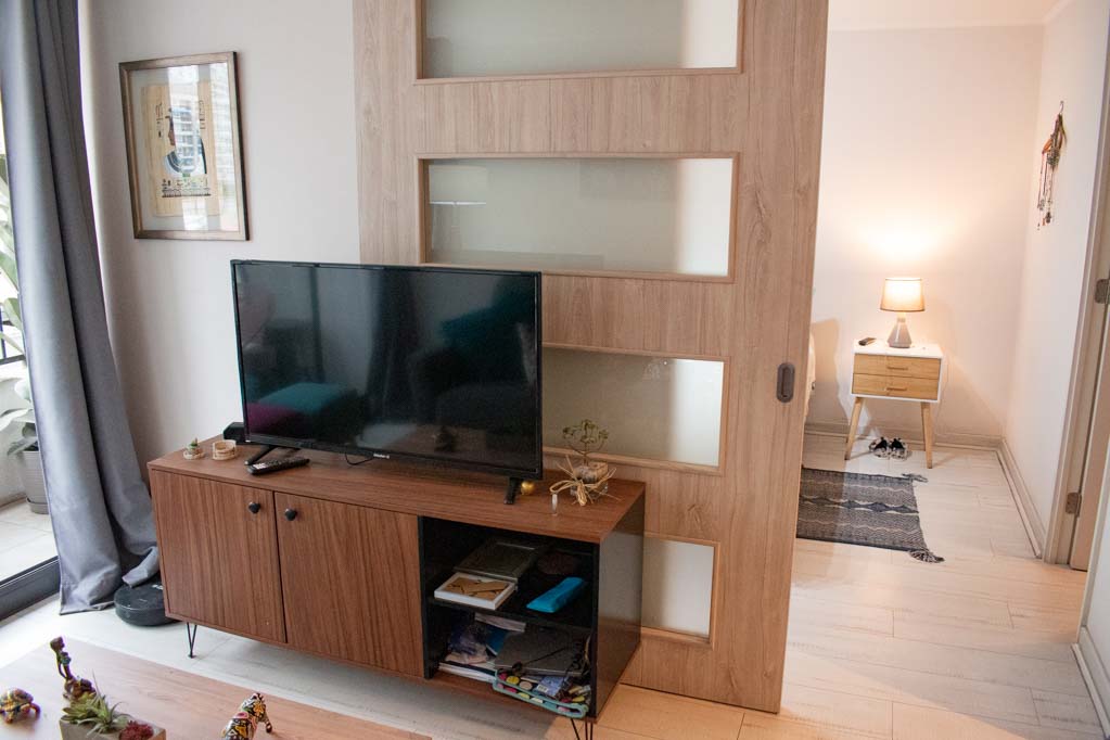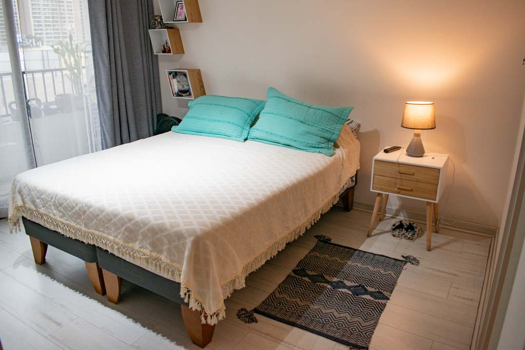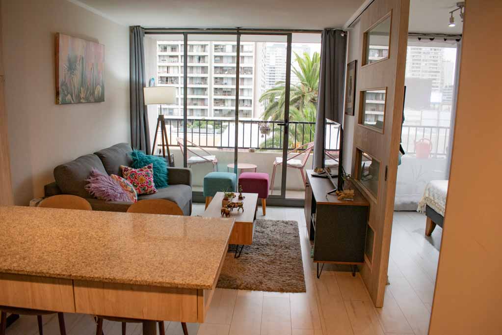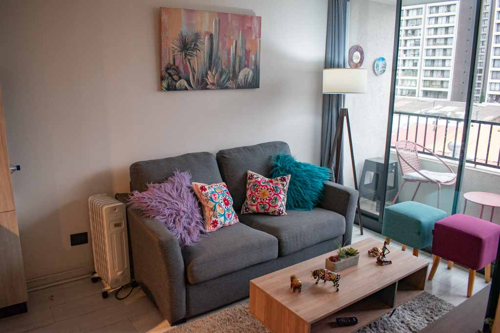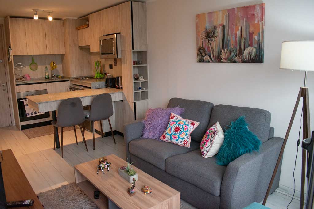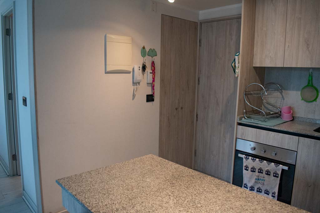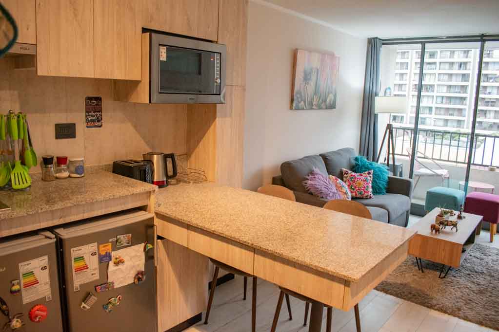 Departamento amoblado de 1 habitación ubicado a 2 minutos caminando de la parada de autobús y a 5 minutos caminando de la Estación de Metro Irarrázaval.El departamento tiene living, comedor, cocina (abierta), 1 baño, terraza y 1 estacionamiento (opcional por un valor de $ 22USD adicional). La habitación 1 tiene cama matrimonial, walk-in clóset, mesa de noche, televisor y baño en suite; El lugar mide 36m² + 4m² de terraza aproximadamente. Los gastos de servicios de gastos comunes, agua caliente, agua fría y electricidad se pagan por adelantado junto a la renta mensual, con un límite de consumo de $ 121USD. El alojamiento tiene lavandería compartida cuyo valor es $ 2USD aproximadamente por carga de ropa (lavado o secado). Se debe pagar garantía (depósito) la que será devuelta al finalizar el período de arriendo; además, se debe pagar $ 44USD al momento de devolver el alojamiento para realizar la limpieza del lugar. Cerca del alojamiento se encuentra los emblemáticos Liceo Arturo Alessandri Palma y el Liceo Carmela Carvajal de Prat; ubicados en el barrio Santa Isabel el cual ha crecido exponencialmente con los años debido al gran desarrollo inmobiliario lo que ha permitido la generación de áreas verdes y espacios deportivos. En el mismo sector se encuentra el barrio Italia donde se han instalado diversos artistas, diseñadores, maestros de la gastronomía, pequeños comercios, e incluso talleres mecánicos.