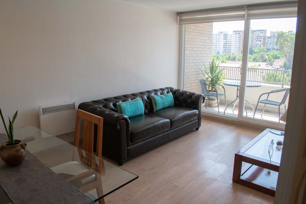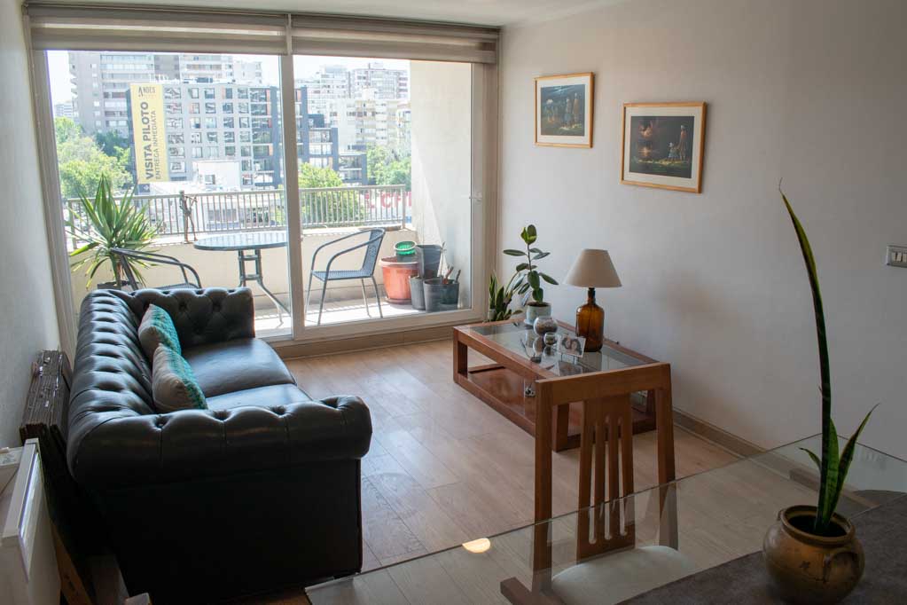 Departamento amoblado de 2 habitaciones ubicado a 4 minutos caminando de la parada de autobús y a 4 minutos caminando de la Estación de Metro Ñuñoa.El departamento tiene living, comedor, cocina (cerrada), 2 baños, terraza, balcón y 1 estacionamiento (opcional por un valor de $ 54USD adicional). La habitación 1 tiene cama matrimonial, walk-in clóset, 2 mesas de noche y baño en suite; La habitación 2 tiene clóset; El lugar mide 69m² + 8m² de terraza aproximadamente. Los gastos de servicios de gastos comunes, agua caliente, agua fría, electricidad e internet se pagan por adelantado junto a la renta mensual, con un límite de consumo de $ 282USD. Se debe pagar garantía (depósito) la que será devuelta al finalizar el período de arriendo; además, se debe pagar $ 54USD al momento de devolver el alojamiento para realizar la limpieza del lugar. Cerca del alojamiento se encuentra la Plaza Ñuñoa, Municipalidad de Ñuñoa, centros culturales tales como el Teatro de la Universidad Católica (Teatro Dante) y la tradicional pérgola de la Plaza Ñuñoa punto de encuentro de los residentes y turistas. El lugar se caracteriza por su identidad llena de vida y la gran variedad de bares y restoranes.