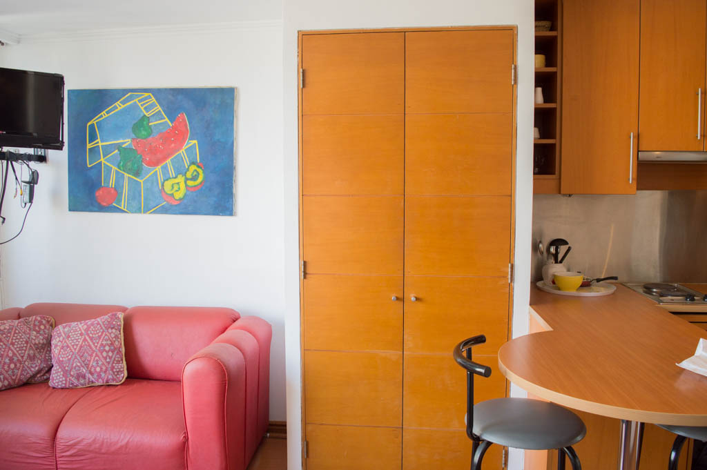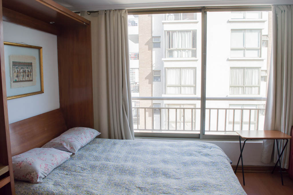 Departamento amoblado de un ambiente (studio) ubicado a 3 minutos caminando de la parada de autobús y a 5 minutos caminando de la Estación de Metro Pedro de Valdivia.El departamento tiene living, comedor, cocina (abierta) y 1 baño. La habitación 1 tiene cama matrimonial, walk-in clóset, 2 mesas de noche, silla y baño en suite; El lugar mide 28m² aproximadamente. Los gastos de servicios de gastos comunes, agua caliente, agua fría y electricidad se pagan por adelantado junto a la renta mensual, con un límite de consumo de $ 109USD. El alojamiento tiene lavandería compartida (lavado o secado). Se debe pagar garantía (depósito) la que será devuelta al finalizar el período de arriendo; además, se debe pagar $ 44USD al momento de devolver el alojamiento para realizar la limpieza del lugar. Cerca del alojamiento se encuentra la Avenida Providencia donde se encuentran diferentes locales comerciales, bancos, supermercados, restoranes, cafeterías, bares, y locomoción hacia distintos punto de la capital. A pasos podrás encontrar la iglesia de la divina providencia, monumento nacional y, el parque de las esculturas, con obras de diversos artistas y agradables áreas verdes.