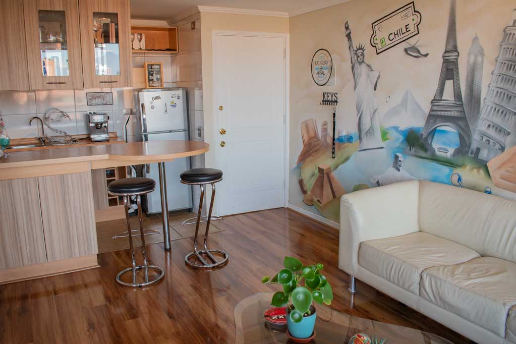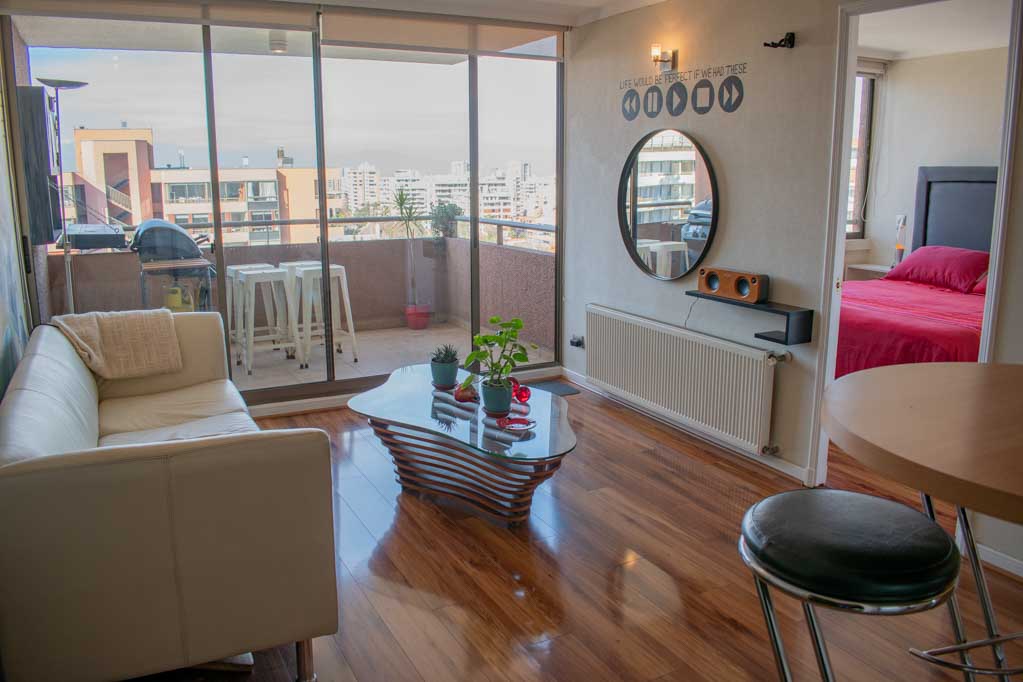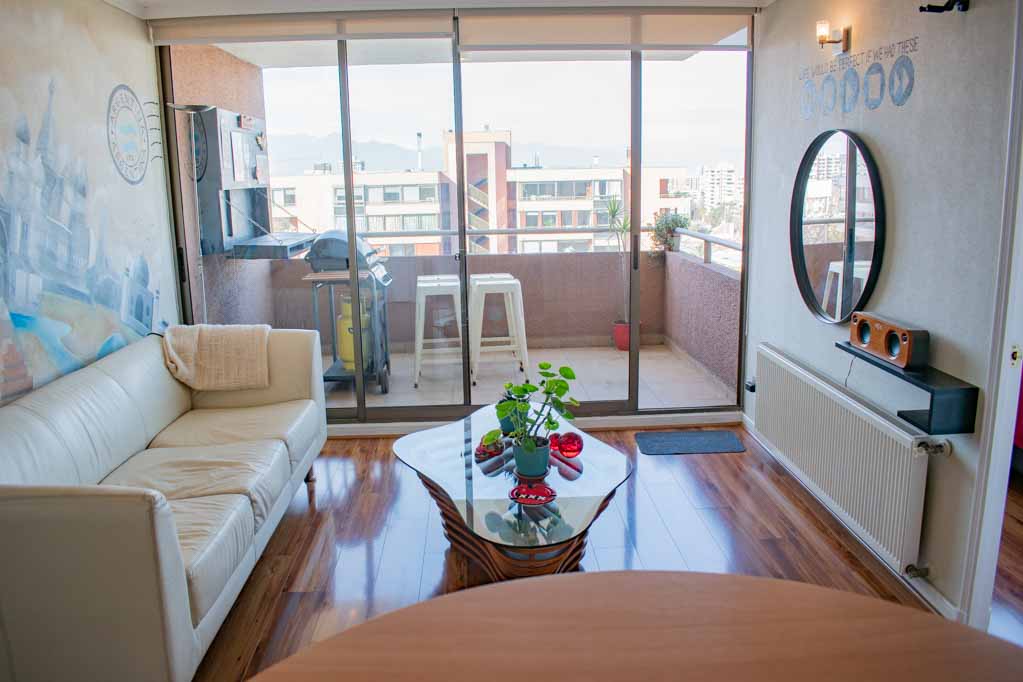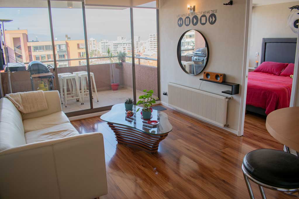 Departamento amoblado de 1 habitación ubicado a 3 minutos caminando de la parada de autobús y a 9 minutos caminando de la Estación de Metro Pedro de Valdivia.El departamento tiene living, cocina (abierta), 1 baño, terraza y 1 estacionamiento. La habitación 1 tiene cama matrimonial, walk-in clóset, mesa de noche, televisor y baño en suite; El lugar mide 38m² + 8m² de terraza aproximadamente Se debe considerar el pago de gastos de servicios de gastos comunes, agua caliente, agua fría, electricidad y gas que suman $ 142USD aproximadamente. El alojamiento tiene lavandería compartida cuyo valor es $ 2USD aproximadamente por carga de ropa (lavado o secado). Se debe pagar garantía (depósito) la que será devuelta al finalizar el período de arriendo; además, se debe pagar $ 27USD al momento de devolver el alojamiento para realizar la limpieza del lugar. Cerca del alojamiento se encuentra la Avenida Providencia donde se encuentran diferentes locales comerciales, bancos, supermercados, restoranes, cafeterías, bares, y locomoción hacia distintos punto de la capital. A pasos podrás encontrar la iglesia de la divina providencia, monumento nacional y, el parque de las esculturas, con obras de diversos artistas y agradables áreas verdes.