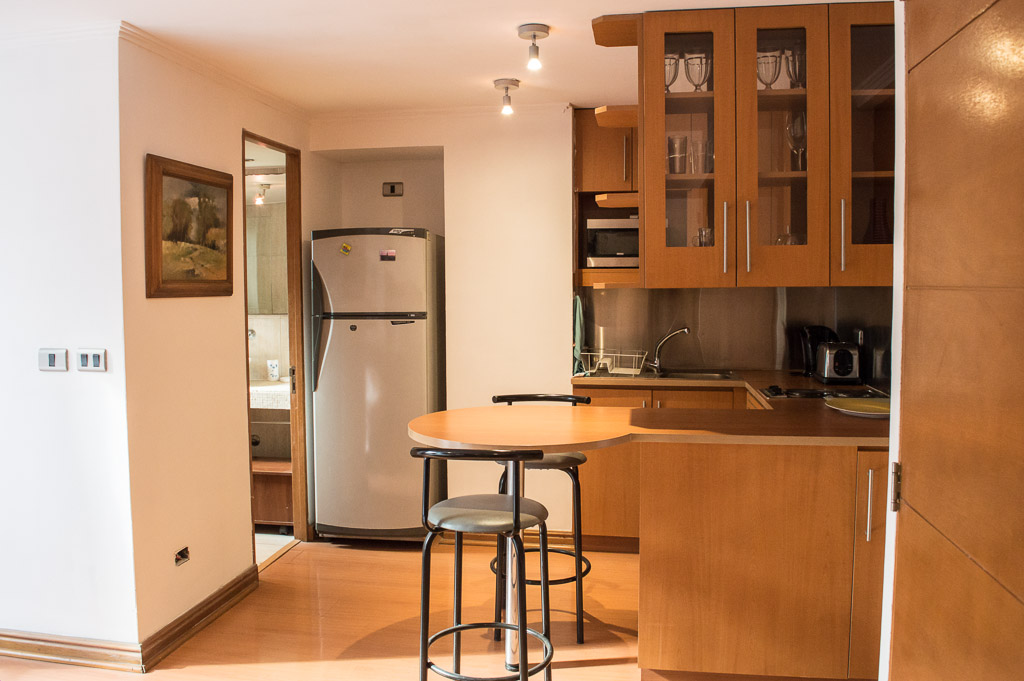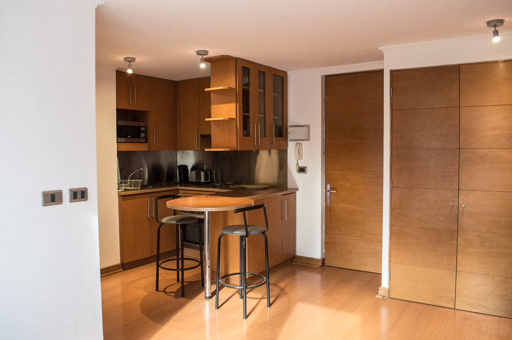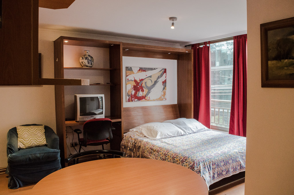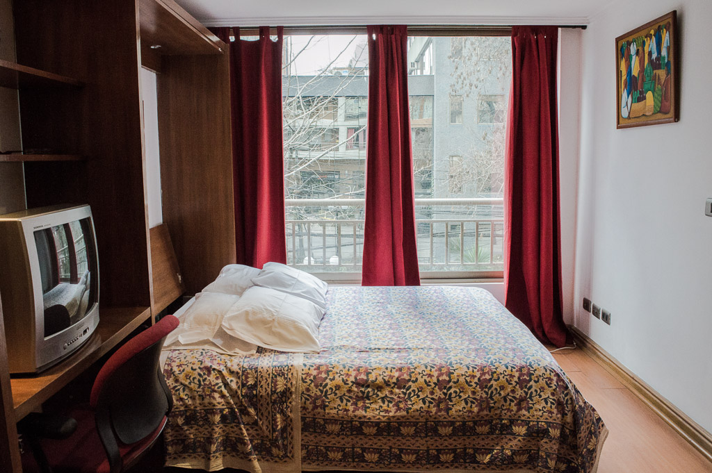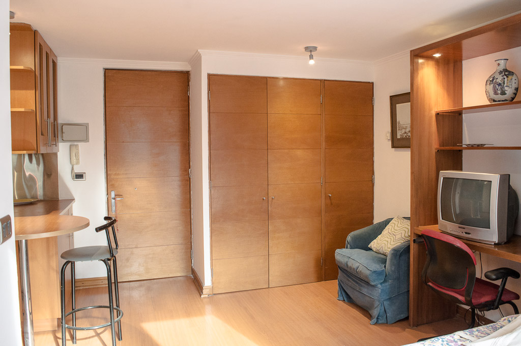 Departamento amoblado de un ambiente (studio) ubicado a 5 minutos caminando de la parada de autobús y a 5 minutos caminando de la Estación de Metro Manuel Montt.El departamento tiene comedor, cocina (cerrada), 1 baño y balcón. La habitación 1 tiene cama matrimonial, clóset, sofá, televisor, escritorio y silla; El lugar mide 28m² aproximadamente. Los gastos de servicios de gastos comunes, agua caliente, agua fría y electricidad se pagan por adelantado junto a la renta mensual, con un límite de consumo de $ 110USD. El alojamiento tiene lavandería compartida cuyo valor es $ 2USD aproximadamente por carga de ropa (lavado o secado). Se debe pagar garantía (depósito) la que será devuelta al finalizar el período de arriendo; además, se debe pagar $ 44USD al momento de devolver el alojamiento para realizar la limpieza del lugar. Cerca del alojamiento se encuentra la Avenida Providencia en la que es posible encontrar locales comerciales, bancos, restaurantes, cafeterías y transporte público. También está la Av. Manuel Montt que se caracteriza por la presencia del sector universitario, comercial y bohemio de la zona; allí podrás encontrar variados bares y discotecas.
