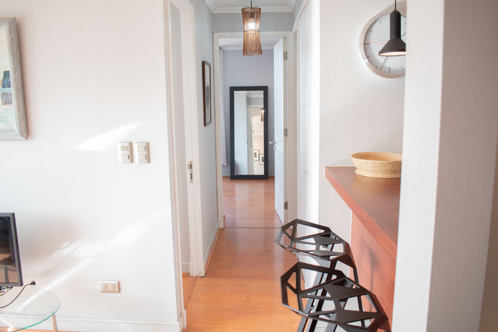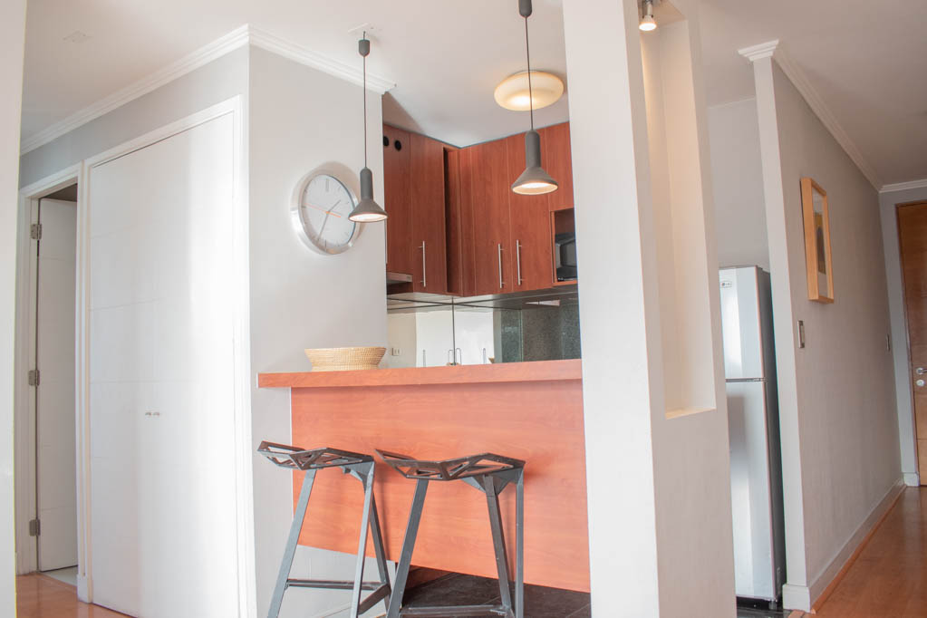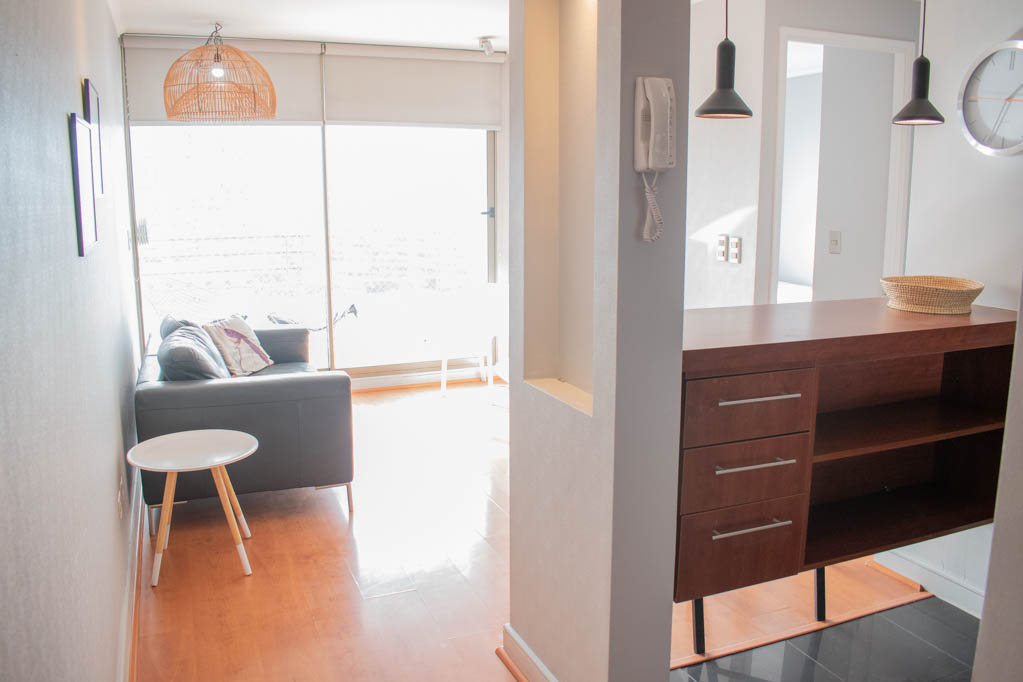 Departamento amoblado de 2 habitaciones ubicado a 2 minutos caminando de la parada de autobús y a 2 minutos caminando de la Estación de Metro Manuel Montt.El departamento tiene living, comedor, cocina (abierta), 2 baños y terraza. La habitación 1 tiene cama matrimonial, clóset, 2 mesas de noche y baño en suite; La habitación 2 tiene cama individual, clóset, escritorio y silla; El lugar mide 58m² + 4m² de terraza aproximadamente. Se debe considerar el pago de gastos de servicios de gastos comunes, agua caliente, agua fría, electricidad e internet que suman $ 246USD aproximadamente. El alojamiento tiene lavandería compartida cuyo valor es $ 1USD aproximadamente por carga de ropa (lavado o secado). Se debe pagar garantía (depósito) la que será devuelta al finalizar el período de arriendo; además, se debe pagar $ 47USD al momento de devolver el alojamiento para realizar la limpieza del lugar. Cerca del alojamiento se encuentra la Avenida Providencia en la que es posible encontrar locales comerciales, bancos, restaurantes, cafeterías y transporte público. También está la Av. Manuel Montt que se caracteriza por la presencia del sector universitario, comercial y bohemio de la zona; allí podrás encontrar variados bares y discotecas.