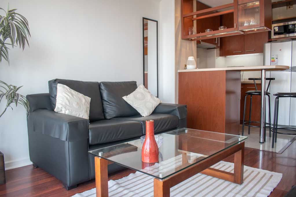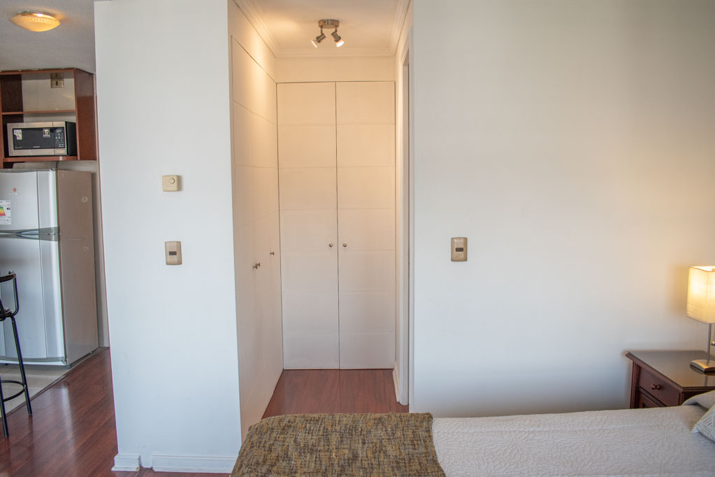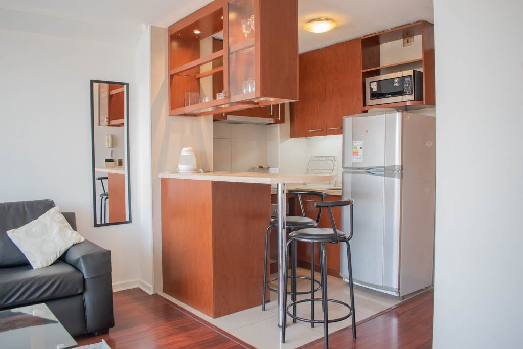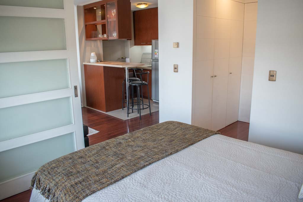 Departamento amoblado de 1 habitación ubicado a 3 minutos caminando de la parada de autobús y a 3 minutos caminando de la Estación de Metro Manuel Montt.El departamento tiene living, comedor, cocina (abierta), 1 baño y terraza. La habitación 1 tiene cama matrimonial, clóset, 2 mesas de noche, televisor y baño en suite; El lugar mide 33m² + 2m² de terraza aproximadamente. Se debe considerar el pago de gastos de servicios de gastos comunes, agua caliente, agua fría, electricidad, gas e internet que suman $ 156USD aproximadamente. El alojamiento tiene lavandería compartida cuyo valor es $ 2USD aproximadamente por carga de ropa (lavado o secado). Se debe pagar garantía (depósito) la que será devuelta al finalizar el período de arriendo; además, se debe pagar $ 32USD al momento de devolver el alojamiento para realizar la limpieza del lugar. Cerca del alojamiento se encuentra la Avenida Providencia en la que es posible encontrar locales comerciales, bancos, restaurantes, cafeterías y transporte público. También está la Av. Manuel Montt que se caracteriza por la presencia del sector universitario, comercial y bohemio de la zona; allí podrás encontrar variados bares y discotecas.
