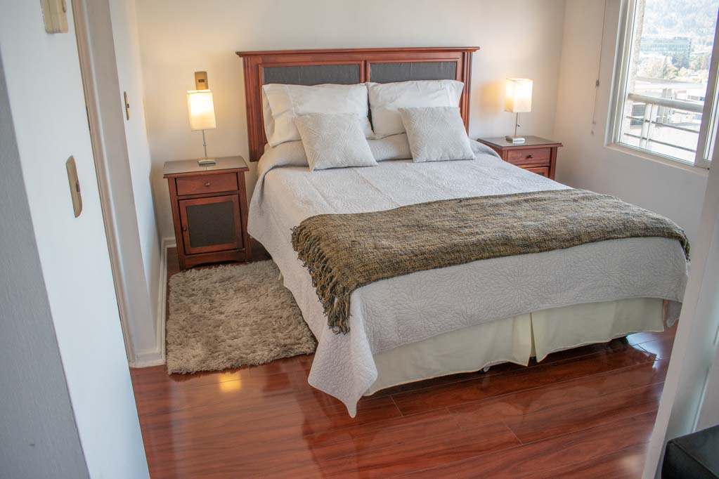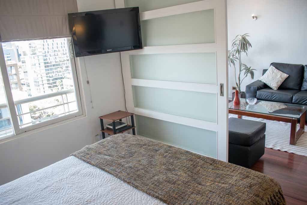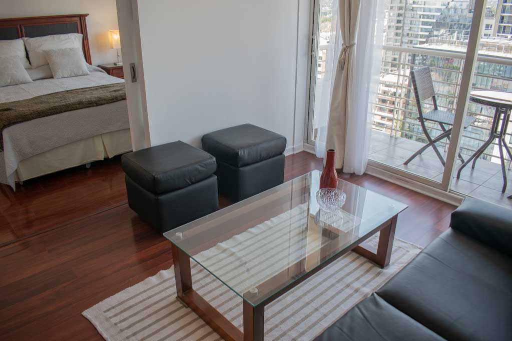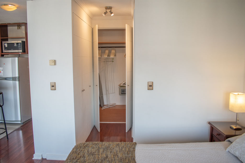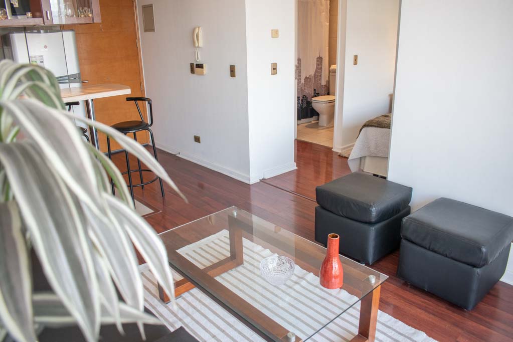 Departamento amoblado de 1 habitación ubicado a 3 minutos caminando de la parada de autobús y a 3 minutos caminando de la Estación de Metro Manuel Montt.El departamento tiene living, comedor, cocina (abierta), 1 baño y terraza. La habitación 1 tiene cama matrimonial, clóset, 2 mesas de noche, televisor y baño en suite; El lugar mide 33m² + 2m² de terraza aproximadamente. Se debe considerar el pago de gastos de servicios de gastos comunes, agua caliente, agua fría, electricidad, gas e internet que suman $ 156USD aproximadamente. El alojamiento tiene lavandería compartida cuyo valor es $ 2USD aproximadamente por carga de ropa (lavado o secado). Se debe pagar garantía (depósito) la que será devuelta al finalizar el período de arriendo; además, se debe pagar $ 32USD al momento de devolver el alojamiento para realizar la limpieza del lugar. Cerca del alojamiento se encuentra la Avenida Providencia en la que es posible encontrar locales comerciales, bancos, restaurantes, cafeterías y transporte público. También está la Av. Manuel Montt que se caracteriza por la presencia del sector universitario, comercial y bohemio de la zona; allí podrás encontrar variados bares y discotecas.