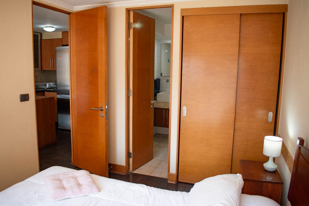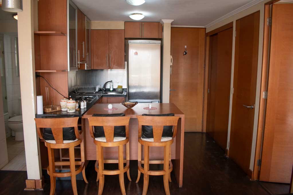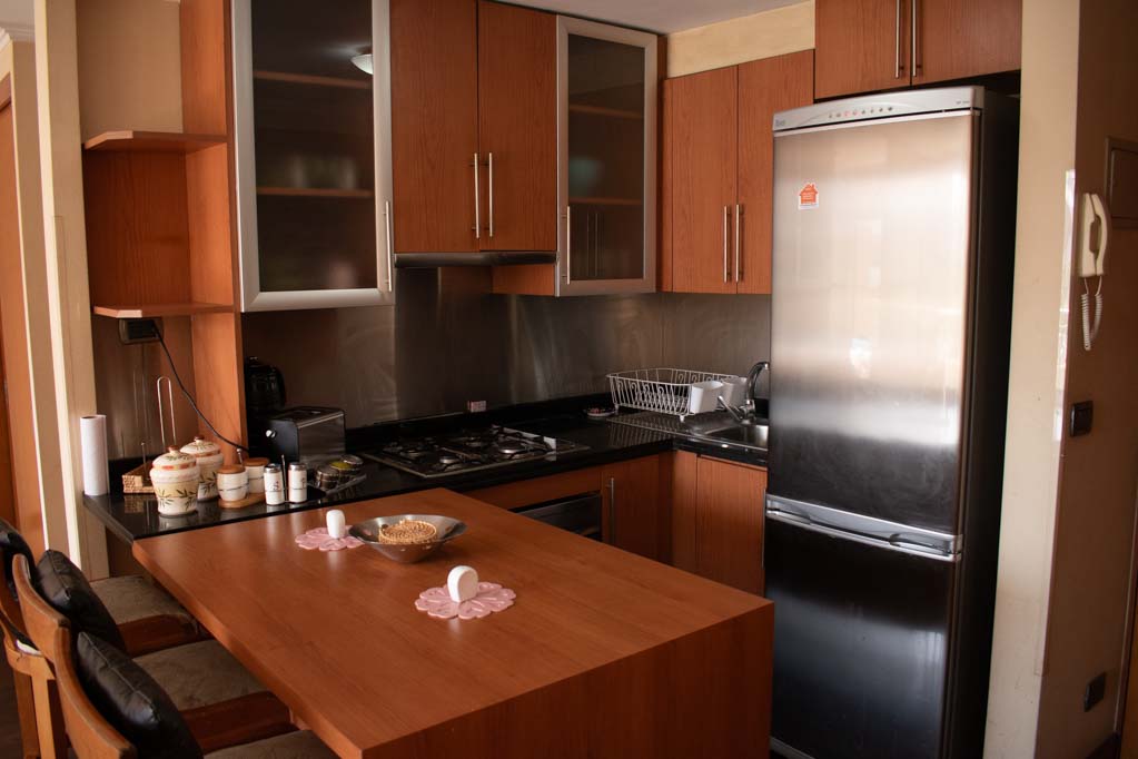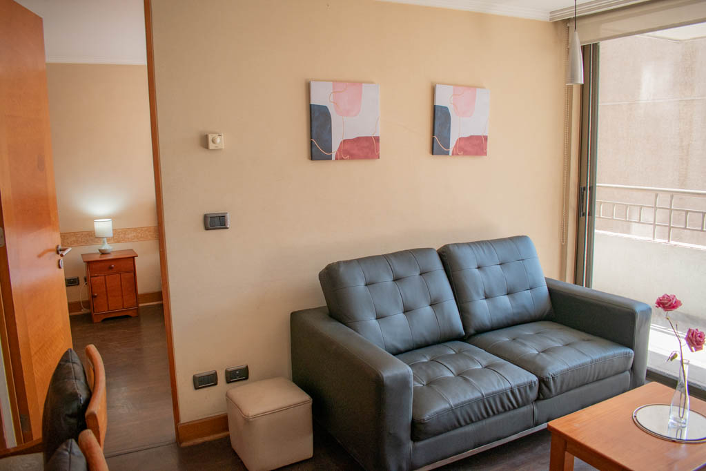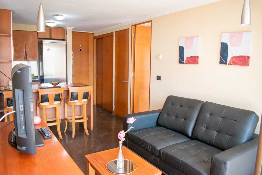Departamento amoblado de 2 habitaciones ubicado a 5 minutos caminando de la parada de autobús y a 7 minutos caminando de la Estación de Metro Pedro de Valdivia.El departamento tiene living, comedor, cocina (abierta), 2 baños y terraza. La habitación 1 tiene cama matrimonial, clóset, 2 mesas de noche y baño en suite; La habitación 2 tiene cama individual, clóset y baño en suite; El lugar mide 50m² aproximadamente. Los gastos de servicios de gastos comunes, agua caliente, agua fría, electricidad, gas e internet se pagan por adelantado junto a la renta mensual, con un límite de consumo de $ 249USD. El alojamiento tiene lavandería compartida cuyo valor es $ 2USD aproximadamente por carga de ropa (lavado o secado). Se debe pagar garantía (depósito) la que será devuelta al finalizar el período de arriendo; además, se debe pagar $ 81USD al momento de devolver el alojamiento para realizar la limpieza del lugar. Cerca del alojamiento se encuentra la Avenida Providencia donde se encuentran diferentes locales comerciales, bancos, supermercados, restoranes, cafeterías, bares, y locomoción hacia distintos punto de la capital. A pasos podrás encontrar la iglesia de la divina providencia, monumento nacional y, el parque de las esculturas, con obras de diversos artistas y agradables áreas verdes.