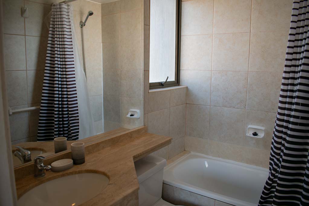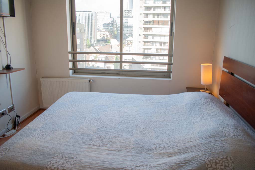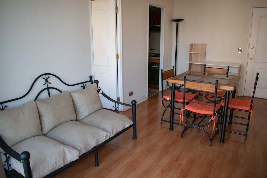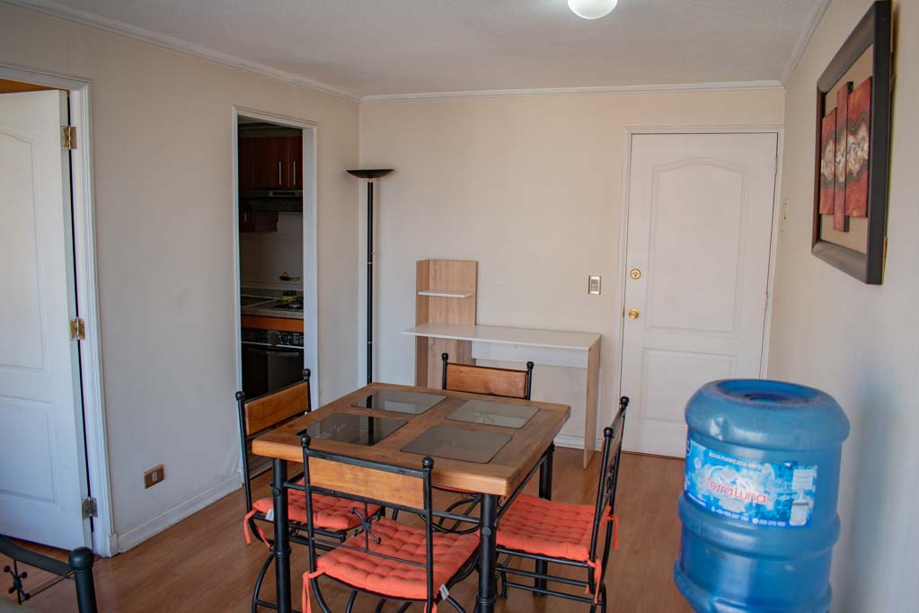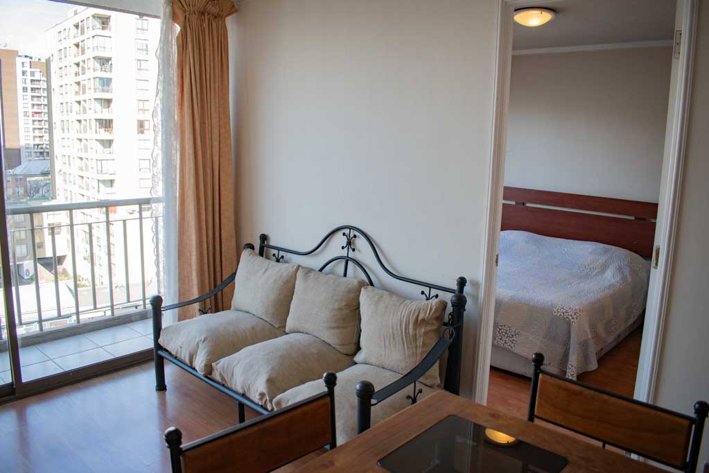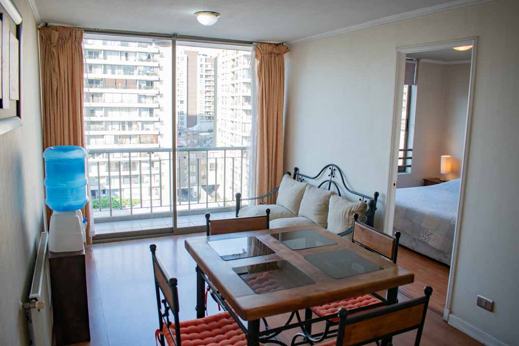 Departamento amoblado de 1 habitación ubicado a 2 minutos caminando de la parada de autobús y a 2 minutos caminando de la Estación de Metro Manuel Montt.El departamento tiene living, comedor, cocina (abierta), 1 baño y balcón. La habitación 1 tiene cama matrimonial, clóset, 2 mesas de noche, televisor y baño en suite; El lugar mide 39m² + 1m² de terraza aproximadamente. Los gastos de servicios de gastos comunes, agua caliente, agua fría, electricidad, gas e internet se pagan por adelantado junto a la renta mensual, con un límite de consumo de $ 151USD. El alojamiento tiene lavandería compartida cuyo valor es $ 2USD aproximadamente por carga de ropa (lavado o secado). Se debe pagar garantía (depósito) la que será devuelta al finalizar el período de arriendo; además, se debe pagar $ 35USD al momento de devolver el alojamiento para realizar la limpieza del lugar. Cerca del alojamiento se encuentra la Avenida Providencia en la que es posible encontrar locales comerciales, bancos, restaurantes, cafeterías y transporte público. También está la Av. Manuel Montt que se caracteriza por la presencia del sector universitario, comercial y bohemio de la zona; allí podrás encontrar variados bares y discotecas.
