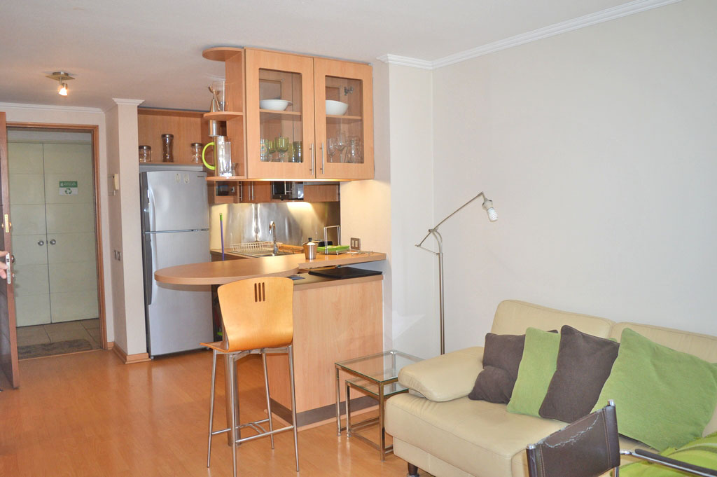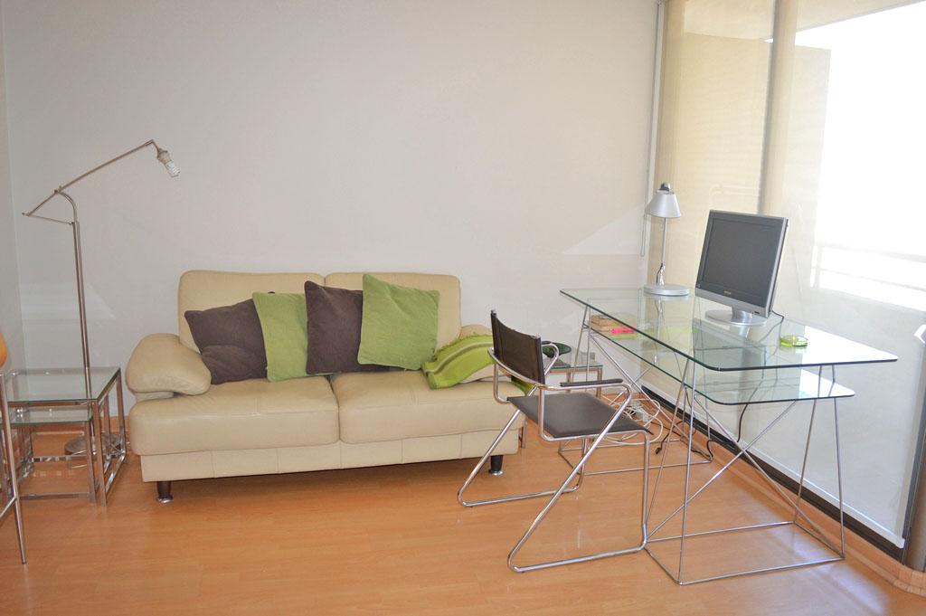 Departamento amoblado de un ambiente (studio) ubicado a 2 minutos caminando de la parada de autobús y a 5 minutos caminando de la Estación de Metro Salvador.El departamento tiene living, cocina (abierta), 1 baño y balcón. La habitación 1 tiene cama matrimonial, clóset, escritorio y silla; El lugar mide 29m² + 3m² de terraza aproximadamente. Se debe considerar el pago de gastos de servicios de gastos comunes, agua caliente, agua fría y electricidad que suman $ 83USD aproximadamente. El alojamiento tiene lavandería compartida (lavado o secado). Se debe pagar garantía (depósito) la que será devuelta al finalizar el período de arriendo; además, se debe pagar $ 33USD al momento de devolver el alojamiento para realizar la limpieza del lugar. Cerca del alojamiento se encuentra la Avenida Providencia donde hay locales comerciales, restaurantes, cafeterías, bancos y medios de transporte público. Este barrio mezcla lo comercial y lo residencial; en el sector se puede visitar la Plaza de la Aviación, espacio de áreas verdes con una gran fuente de agua que se ilumina de colores por las noches.