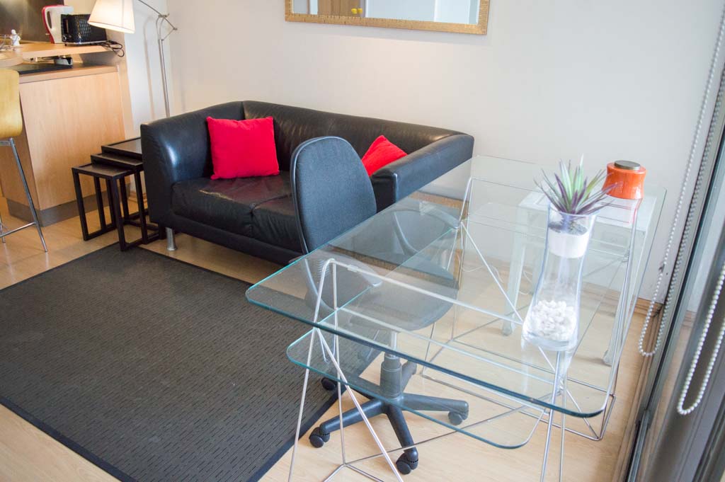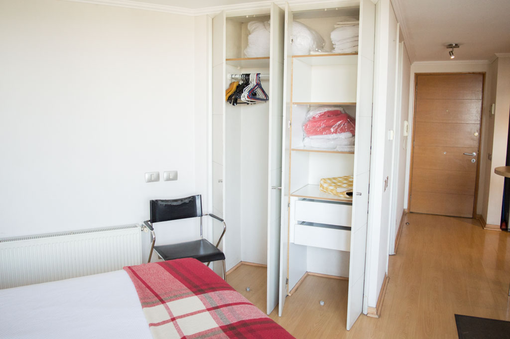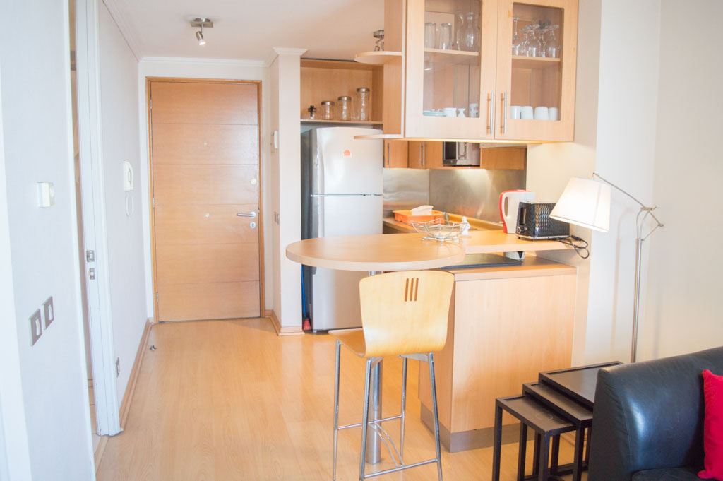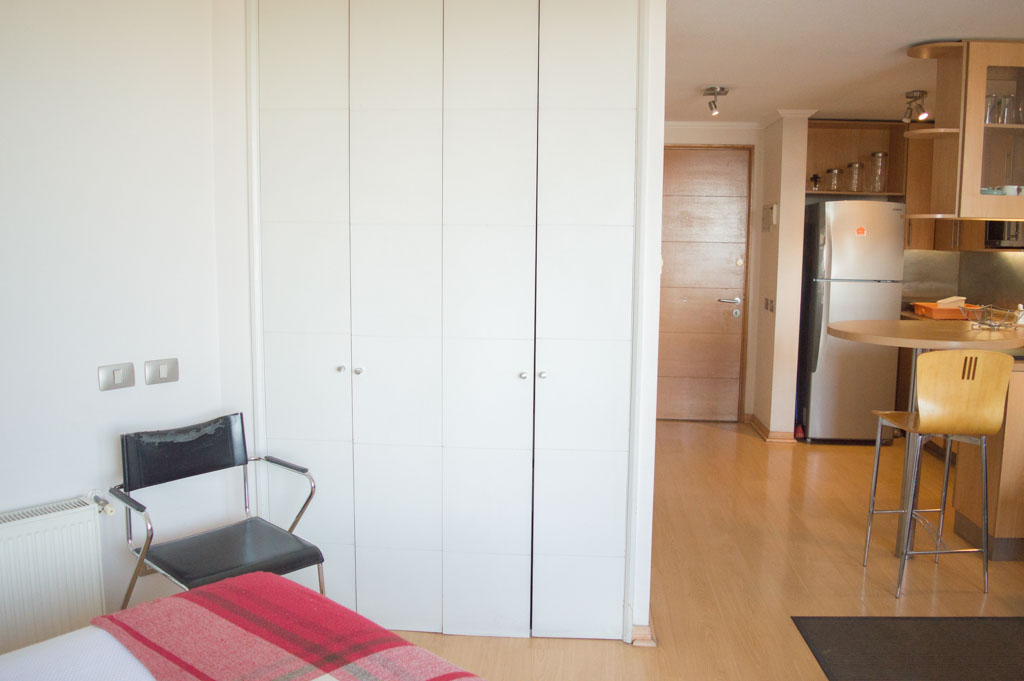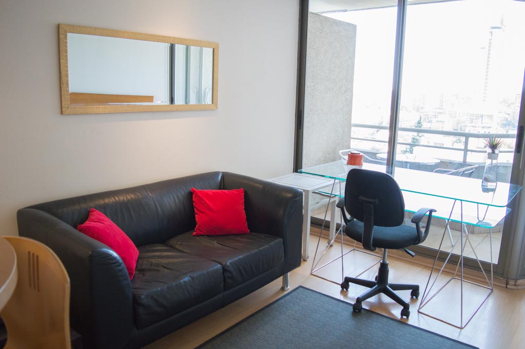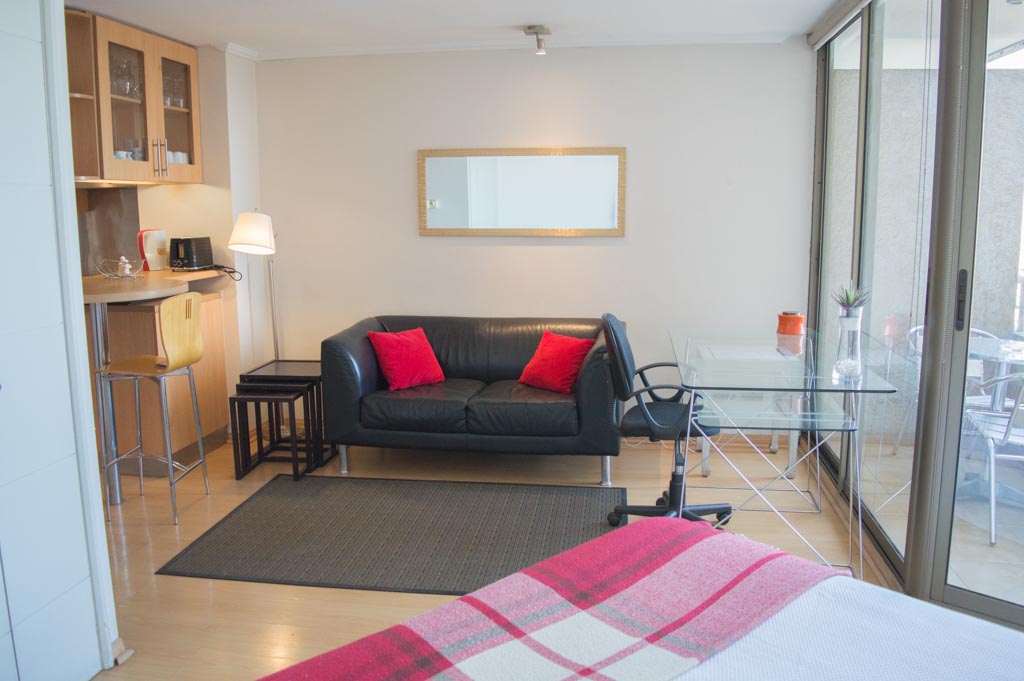 Departamento amoblado de un ambiente (studio) ubicado a 1 minuto caminando de la parada de autobús y a 3 minutos caminando de la Estación de Metro Salvador.El departamento tiene living, comedor, cocina (abierta), 1 baño y balcón. La habitación 1 tiene cama matrimonial, mesa de noche, escritorio y silla; El lugar mide 29m² + 3m² de terraza aproximadamente. Los gastos de servicios de internet se pagan por adelantado junto a la renta mensual, con un límite de consumo de $ 16USD. Además, se debe considerar el pago de gastos de servicios de gastos comunes, agua caliente, agua fría y electricidad que suman $ 99USD aproximadamente. El alojamiento tiene lavandería compartida (lavado o secado). Se debe pagar garantía (depósito) la que será devuelta al finalizar el período de arriendo; además, se debe pagar $ 38USD al momento de devolver el alojamiento para realizar la limpieza del lugar. Cerca del alojamiento se encuentra la Avenida Providencia donde hay locales comerciales, restaurantes, cafeterías, bancos y medios de transporte público. Este barrio mezcla lo comercial y lo residencial; en el sector se puede visitar la Plaza de la Aviación, espacio de áreas verdes con una gran fuente de agua que se ilumina de colores por las noches.